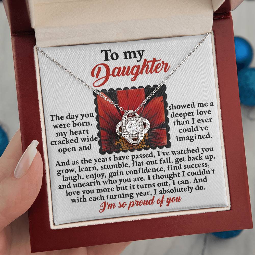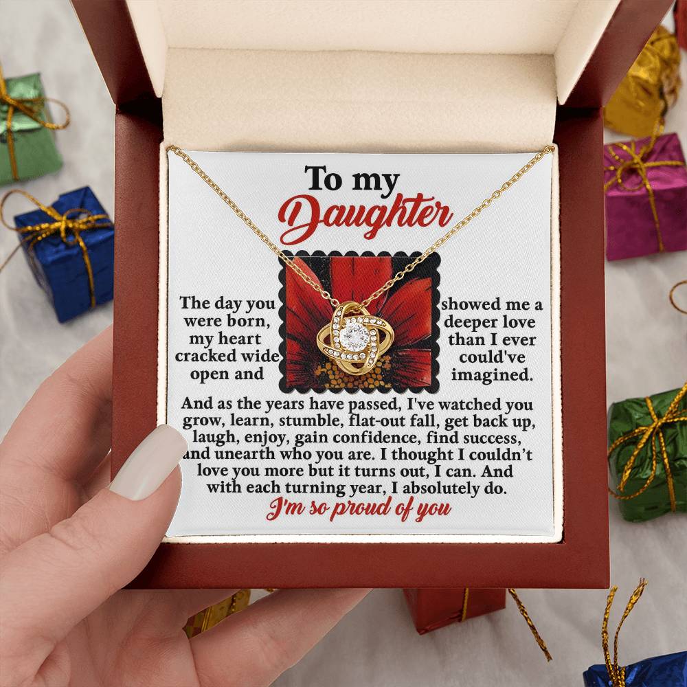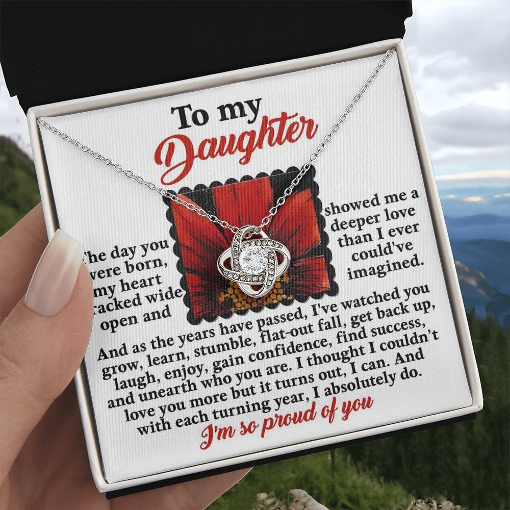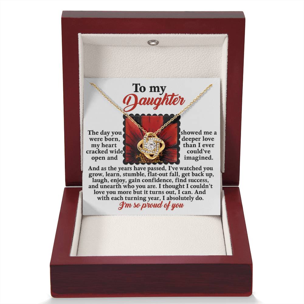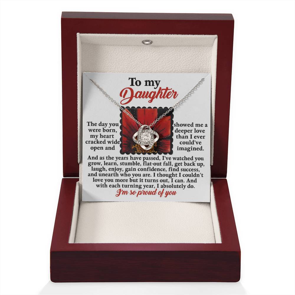 Your daughter will be overwhelmed with joy, her eyes welling up with tears when she receives this Love Knot Necklace and your heartfelt message letting her know how much she means and how much you love her.