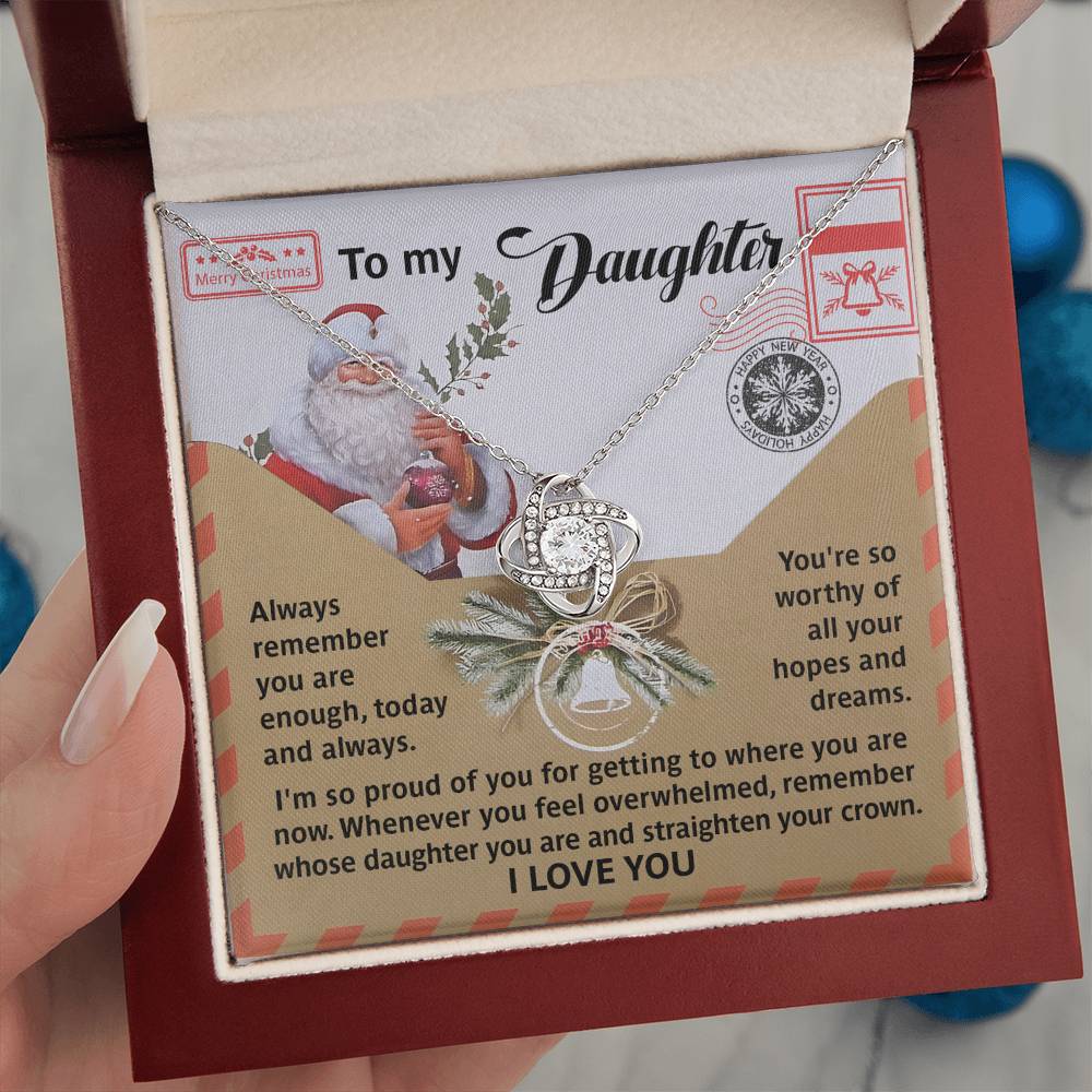 Your Daughter will be overwhelmed with joy, her eyes welling up with tears when she receives this Love Knot Necklace and your heartfelt message letting her know how much she means and how much you love her.