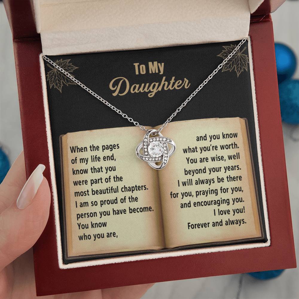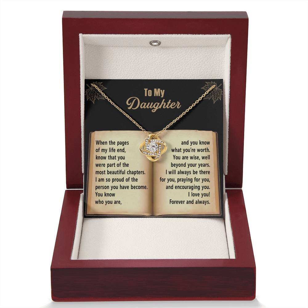 Your daughter will be overwhelmed with joy, her eyes welling up with tears when she receives this Love Knot Necklace and your heartfelt message letting her know how much she means and how much you love her.