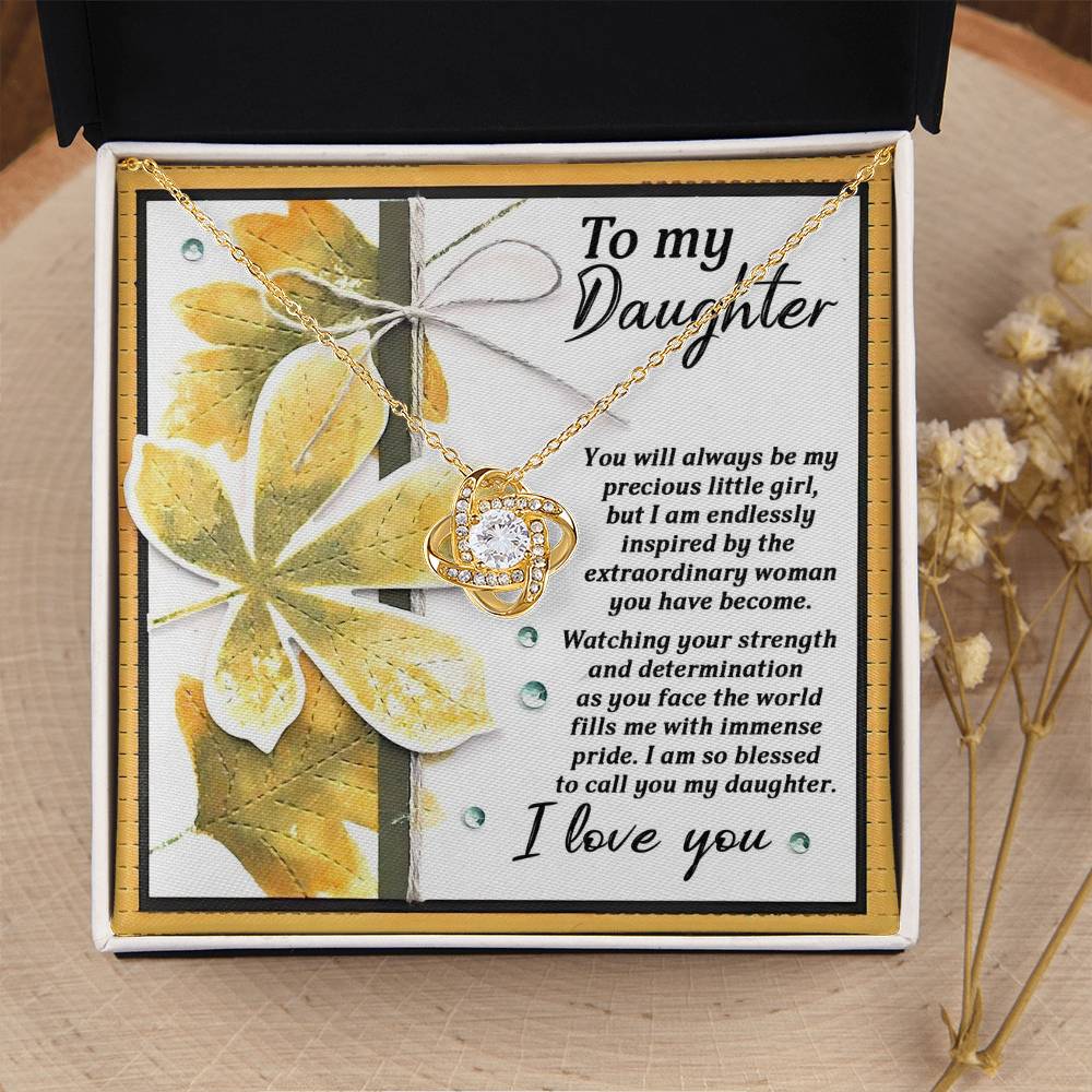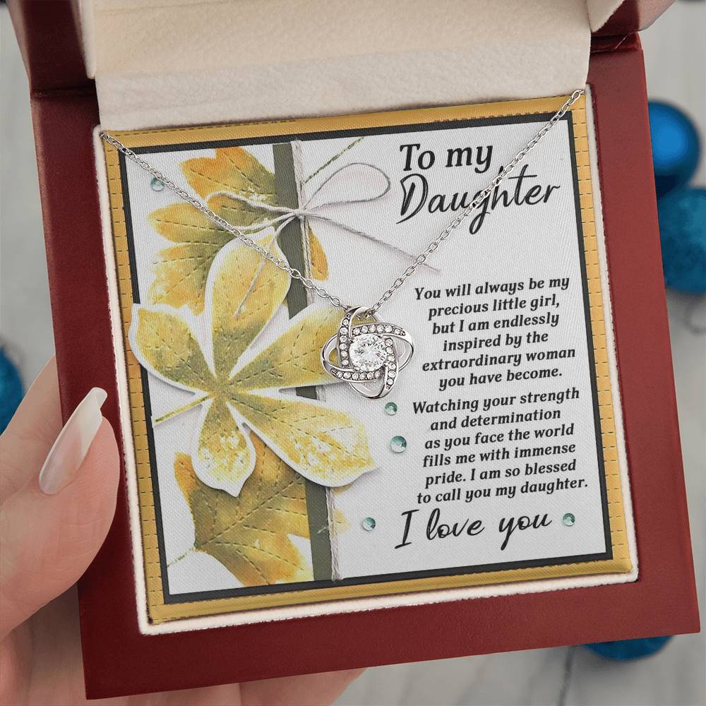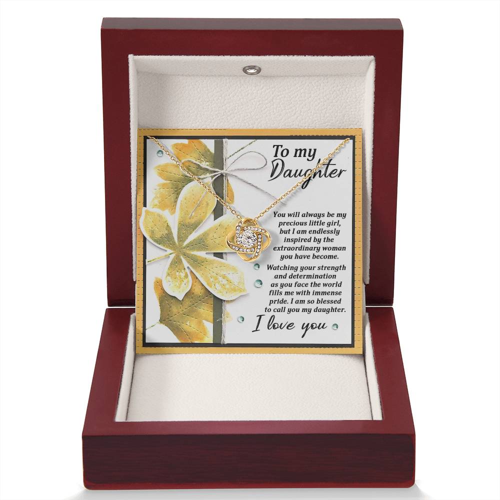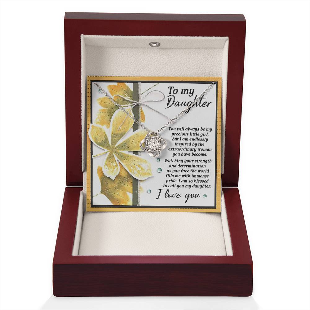 Your daughter will be overwhelmed with joy, her eyes welling up with tears when she receives this Love Knot Necklace and your heartfelt message letting her know how much she means and how much you love her.