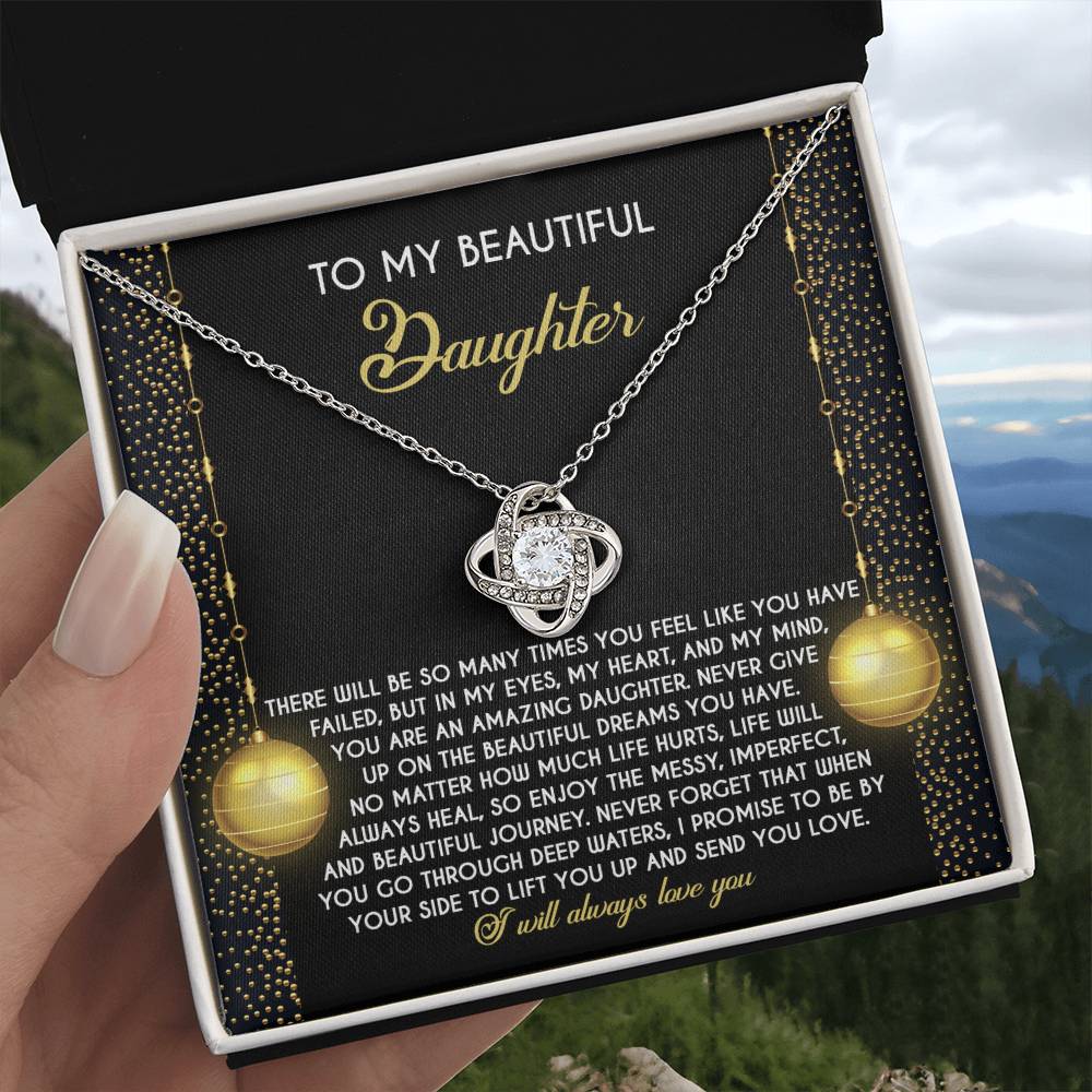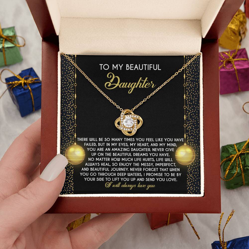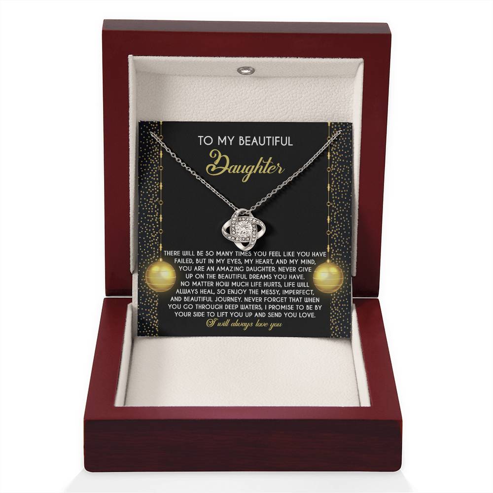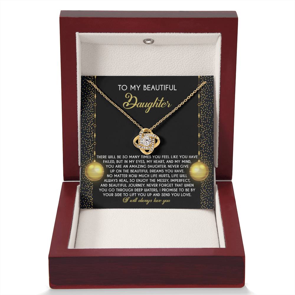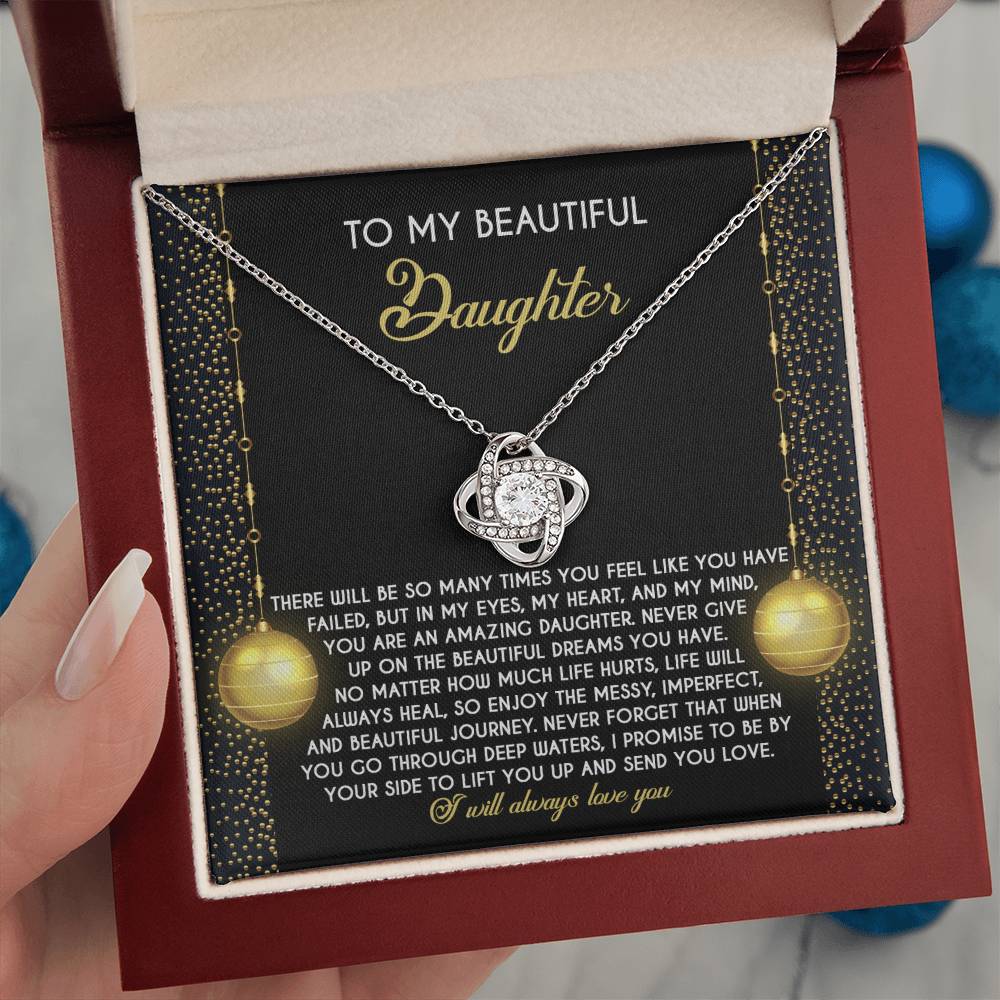 Your Daughter will be overwhelmed with joy, her eyes welling up with tears when she receives this Love Knot Necklace and your heartfelt message letting her know how much she means and how much you love her.