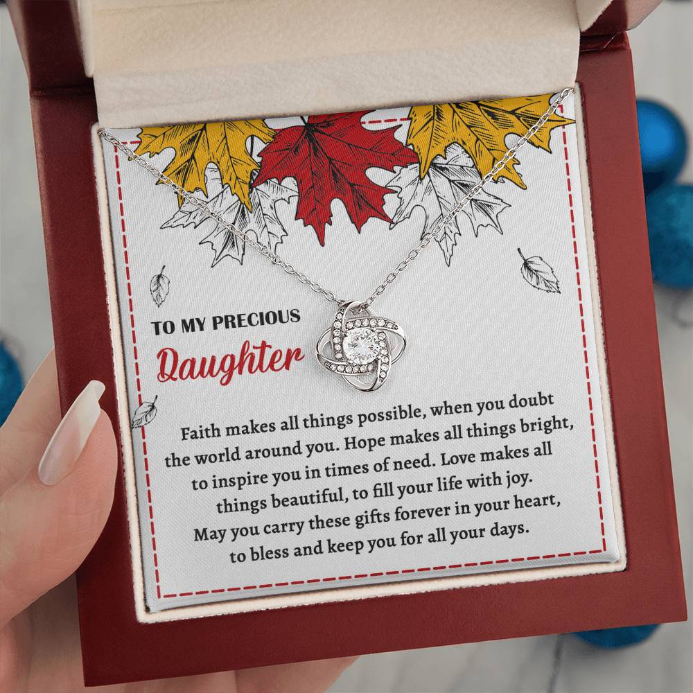 Your daughter will be overwhelmed with joy, her eyes welling up with tears when she receives this Love Knot Necklace and your heartfelt message letting her know how much she means and how much you love her.