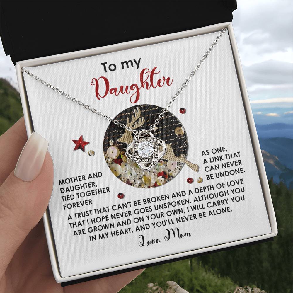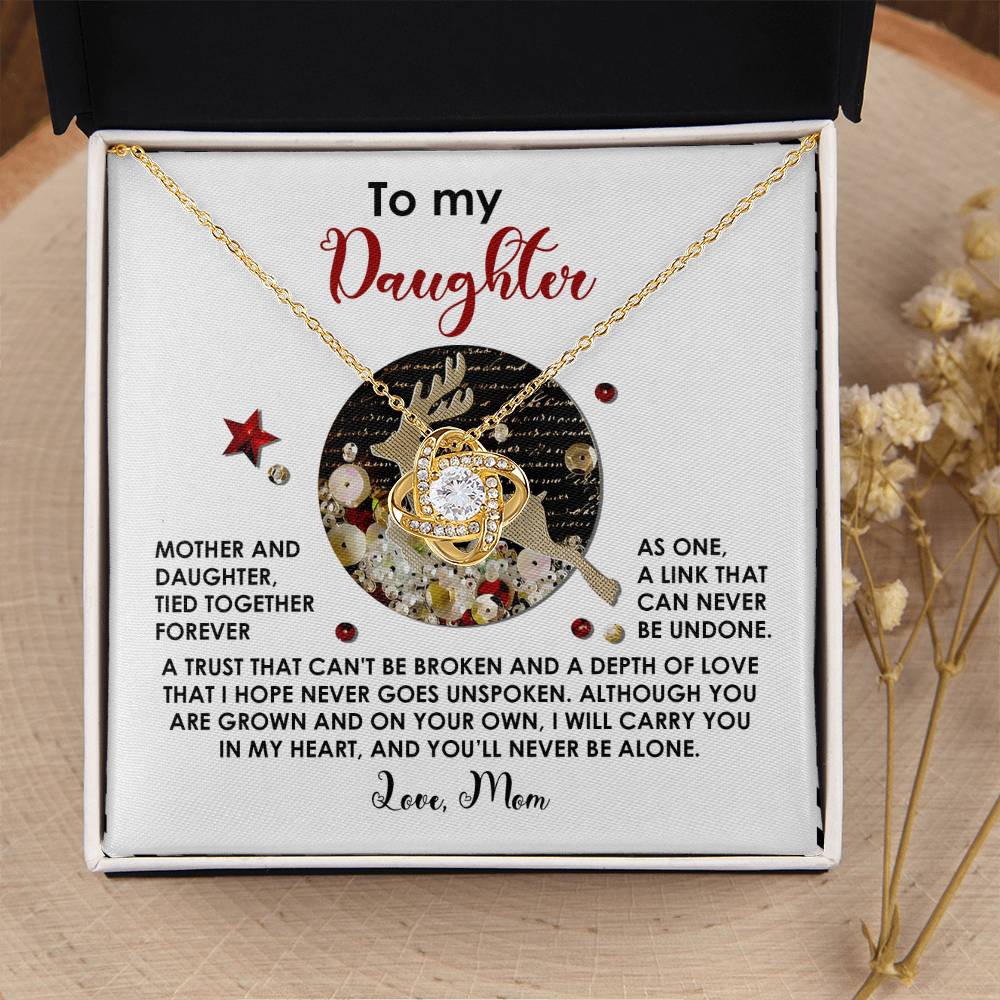 Your Daughter will be overwhelmed with joy, her eyes welling up with tears when she receives this Love Knot Necklace and your heartfelt message letting her know how much she means and how much you love her.