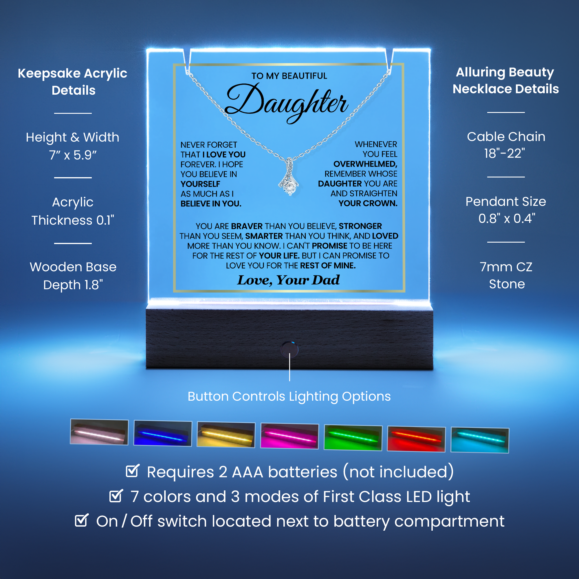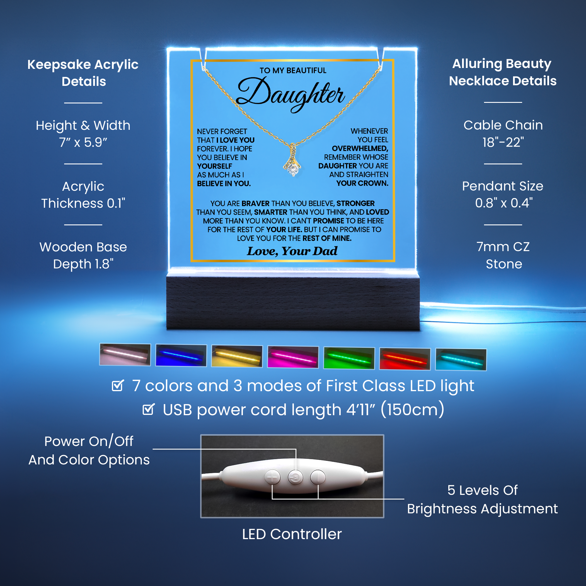 Daughter Gift from Dad - You Are Braver Than You Believe - Elegant Necklace with Acrylic Heartfelt Message From Dad