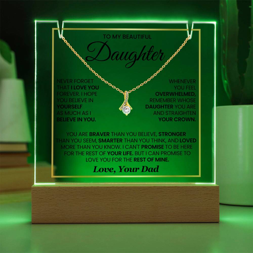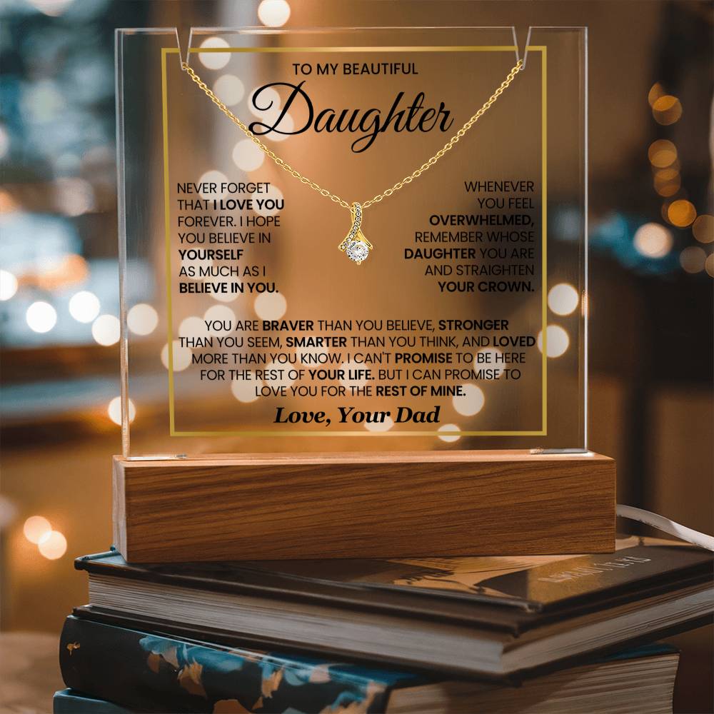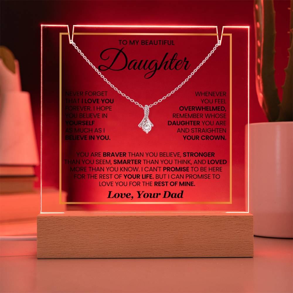 Celebrate your love and appreciation for your daughter with our elegant Keepsake Acrylic Bundle, featuring a stunning Square Acrylic and the beautiful Alluring Beauty Necklace.