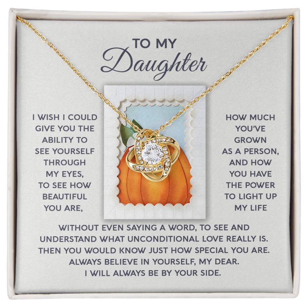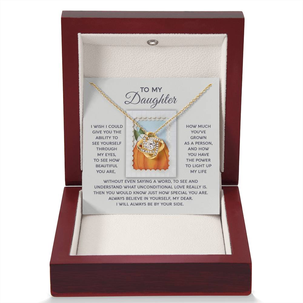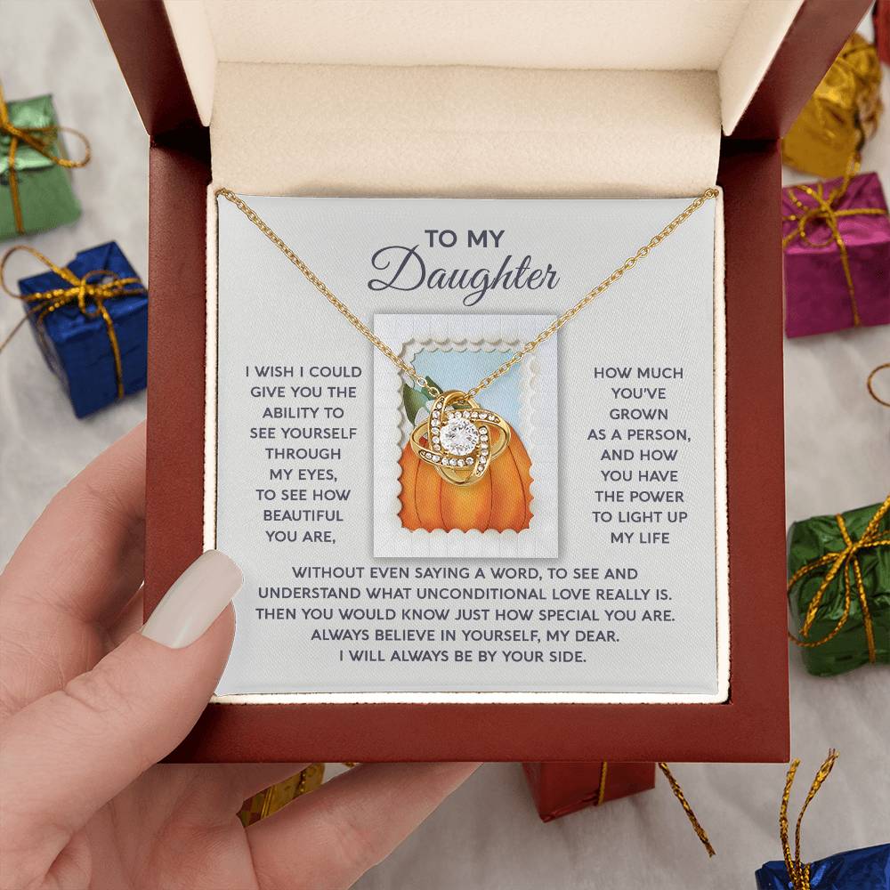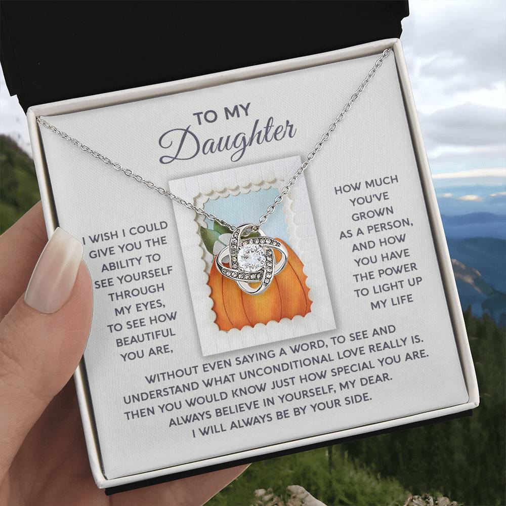 Your Daughter will be overwhelmed with joy, her eyes welling up with tears when she receives this Love Knot Necklace and your heartfelt message: