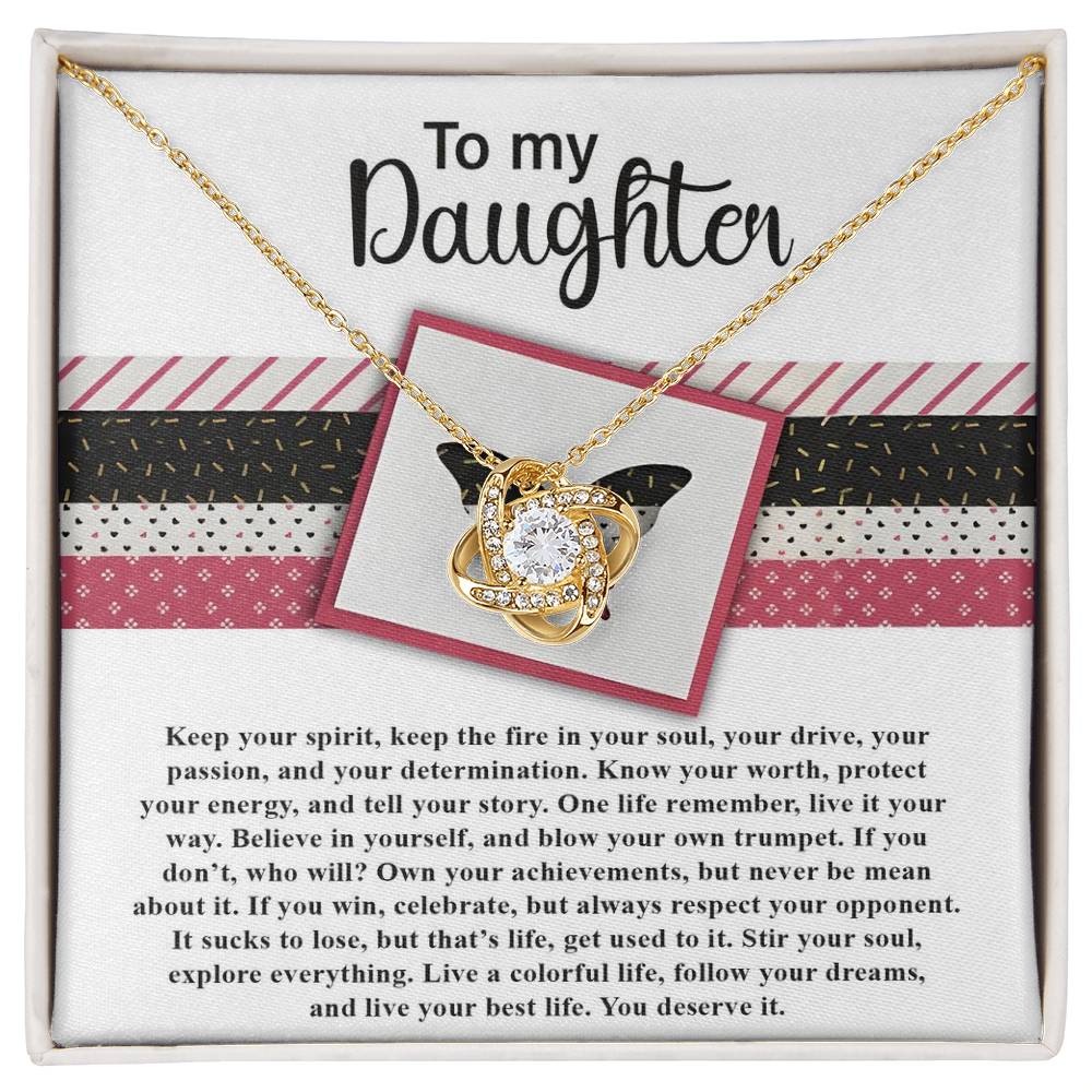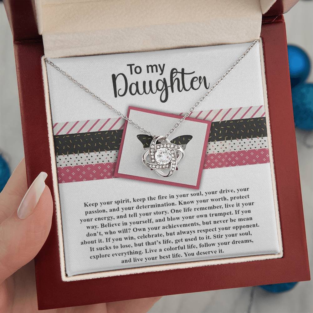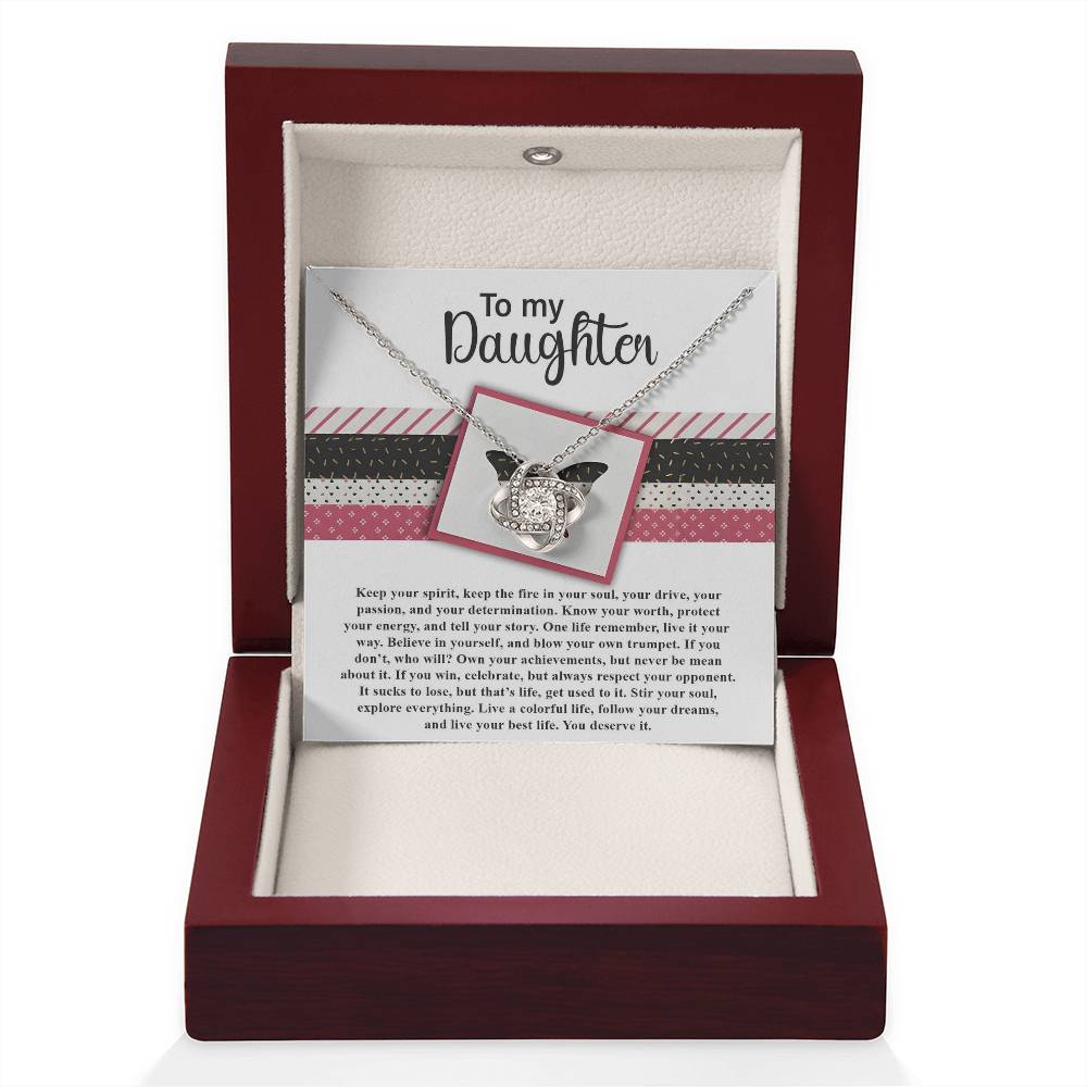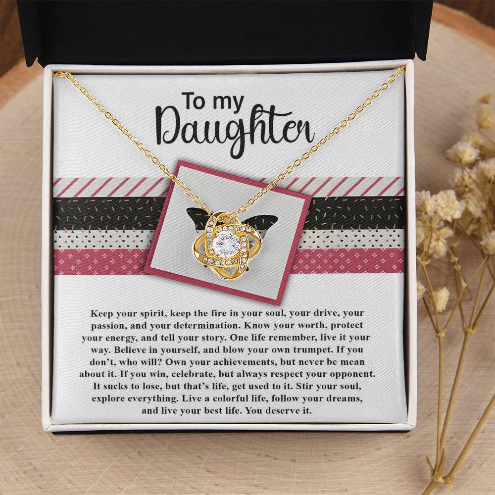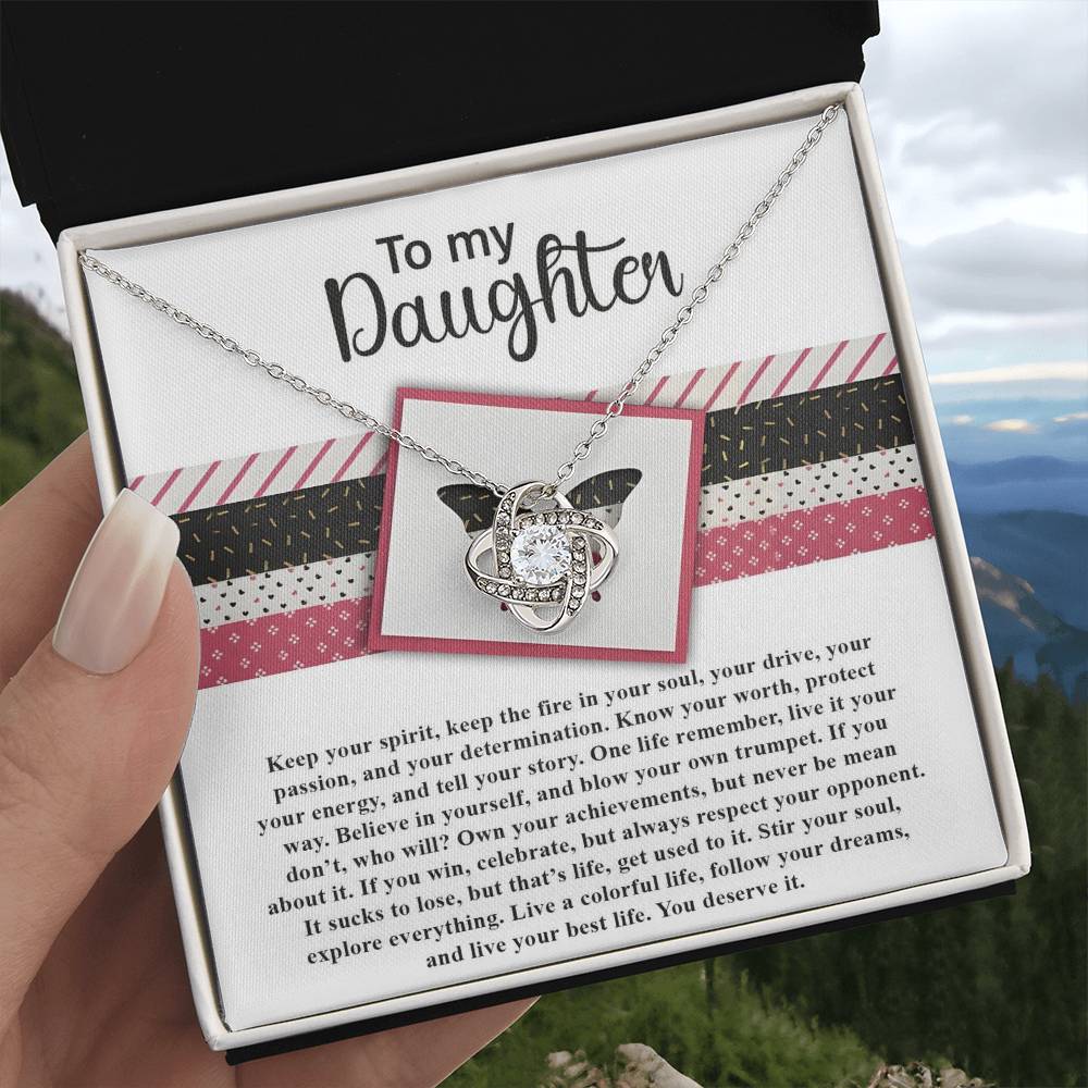 To My Daughter Jewelry Gift - Keep The Fire In Your Soul - Love Knot Necklace