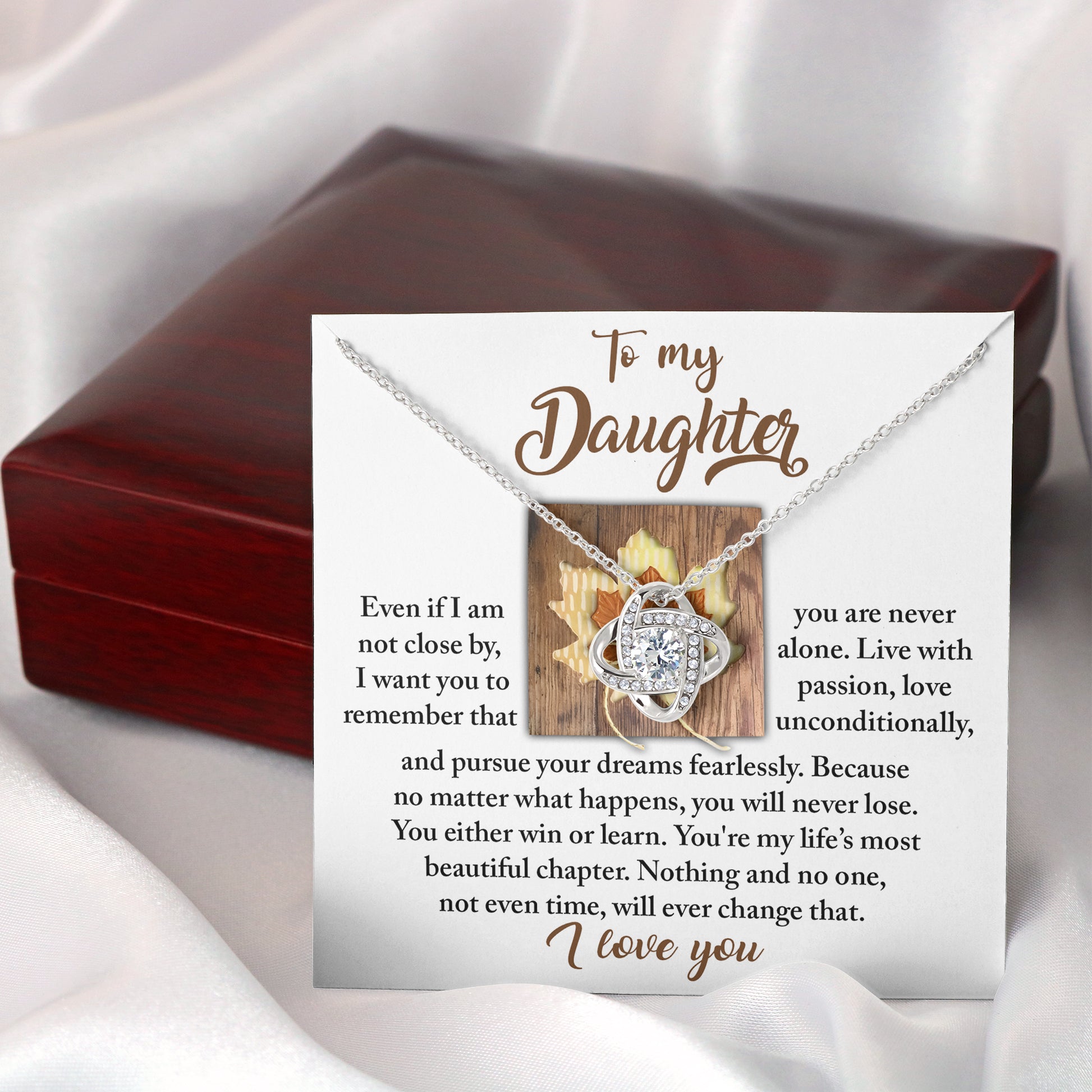 Your daughter will be overwhelmed with joy, her eyes welling up with tears when she receives this Love Knot Necklace and your heartfelt message letting her know how much she means and how much you love her.