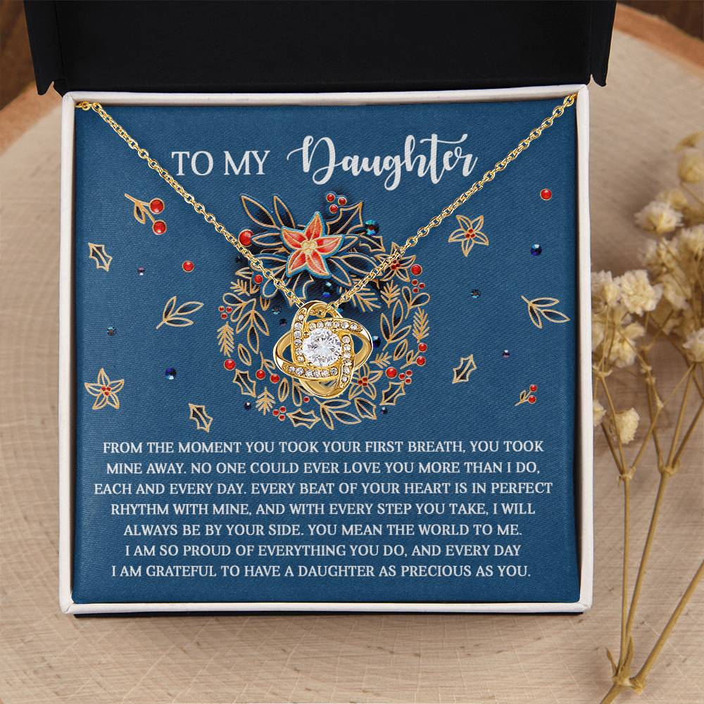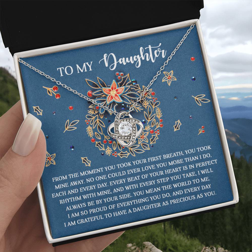 Your Daughter will be overwhelmed with joy, her eyes welling up with tears when she receives this Love Knot Necklace and your heartfelt message letting her know how much she means and how much you love her.