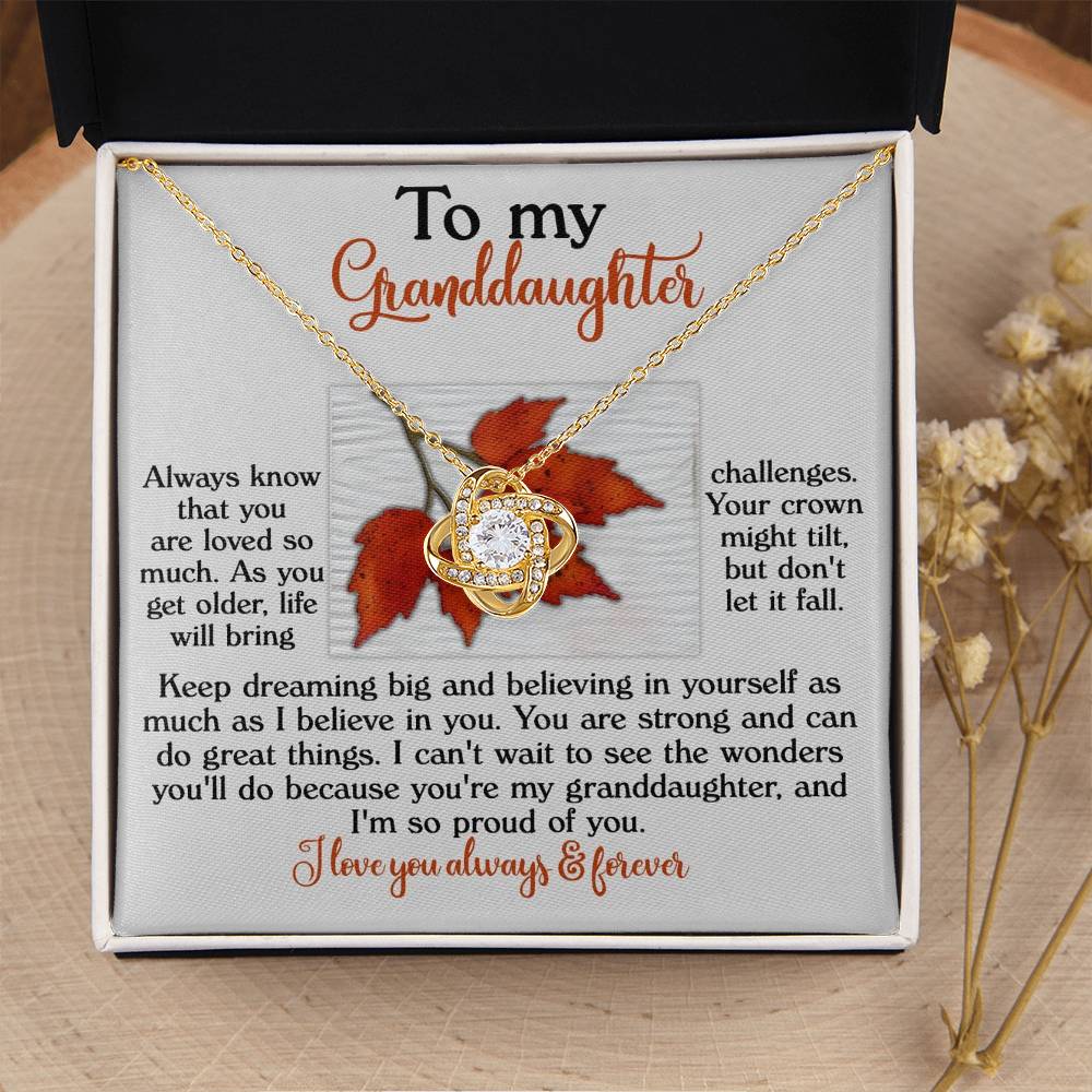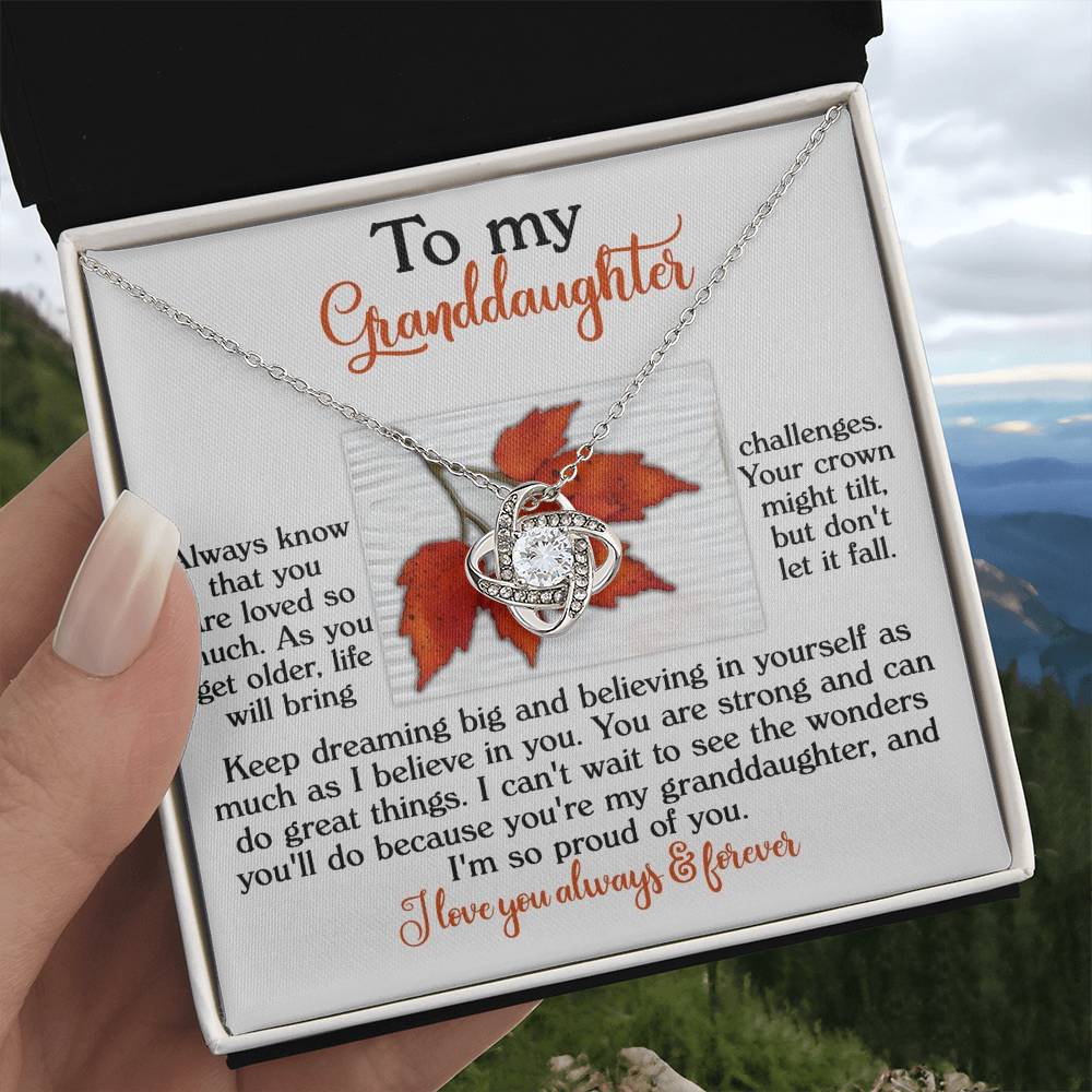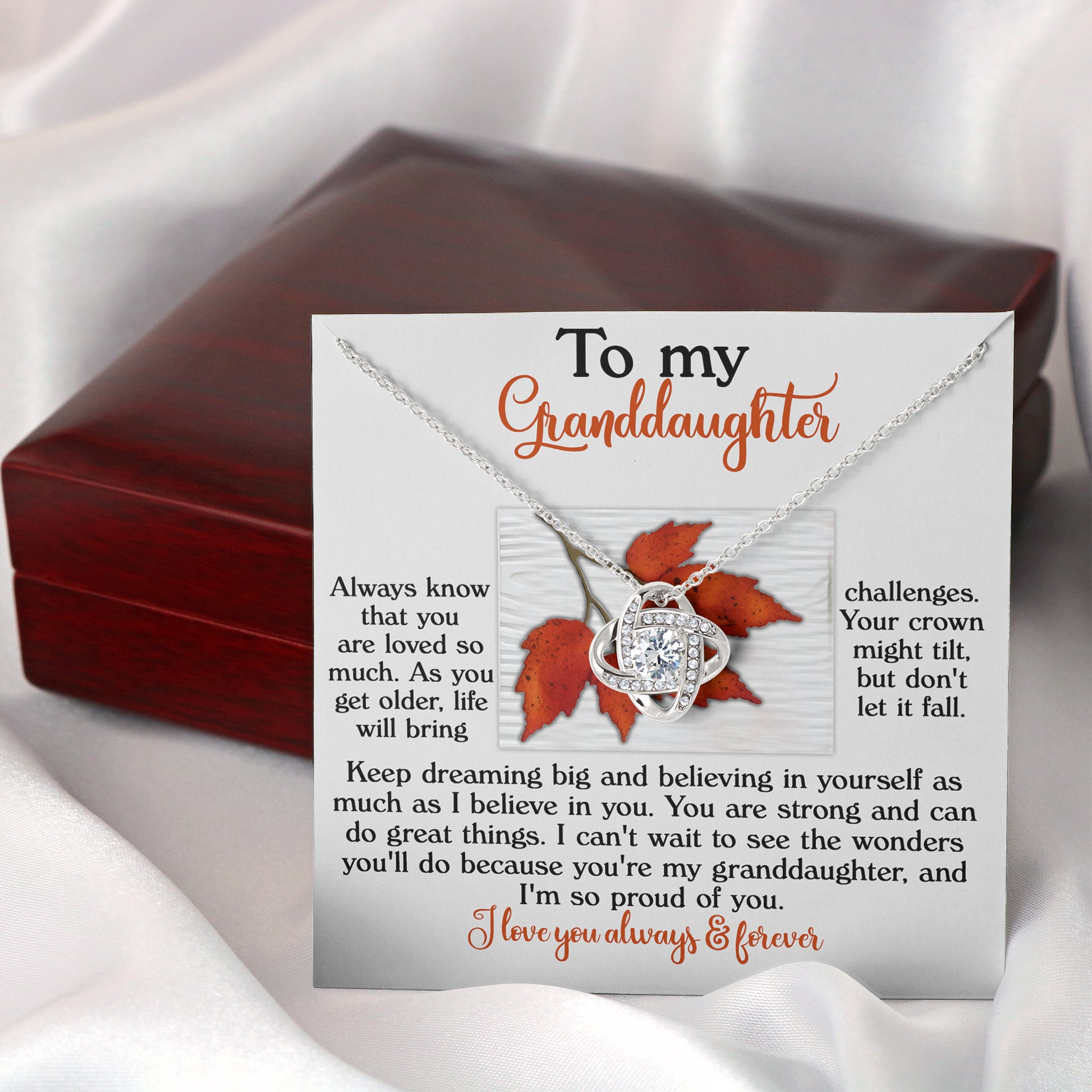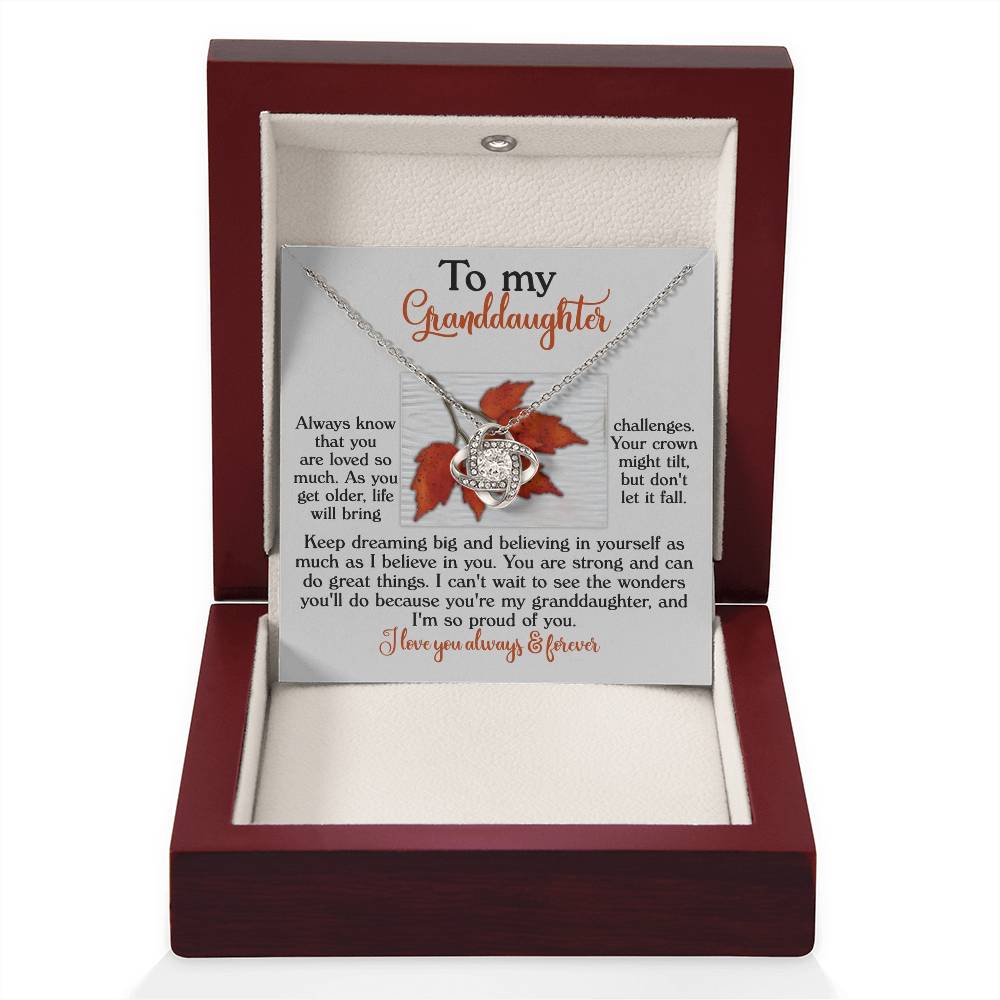 Your Granddaughter will be overwhelmed with joy, her eyes welling up with tears when she receives this Love Knot Necklace and your heartfelt message letting her know how much she means and how much you love her.