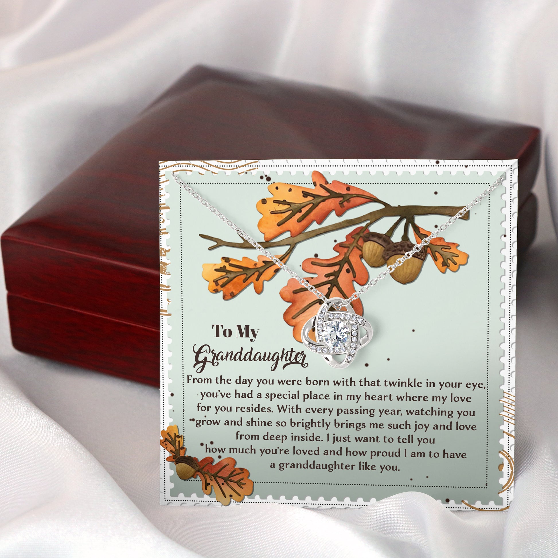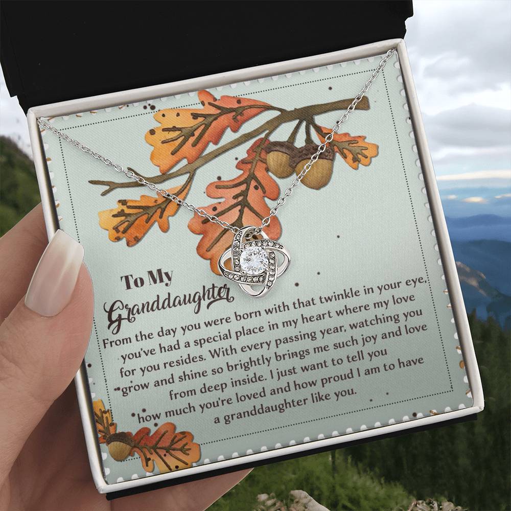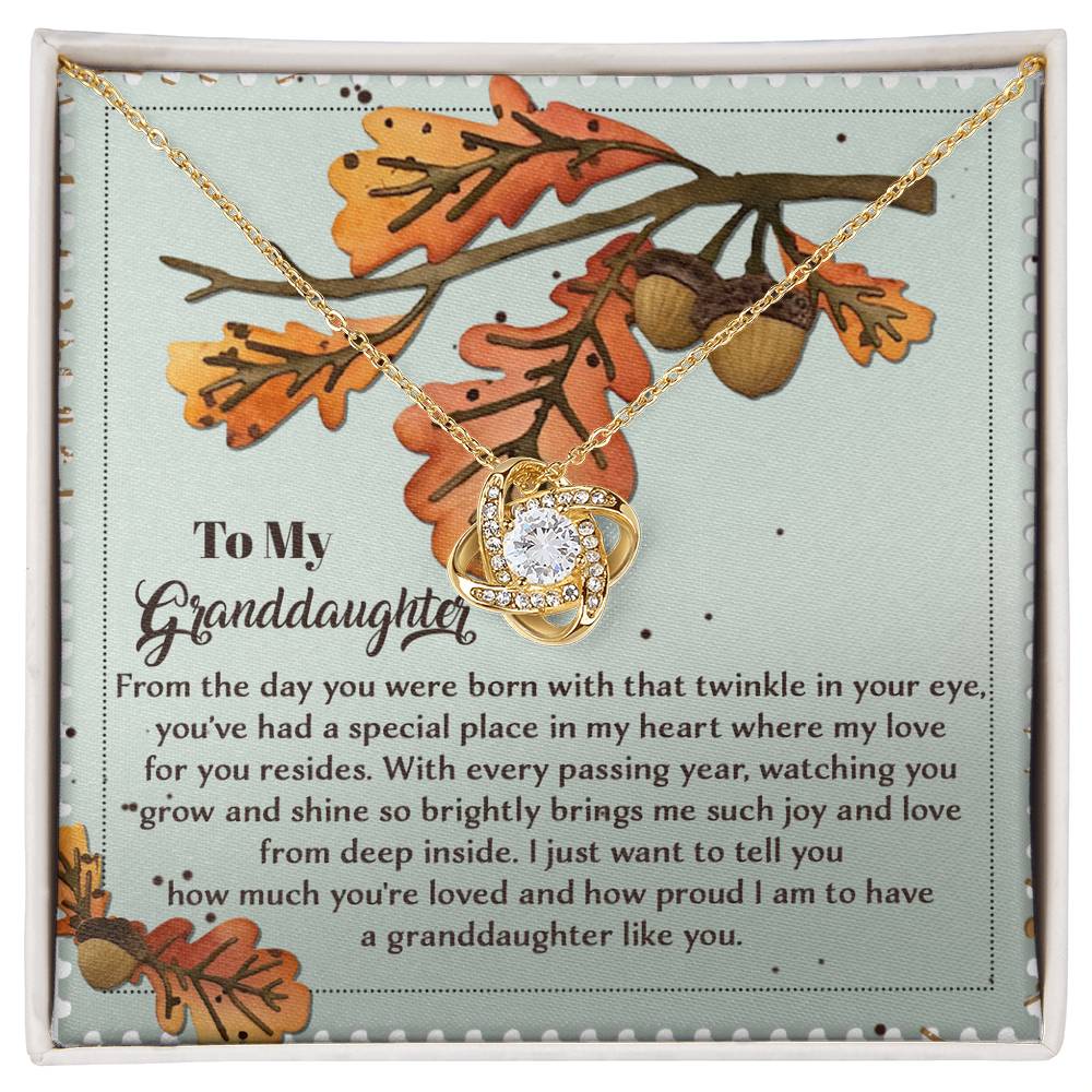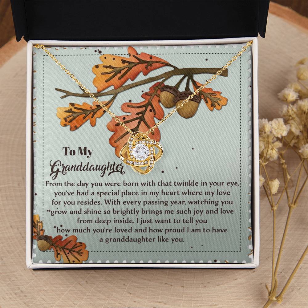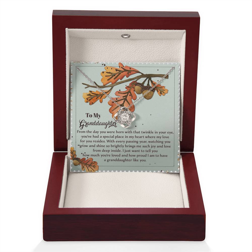 Your Granddaughter will be overwhelmed with joy, her eyes welling up with tears when she receives this Love Knot Necklace and your heartfelt message letting her know how much she means and how much you love her.