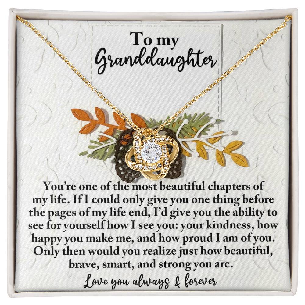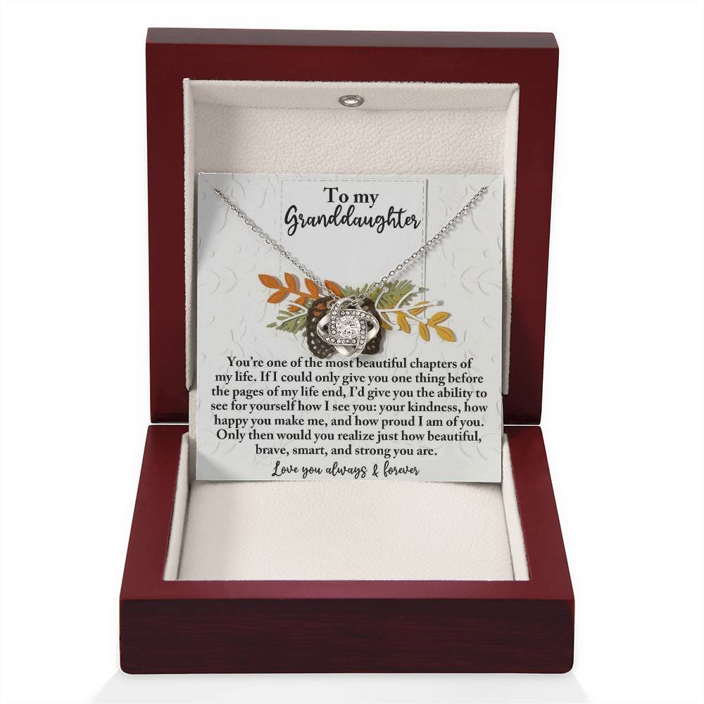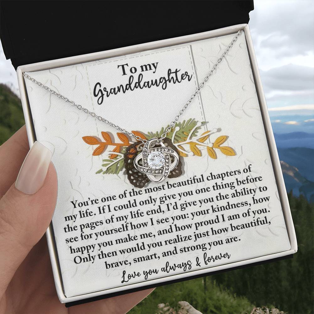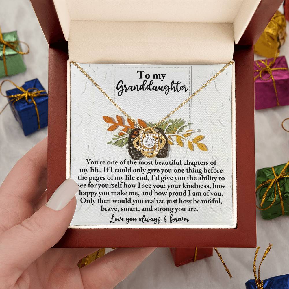 To My Granddaughter Jewelry Gift - Beautiful, Brave and Strong - Love Knot Necklace