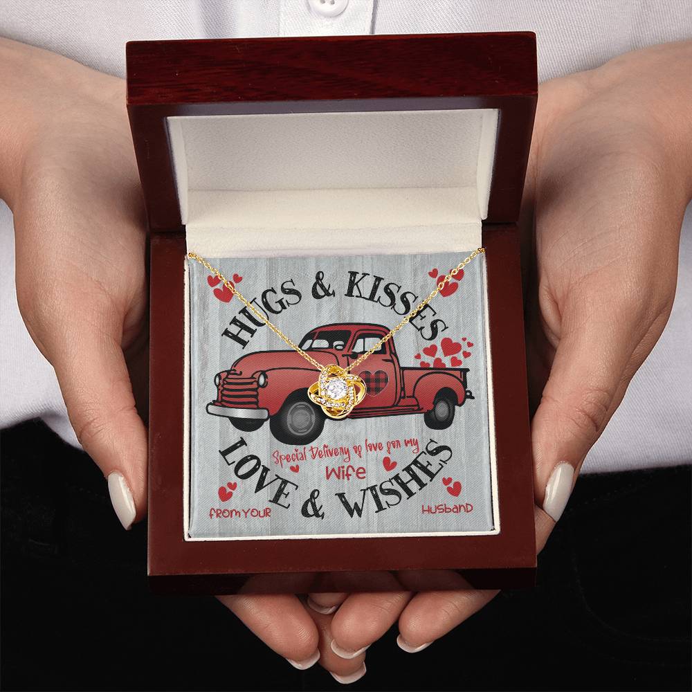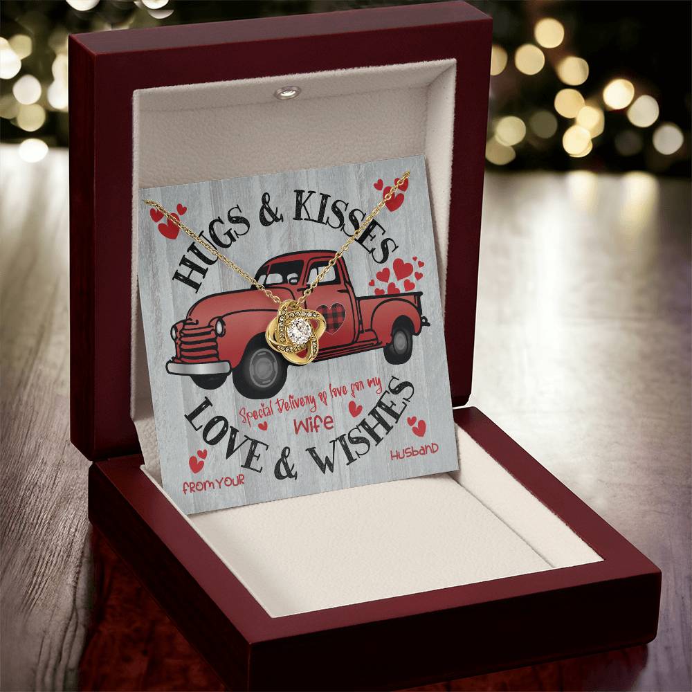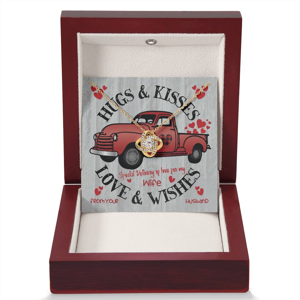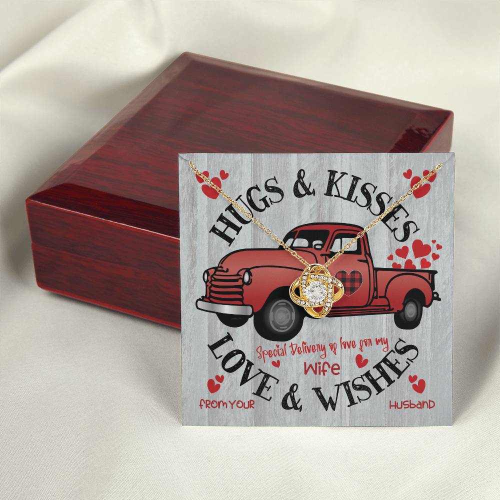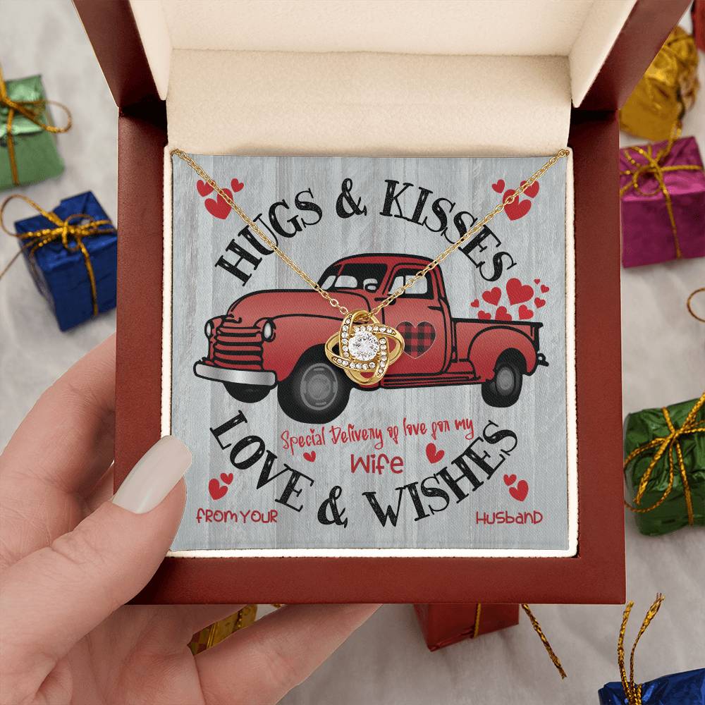 To My Wife - 14K Gold Necklace with Personalized Message Card - Hugs & Kisses, Love & Wishes