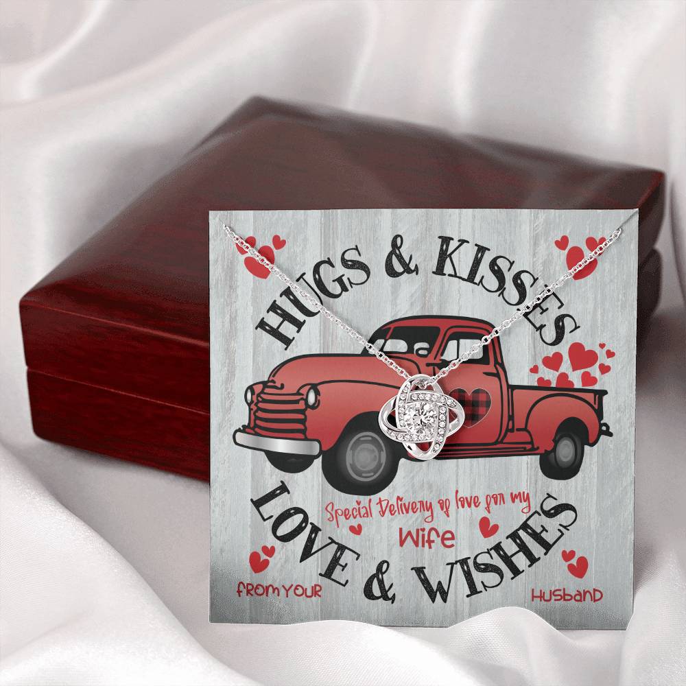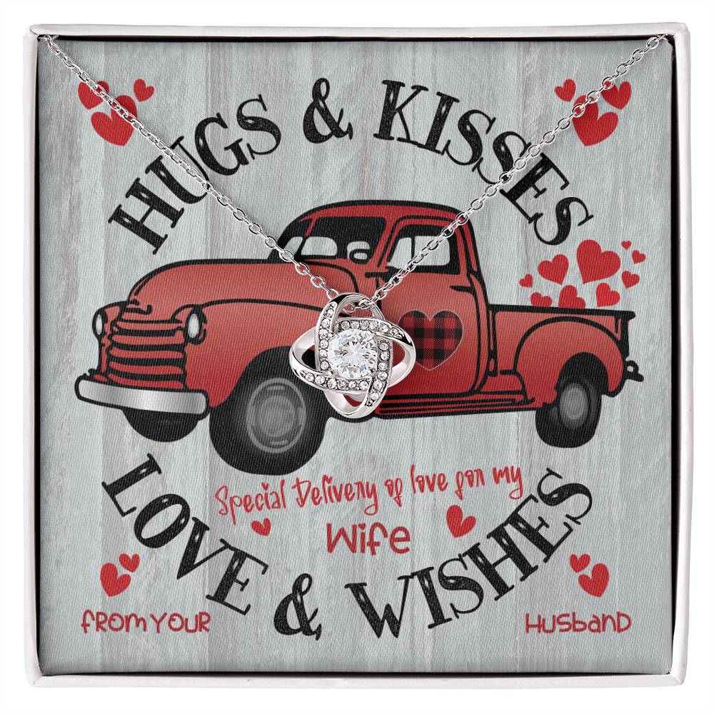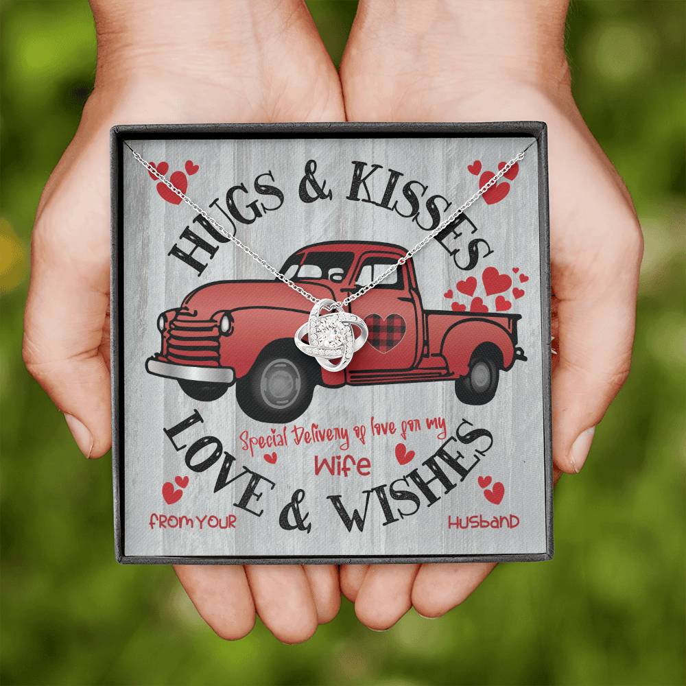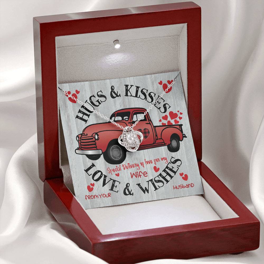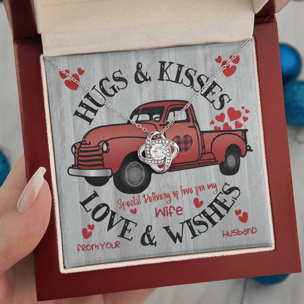 To My Wife - 14K Gold Necklace with Personalized Message Card - Hugs & Kisses, Love & Wishes