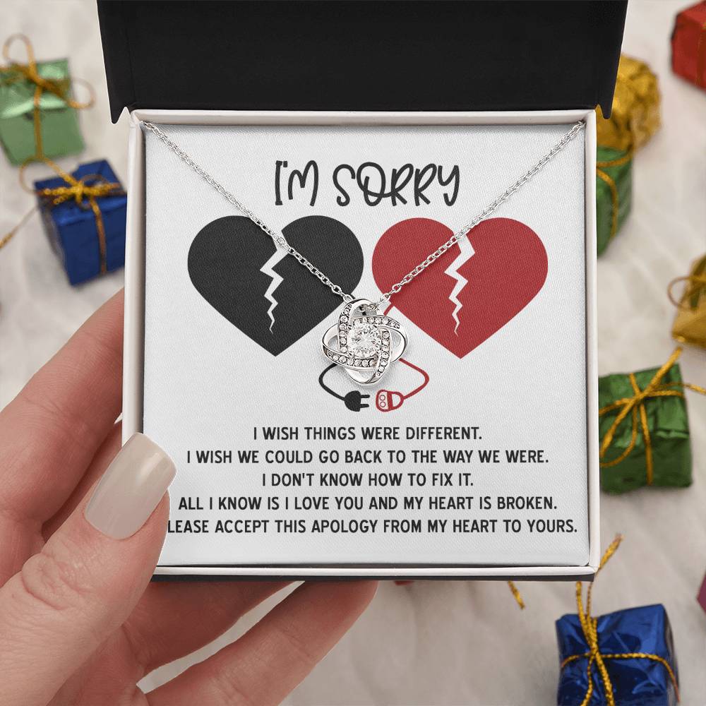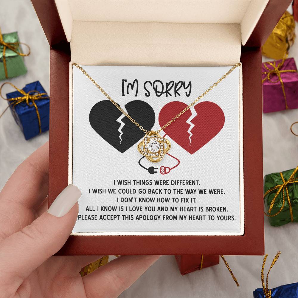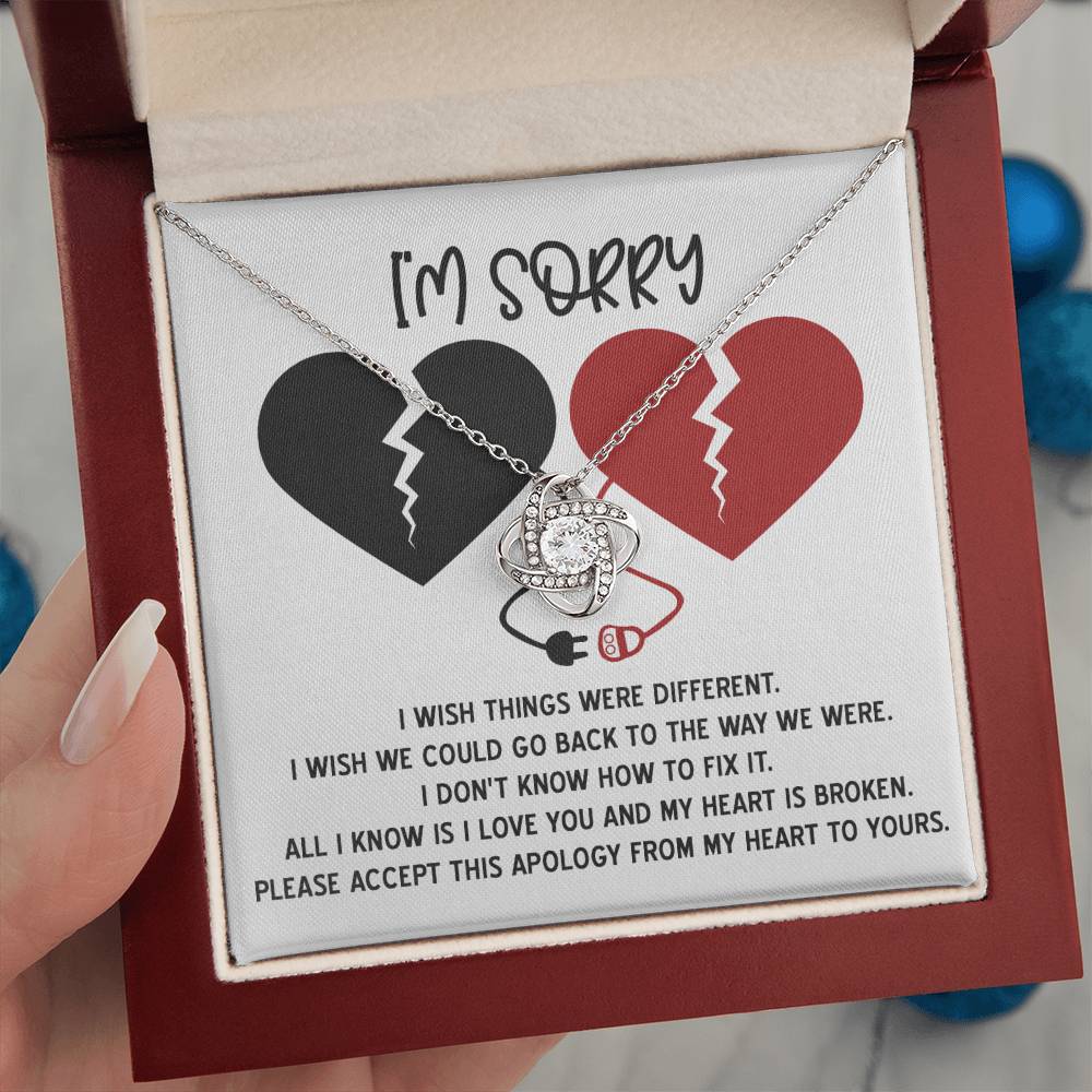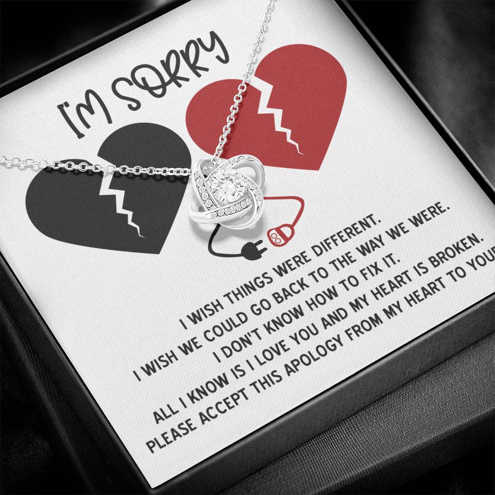 I'm Sorry Gift For Her - Love Knot Necklace - Heart is Broken