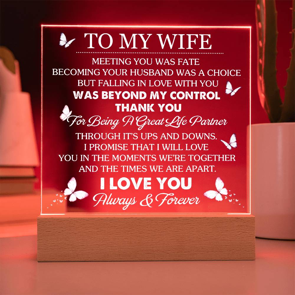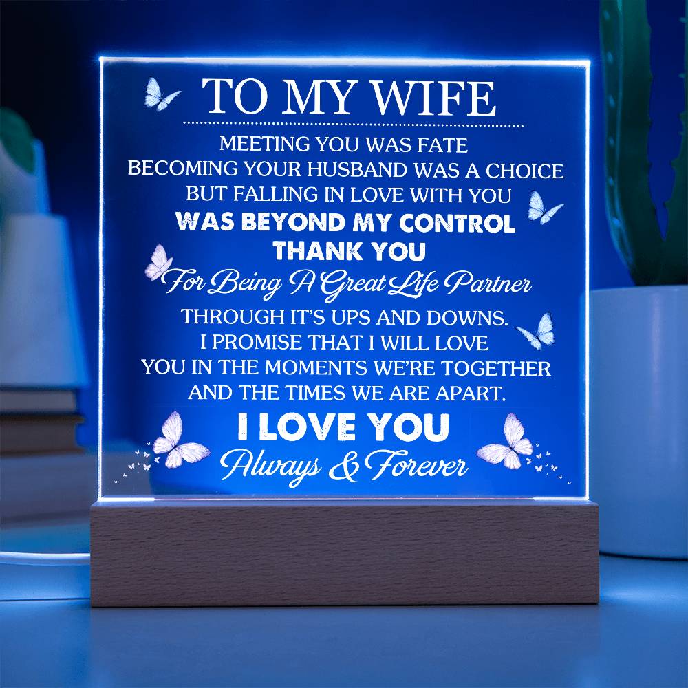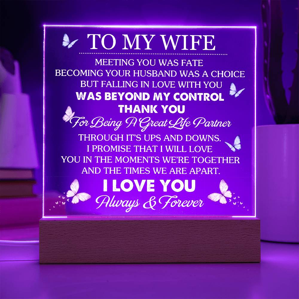 To My Wife - Thank You For Being A Great Life Partner - Acrylic LED Plaque