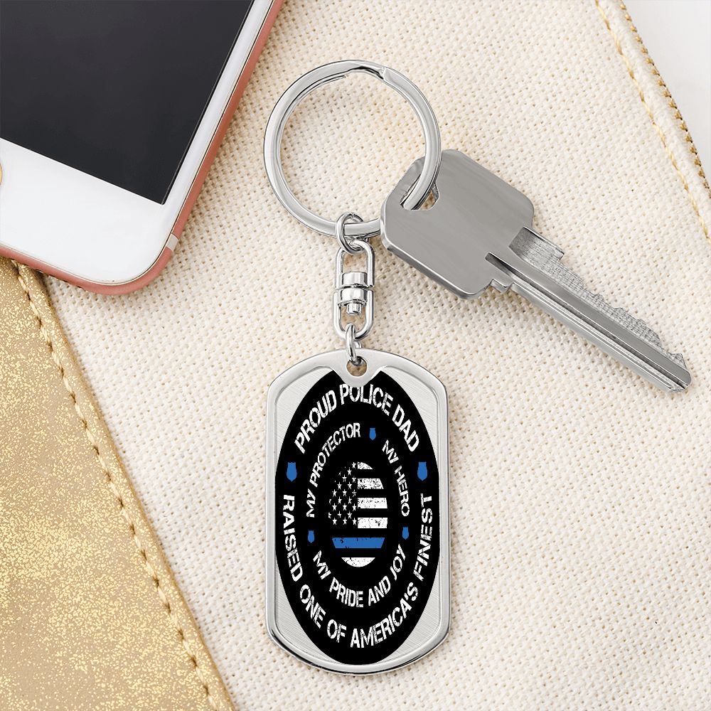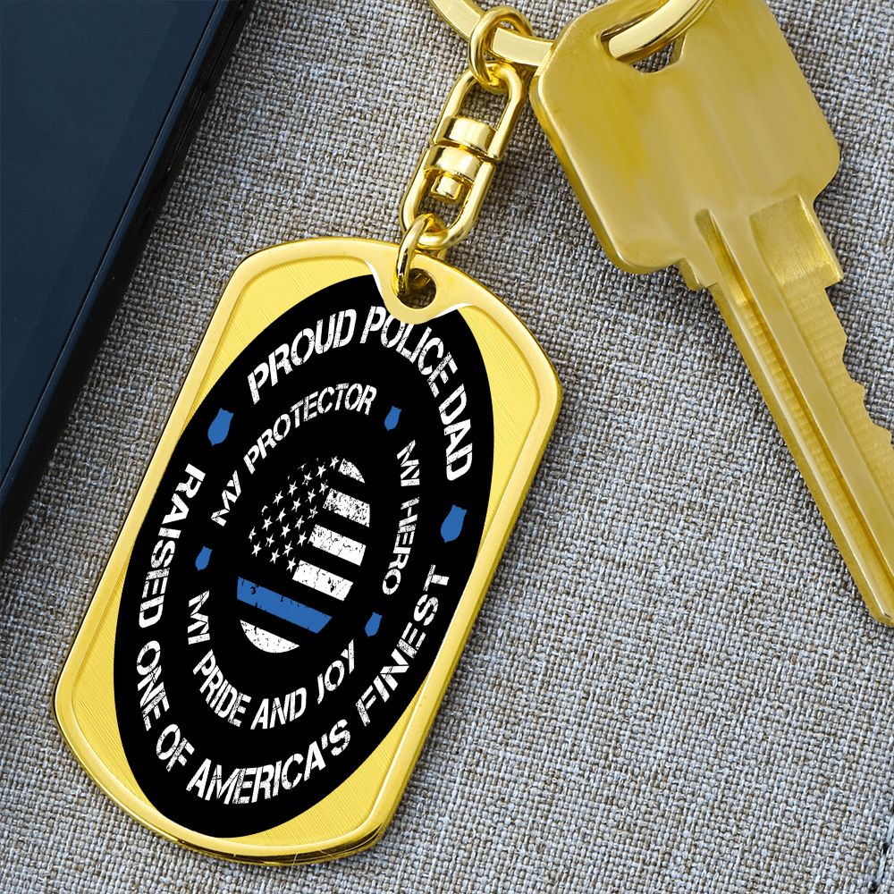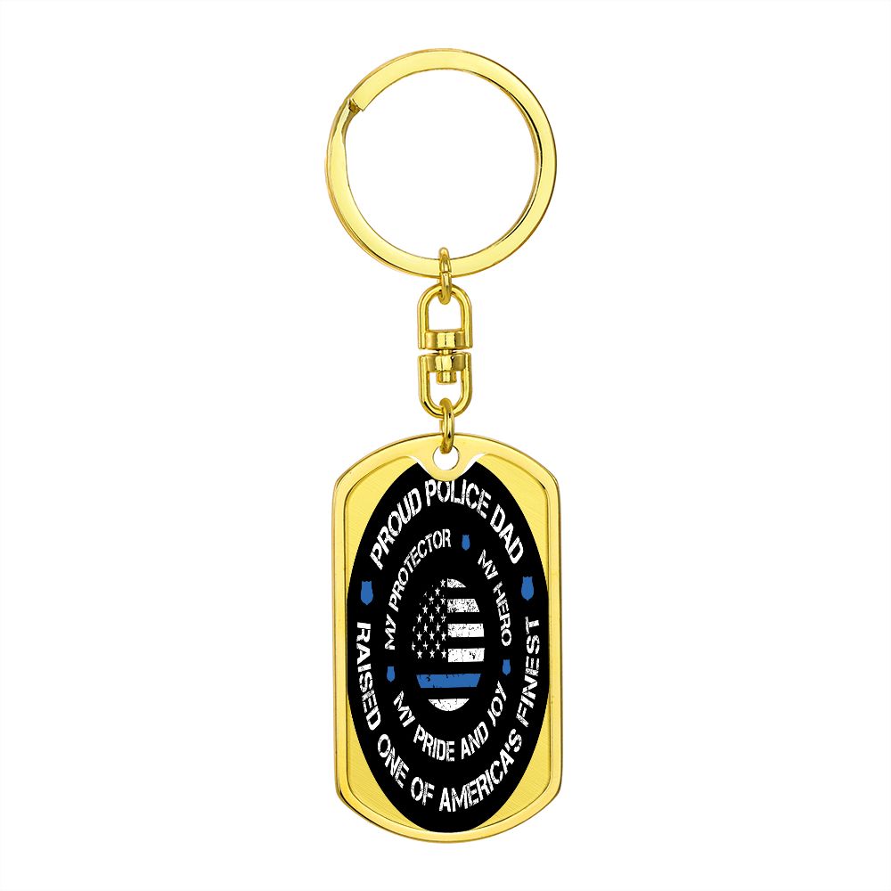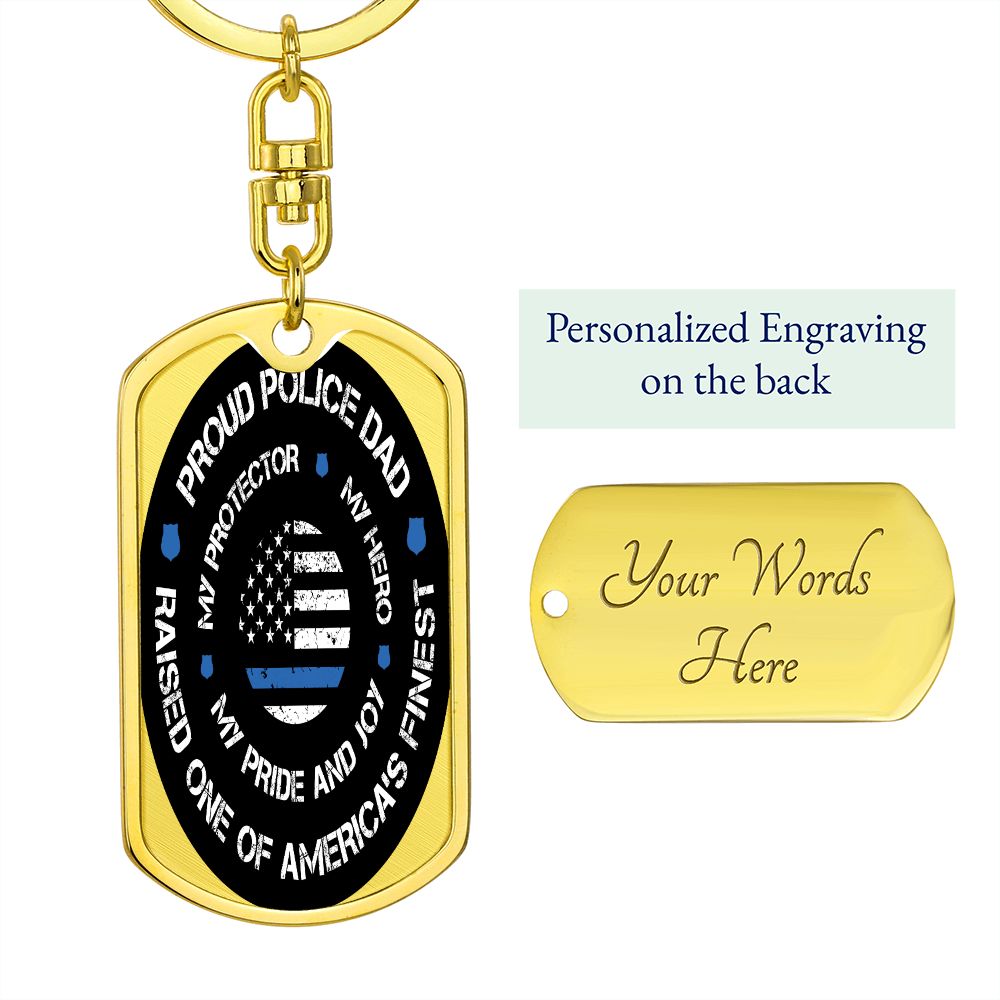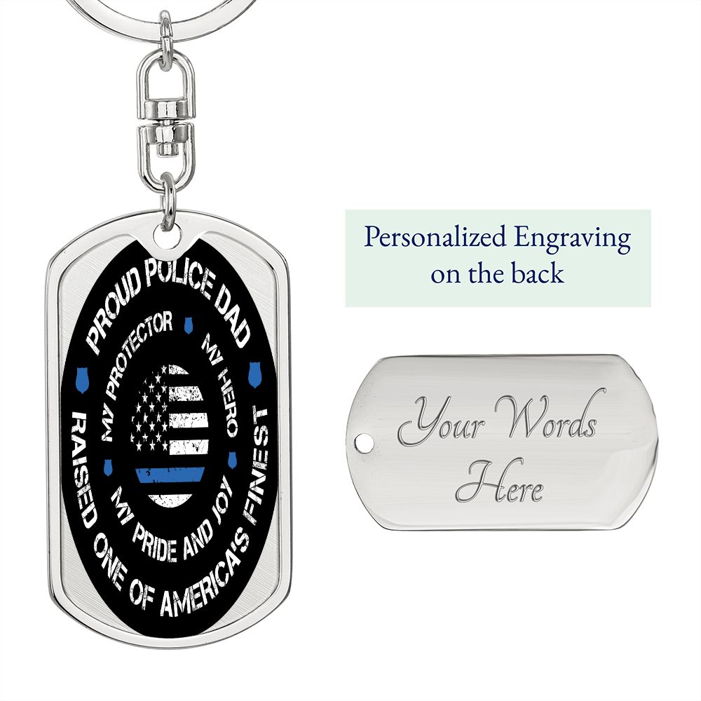 Police Dad Gift - Dog Tag Swivel Keychain - Proud Police Dad