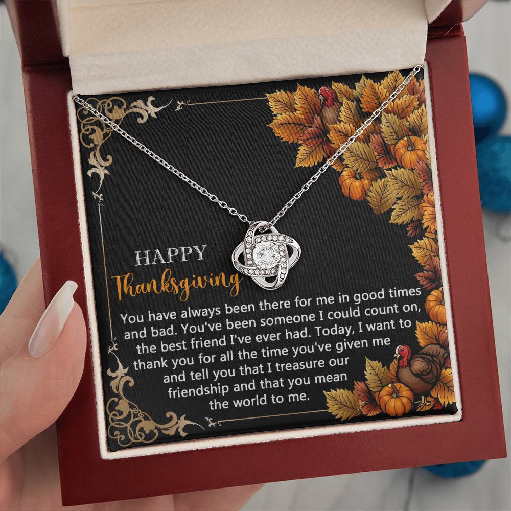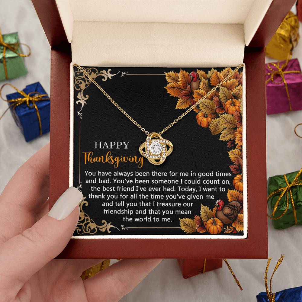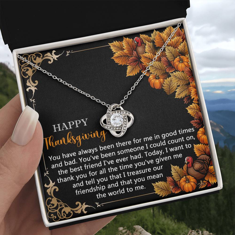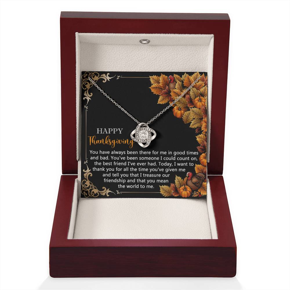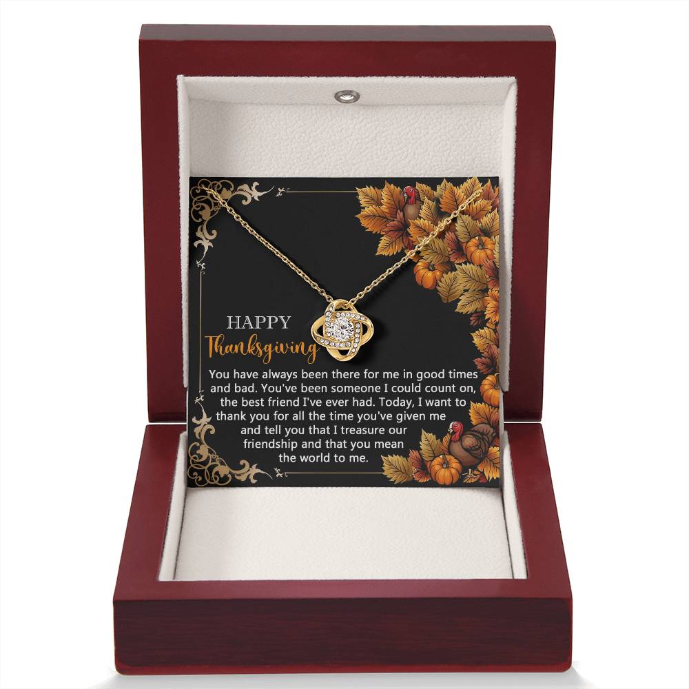 Your loved one, family member, or close friend will be overwhelmed with joy when she receives this Love Knot Necklace and your heartfelt "Thank You" message letting her know how much she means and is loved.
