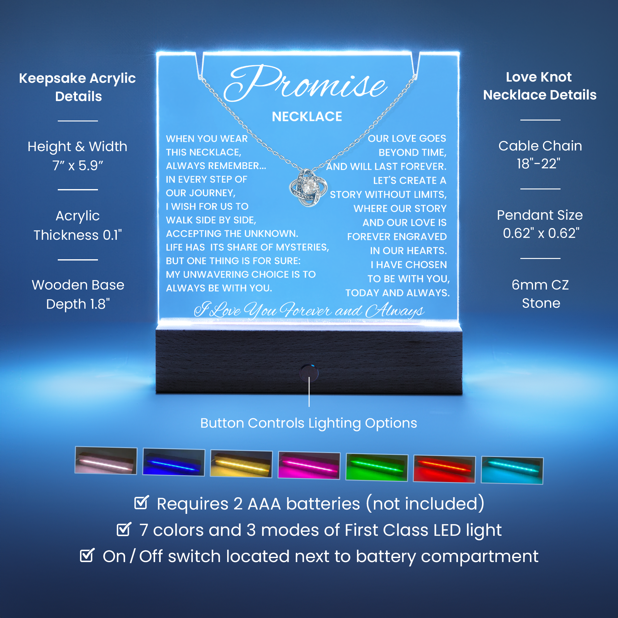 Celebrate your love and appreciation with our elegant Keepsake Acrylic Bundle, featuring a stunning Square Acrylic and the beautiful Love Knot Necklace. Your personalized design is showcased on crystal-clear acrylic, making this set a striking focal point in any space. Paired with the charming Love Knot Necklace, this bundle is the perfect gift for Christmas, anniversaries, birthdays, or any special occasion when you want to make a lasting impression.