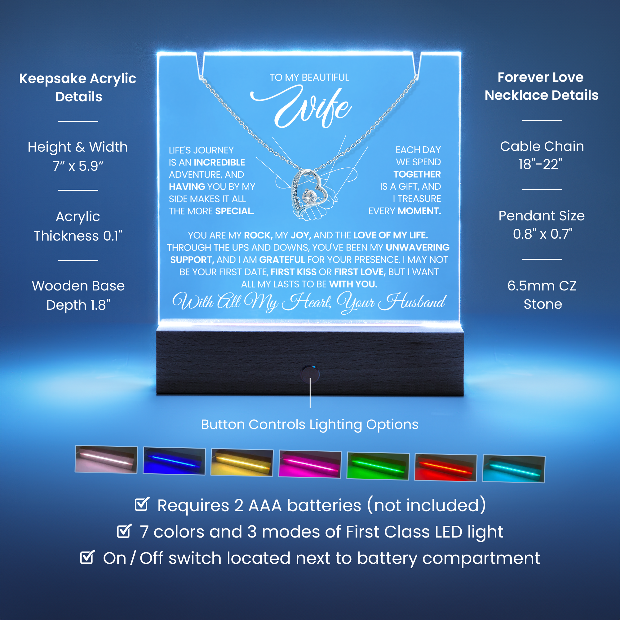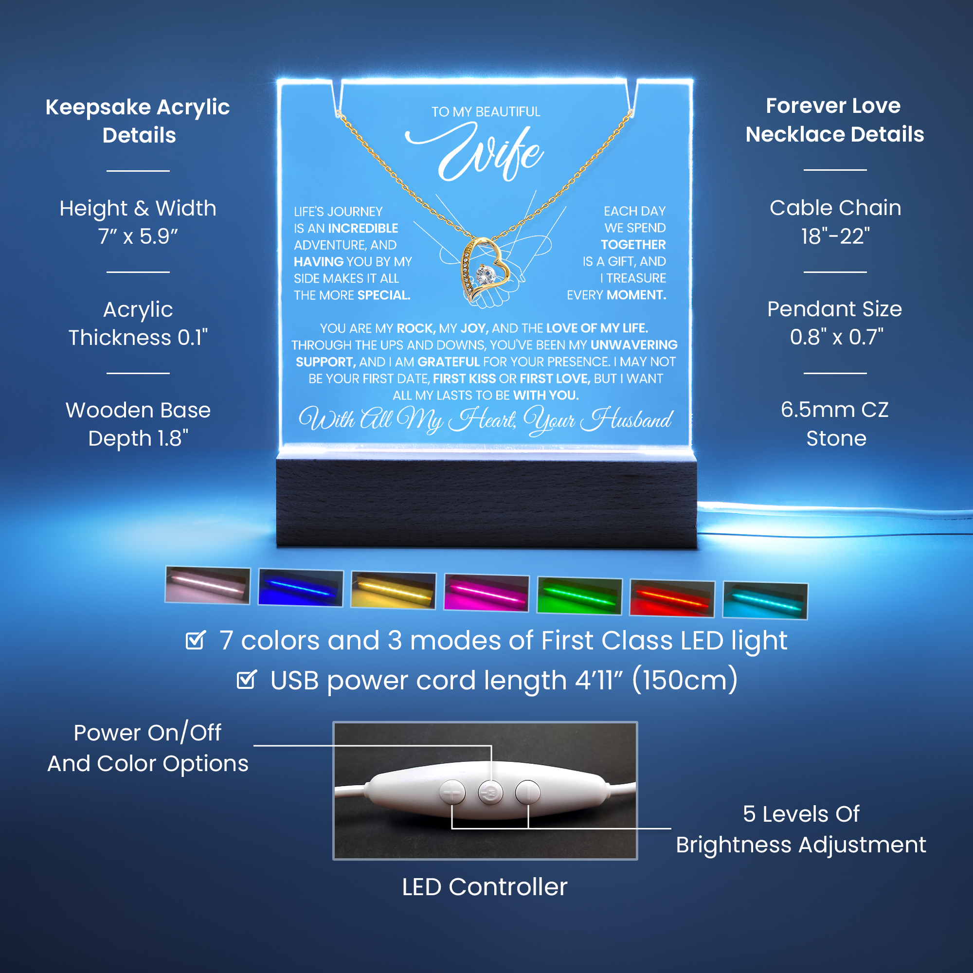 Your Keepsake Acrylic comes with a stylish wooden LED base, and you can choose between a USB plug-in option: