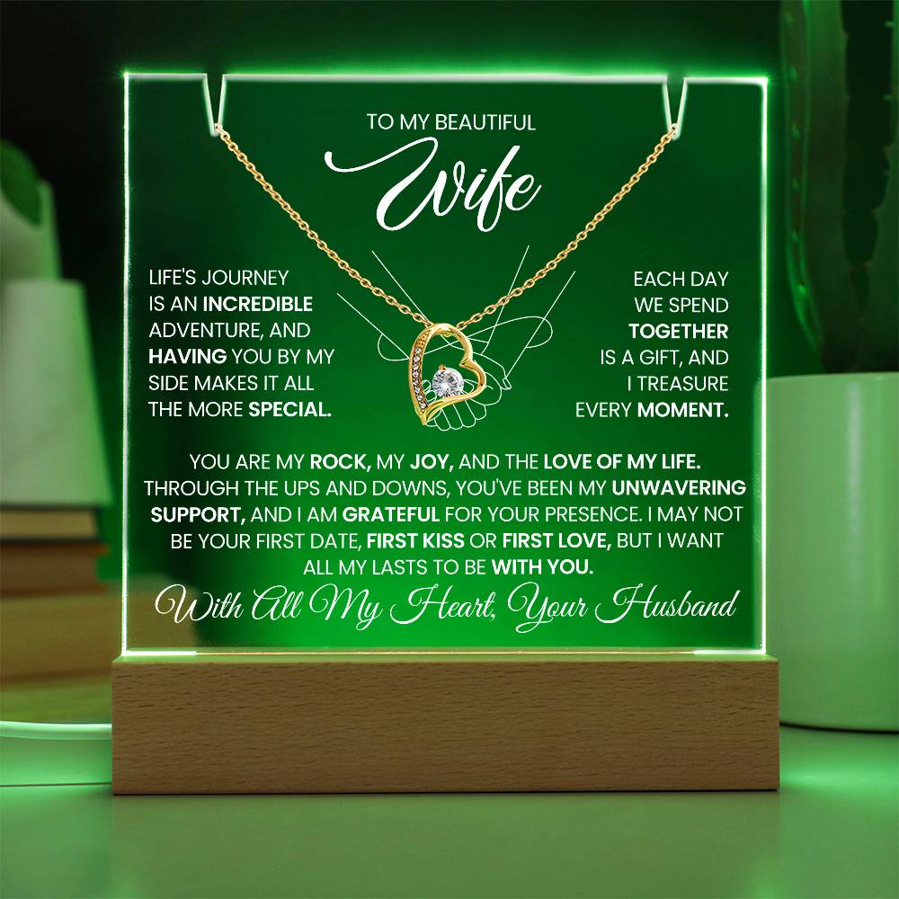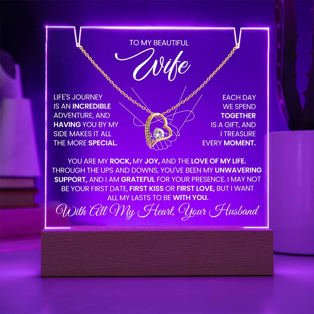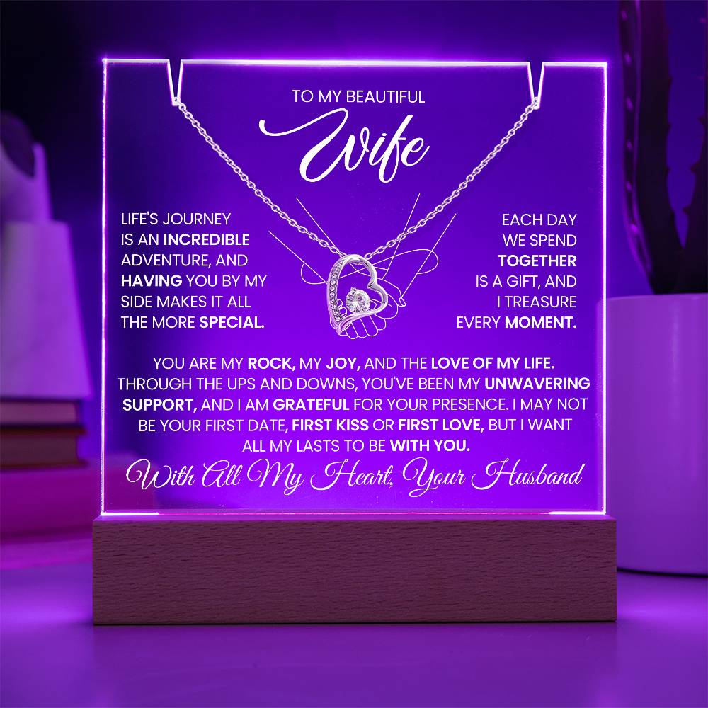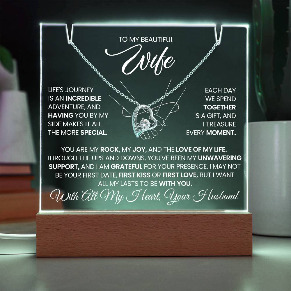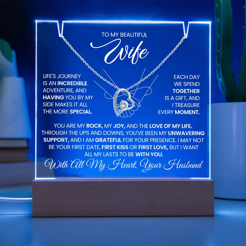 To My Wife Love Knot Necklace with Acrylic Message Plaque - Life Is A Journey