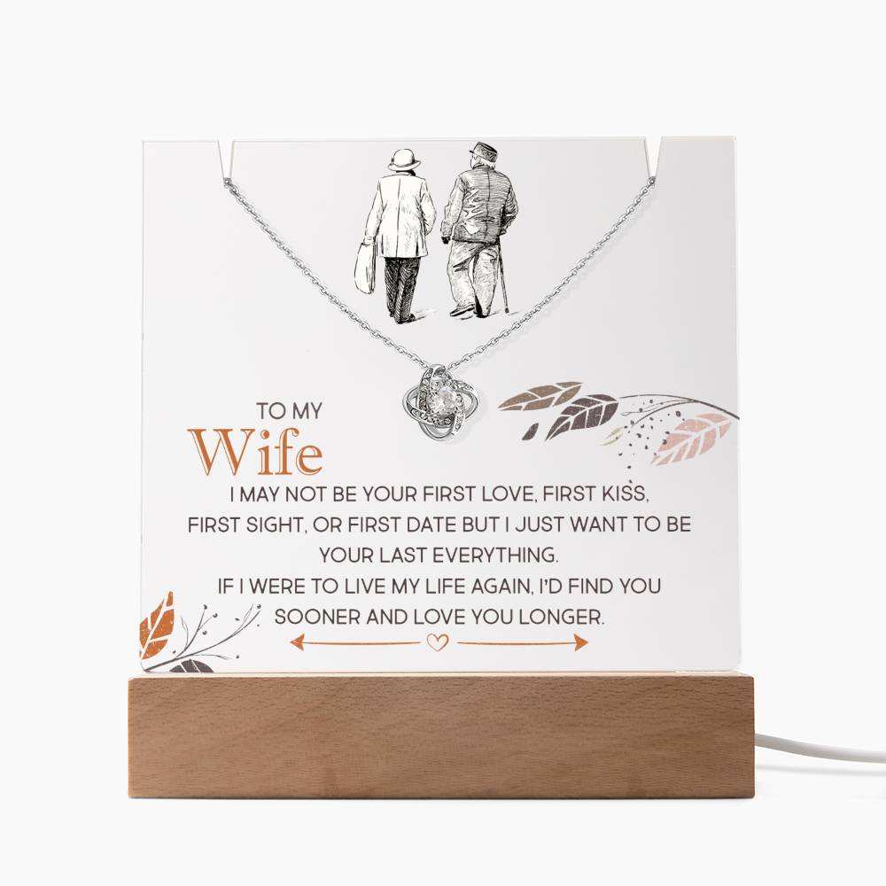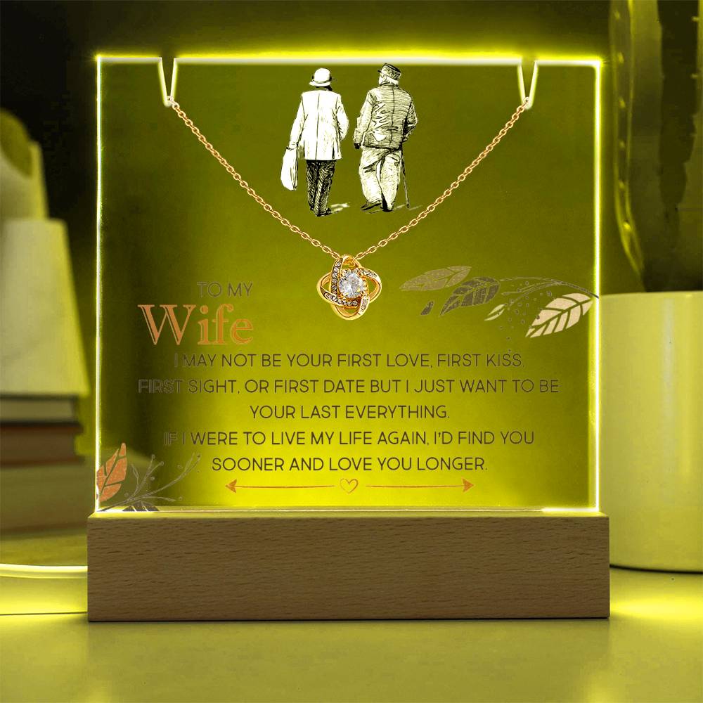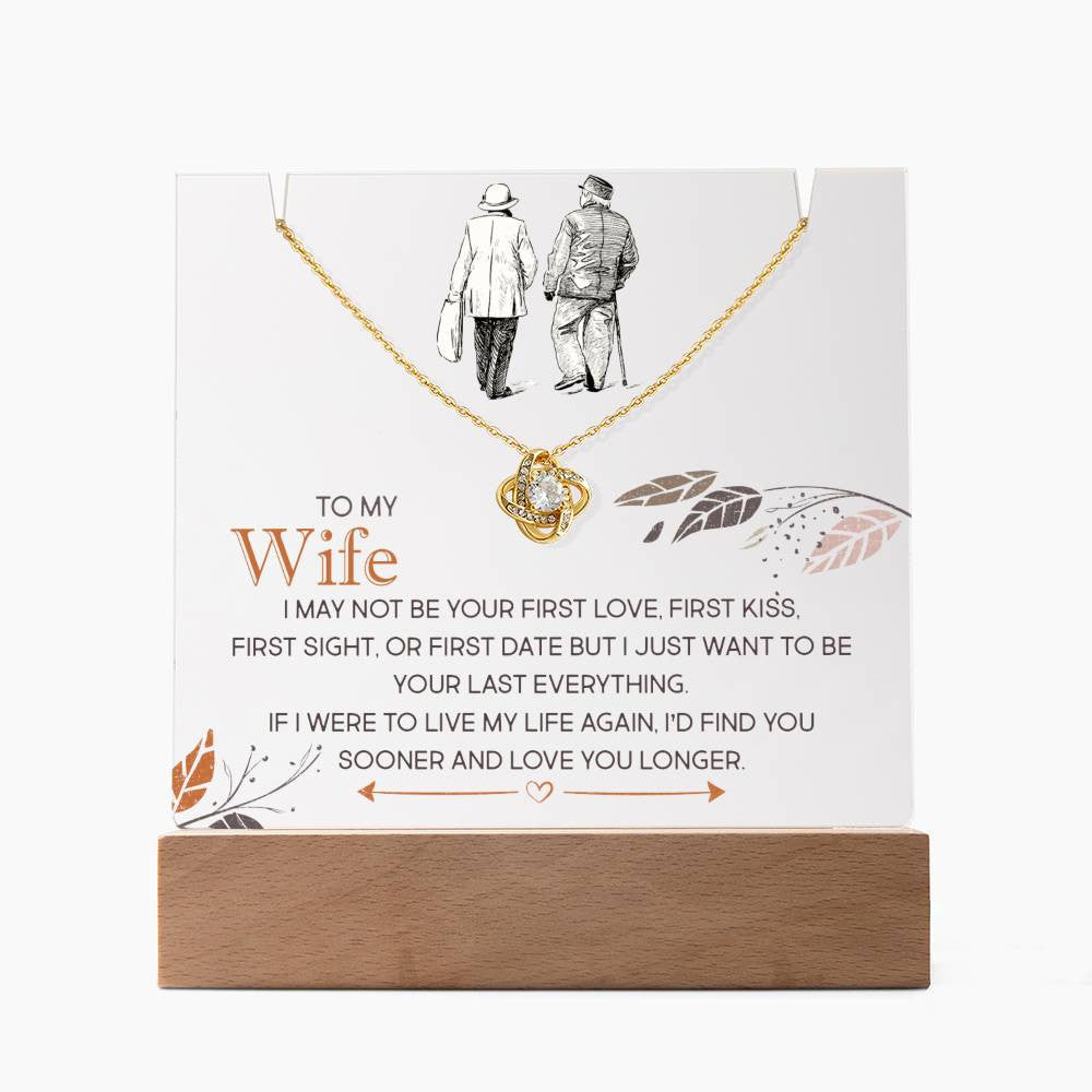 To My Wife - Elegant Love Knot Necklace with Acrylic Message Plaque - I Want You To Be My Last Everything