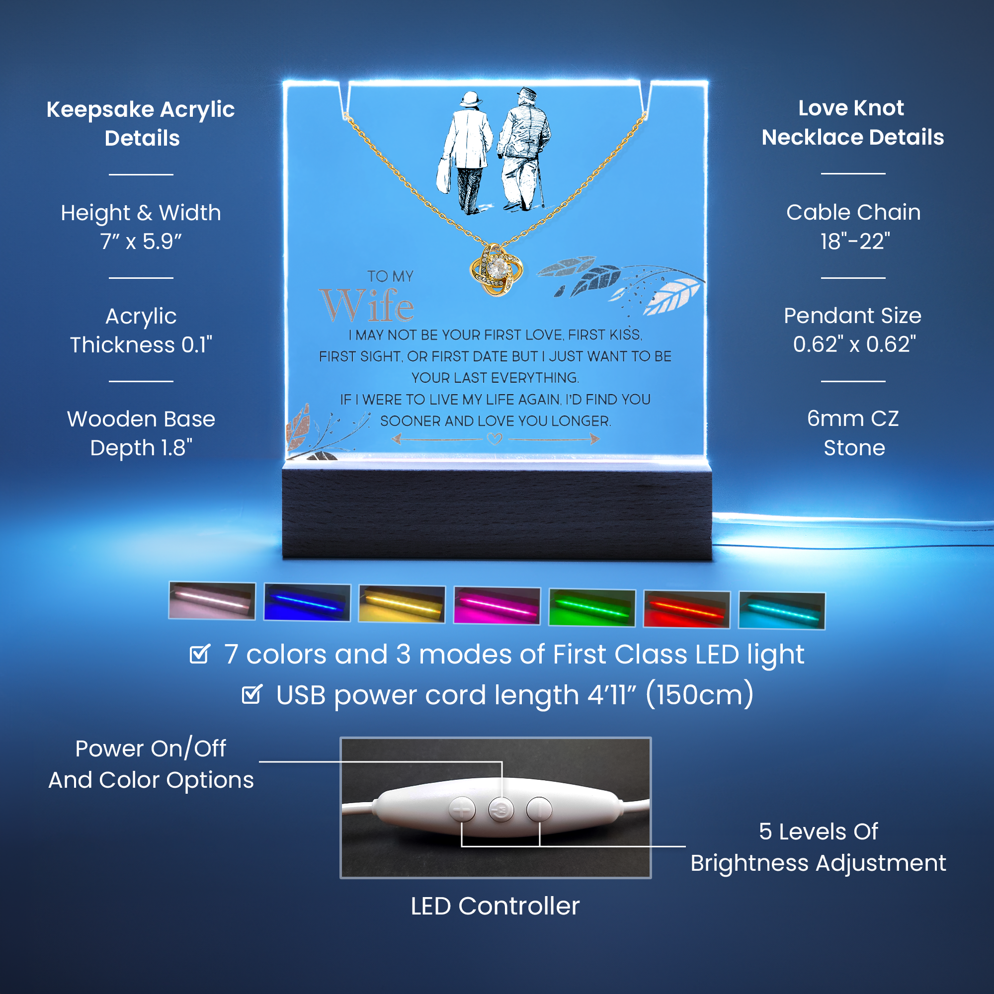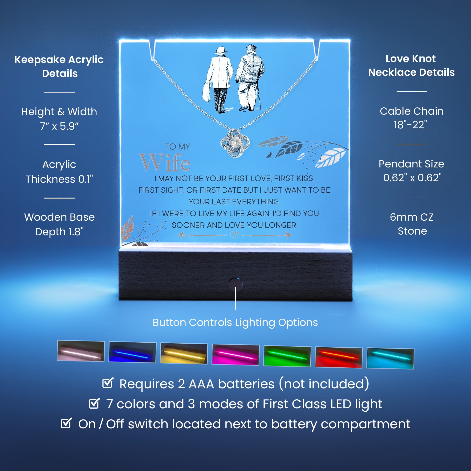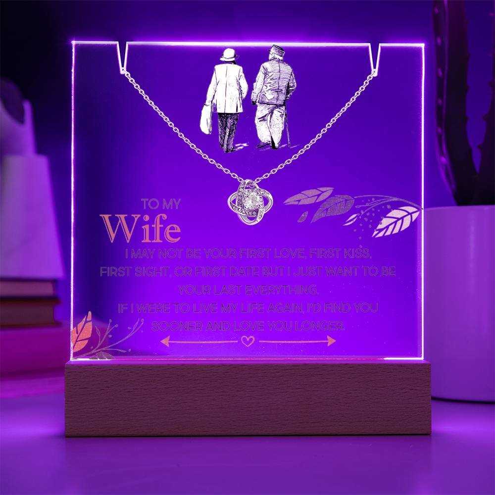 To My Wife - Elegant Love Knot Necklace with Acrylic Message Plaque - I Want You To Be My Last Everything