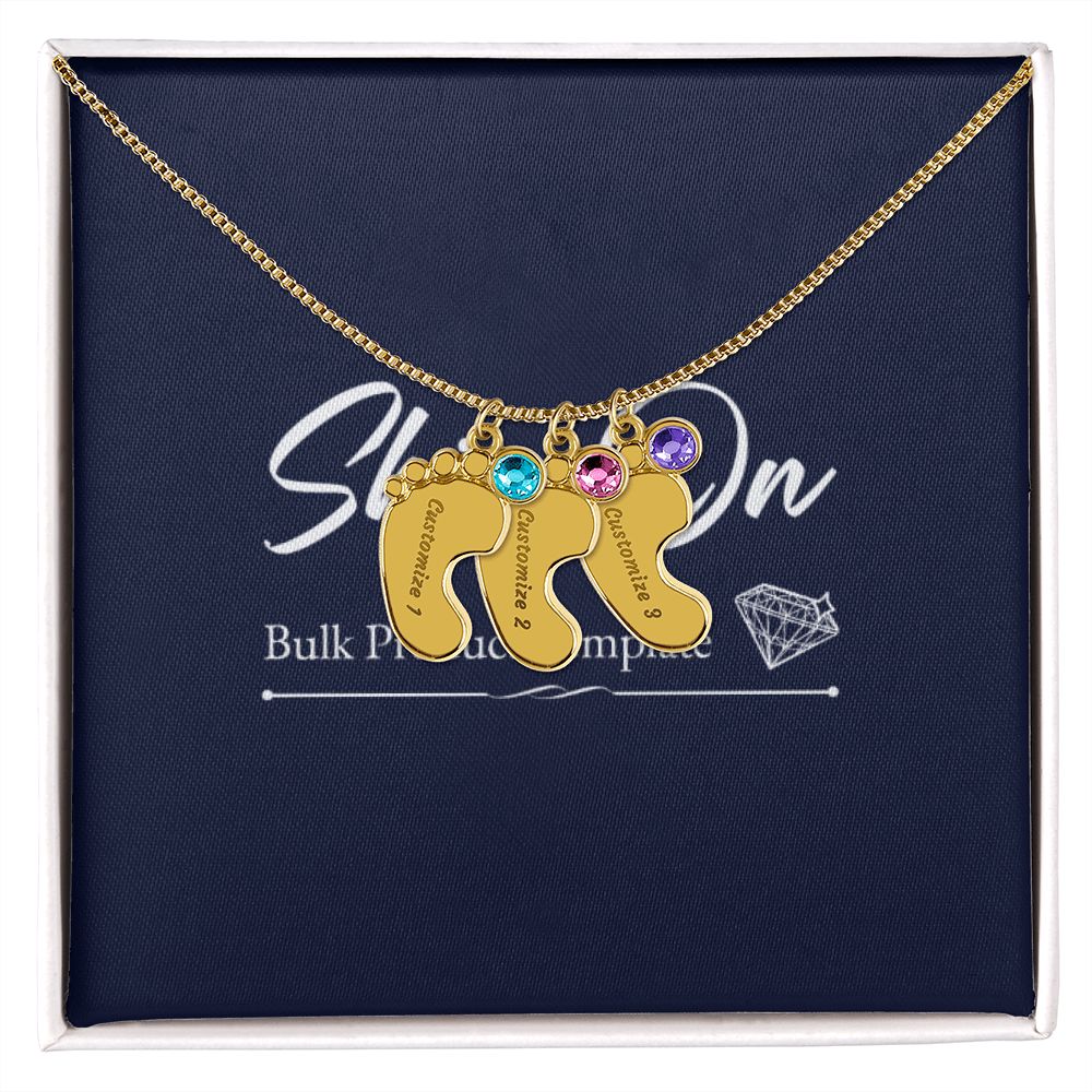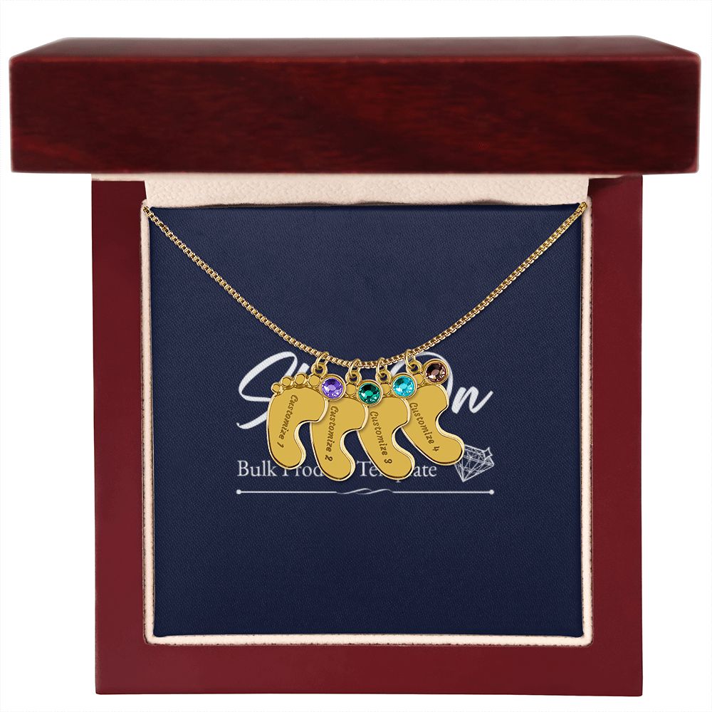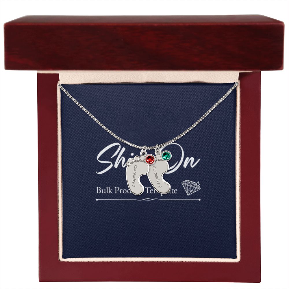 Celebrate the arrival of a newborn or cherish a precious memory with our Custom Baby Feet Necklace with Birthstone. Personalize your gift by engraving a name of your choice onto the pendant and choosing a crystal that correlates with the baby's birth month. And by picking multiple pendants, a custom present like this is perfect for moms and grandmothers with big families. This is a one-of-a-kind keepsake that will be treasured for a lifetime!