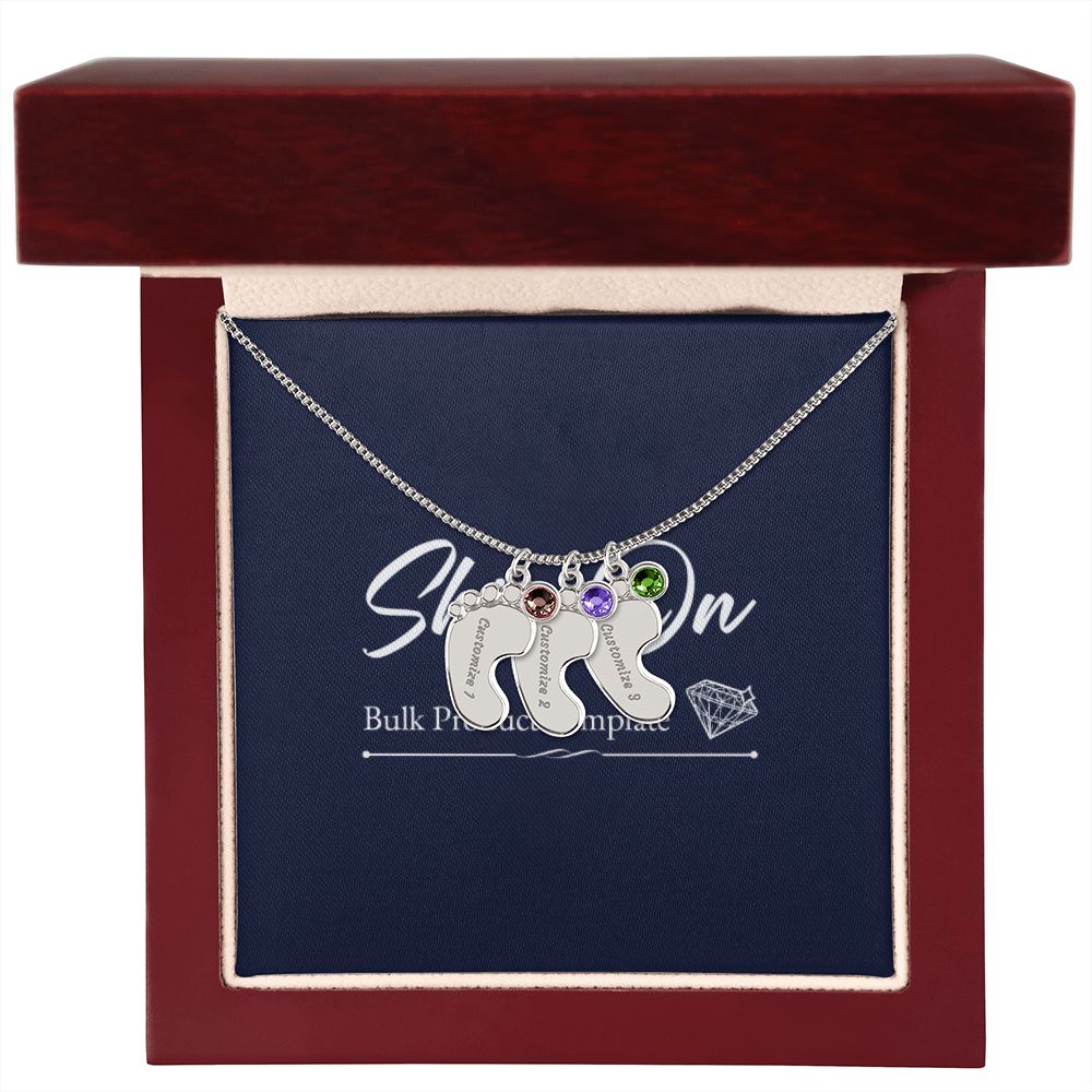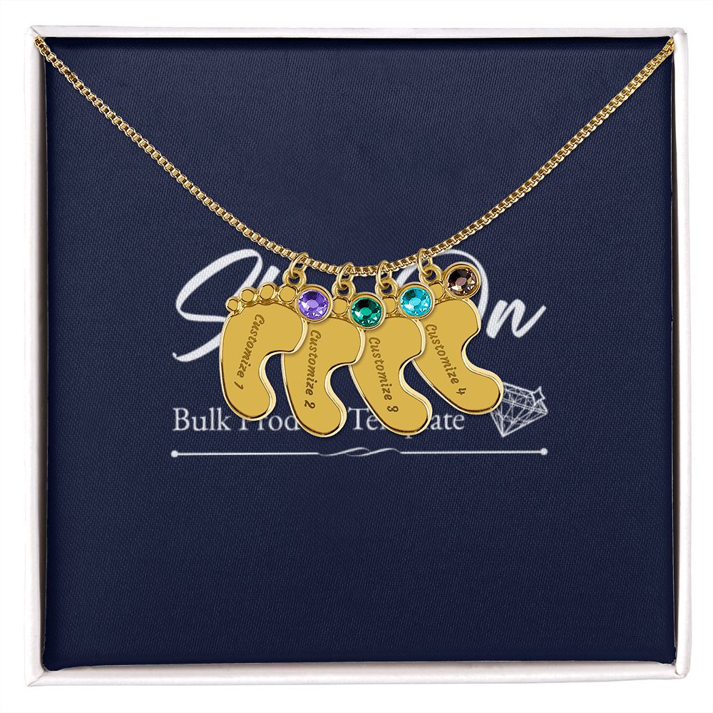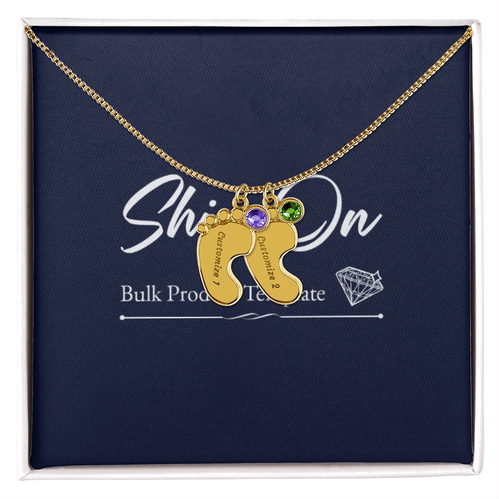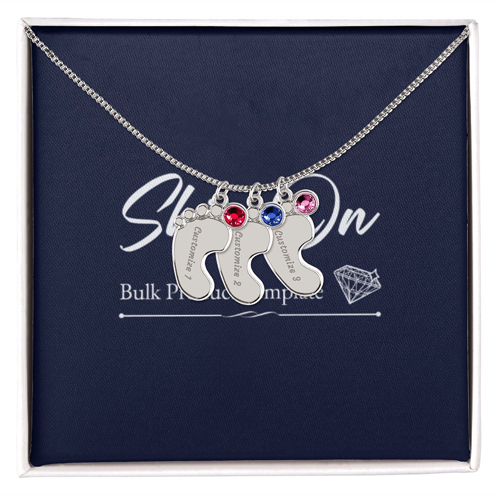 Celebrate the arrival of a newborn or cherish a precious memory with our Custom Baby Feet Necklace with Birthstone. Personalize your gift by engraving a name of your choice onto the pendant and choosing a crystal that correlates with the baby's birth month. And by picking multiple pendants, a custom present like this is perfect for moms and grandmothers with big families. This is a one-of-a-kind keepsake that will be treasured for a lifetime!