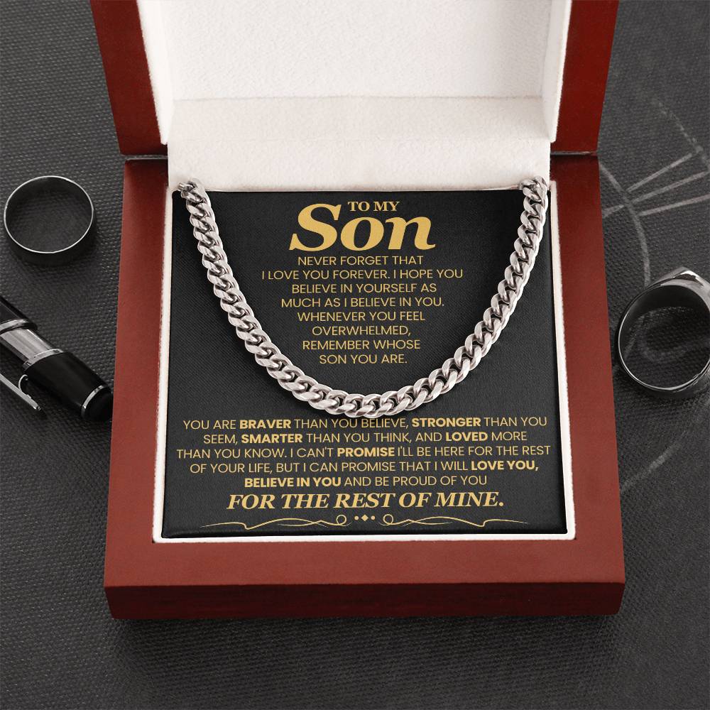 Gift For My Son - You Are Braver, Stronger and Smarter - Cuban Chain Link Necklace