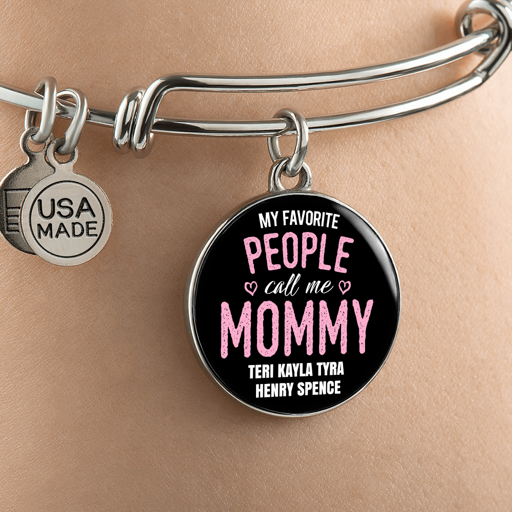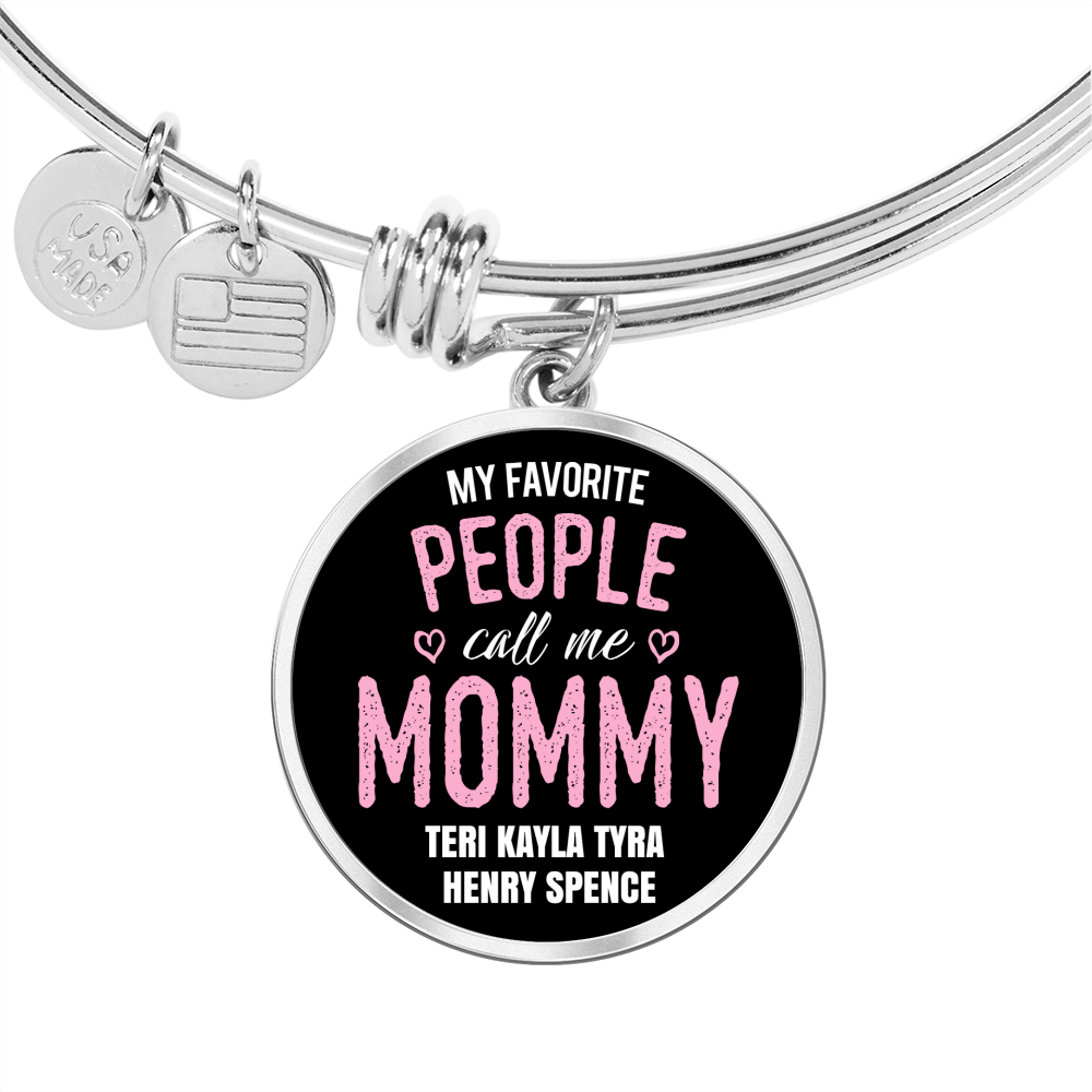 Surprise your mom on Mother's Day, her birthday, at Christmas or any time of the year just to let her know how much you love her, with this "My Favorite People Call Me Mom" Bangle Bracelet with her children's names on it!