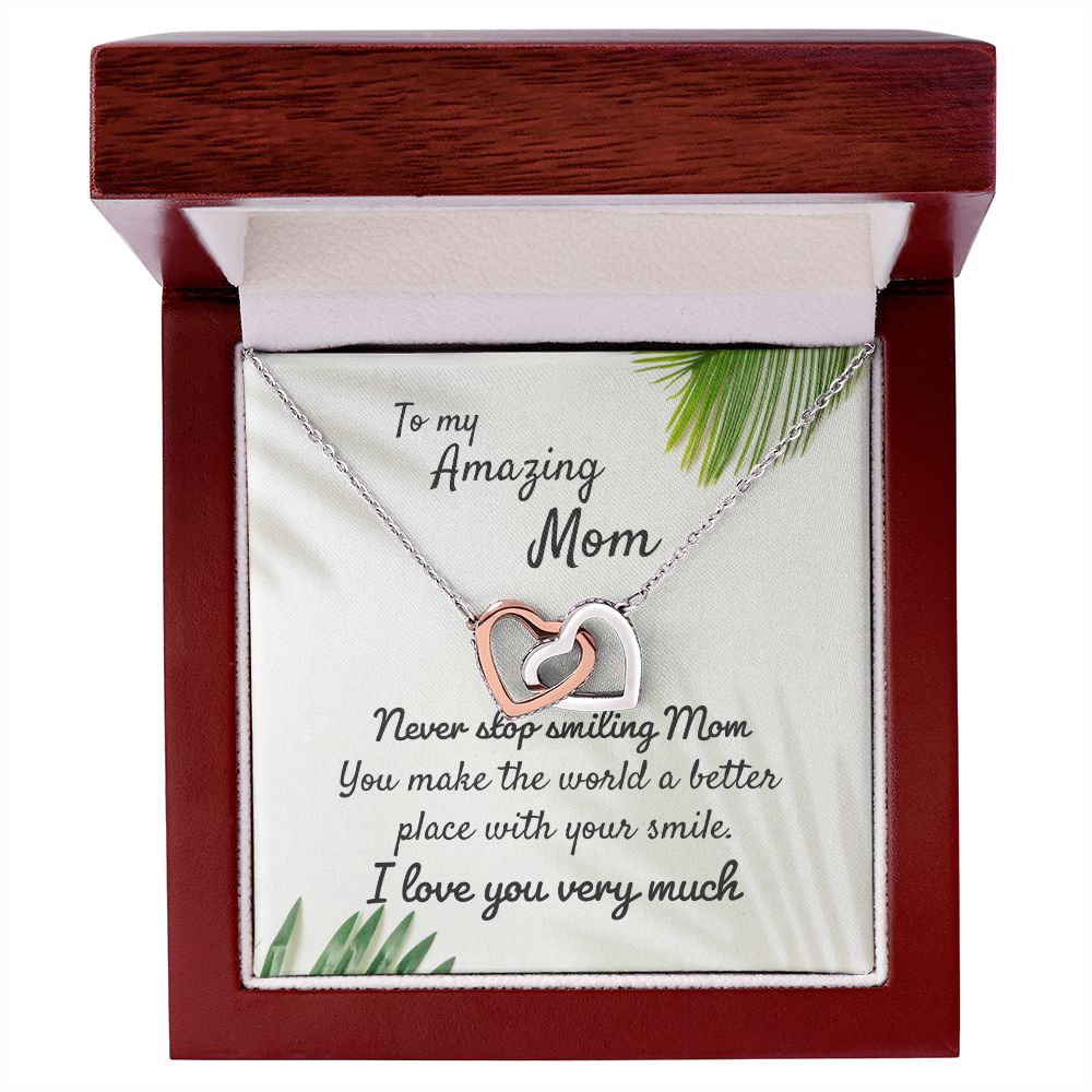 Never stop smiling Mom. You make the world a better place with your smile. I love you very much"