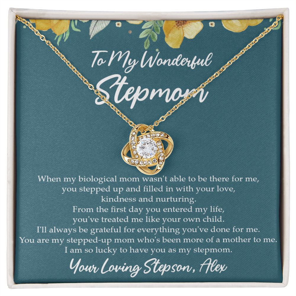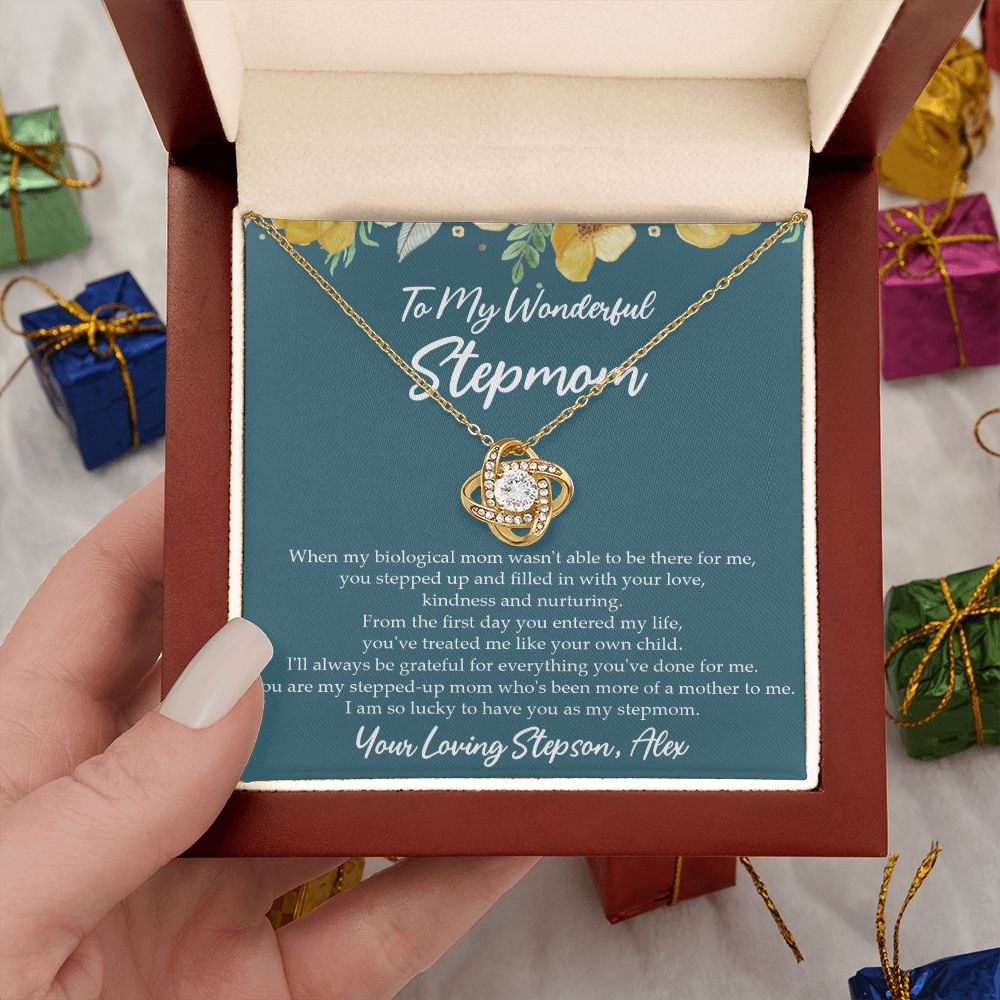 Imagine your stepmother's reaction to receiving this beautiful Love Knot Necklace from you.