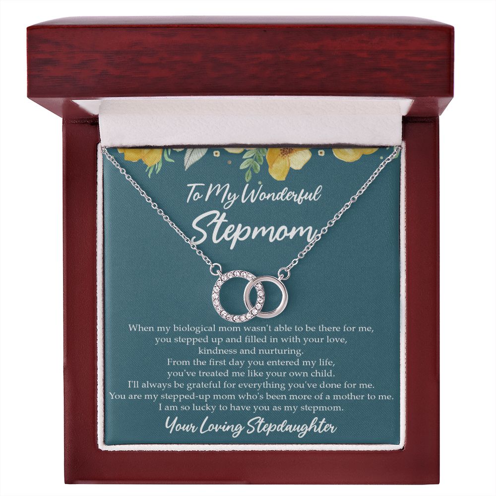 When my biological mom wasn't able to be there for me, you stepped up and filled in with your love, kindness and nurturing. From the first day you entered my life, you've treated me like your own child. I'll always be grateful for everything you've done for me. You are my stepped-up mom who's been more of a mother to me. I am so lucky to have you as my stepmom. Your Loving Stepdaughter"