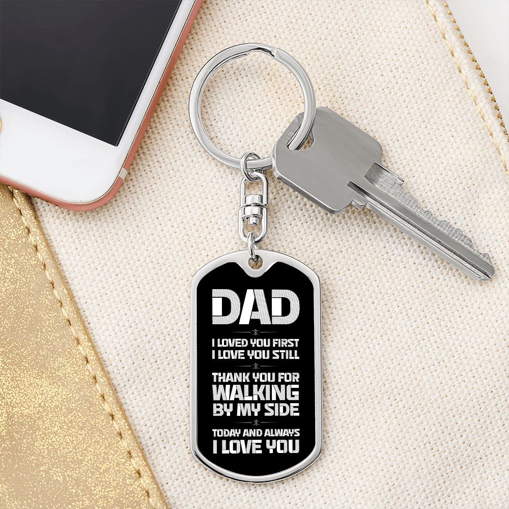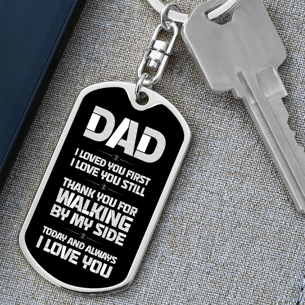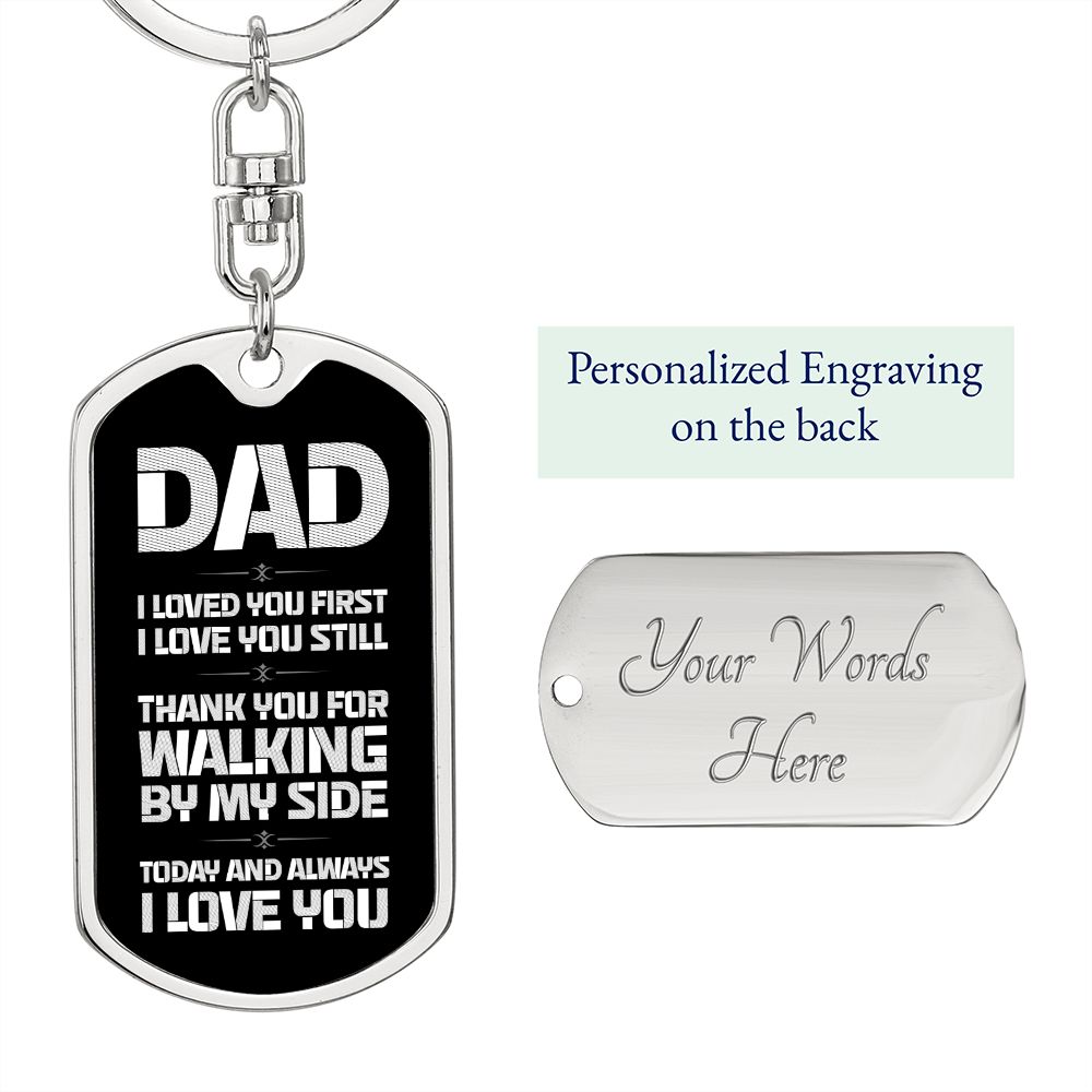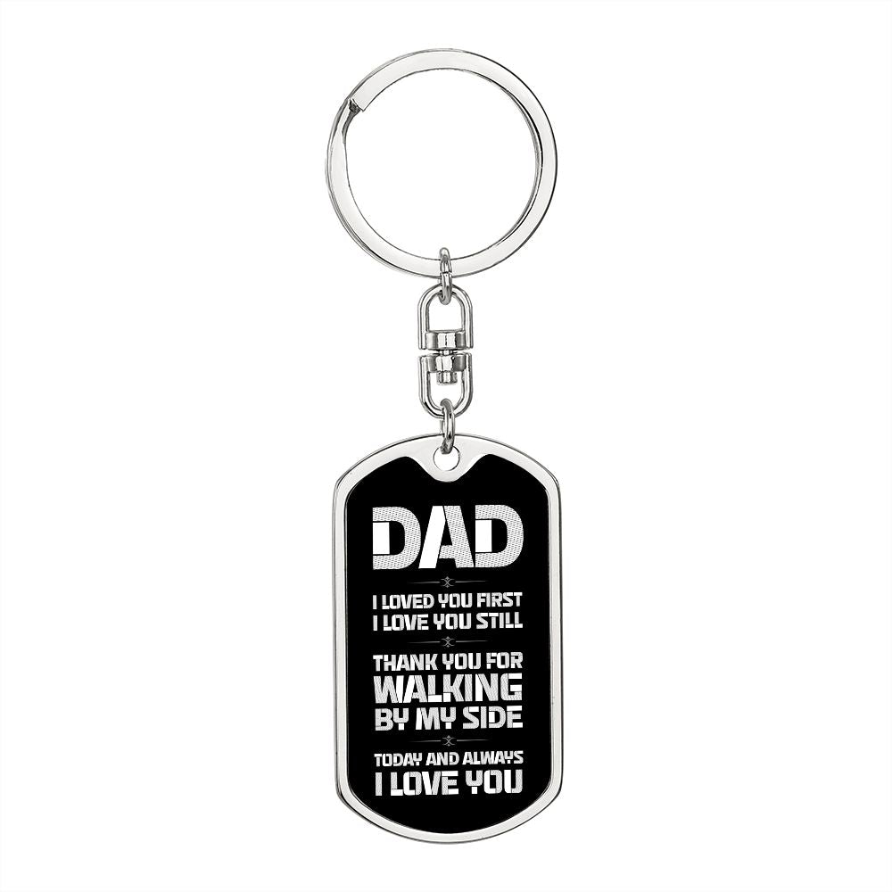 Dad Gift From Daughter- Dog Tag Swivel Keychain - Walking By My Side