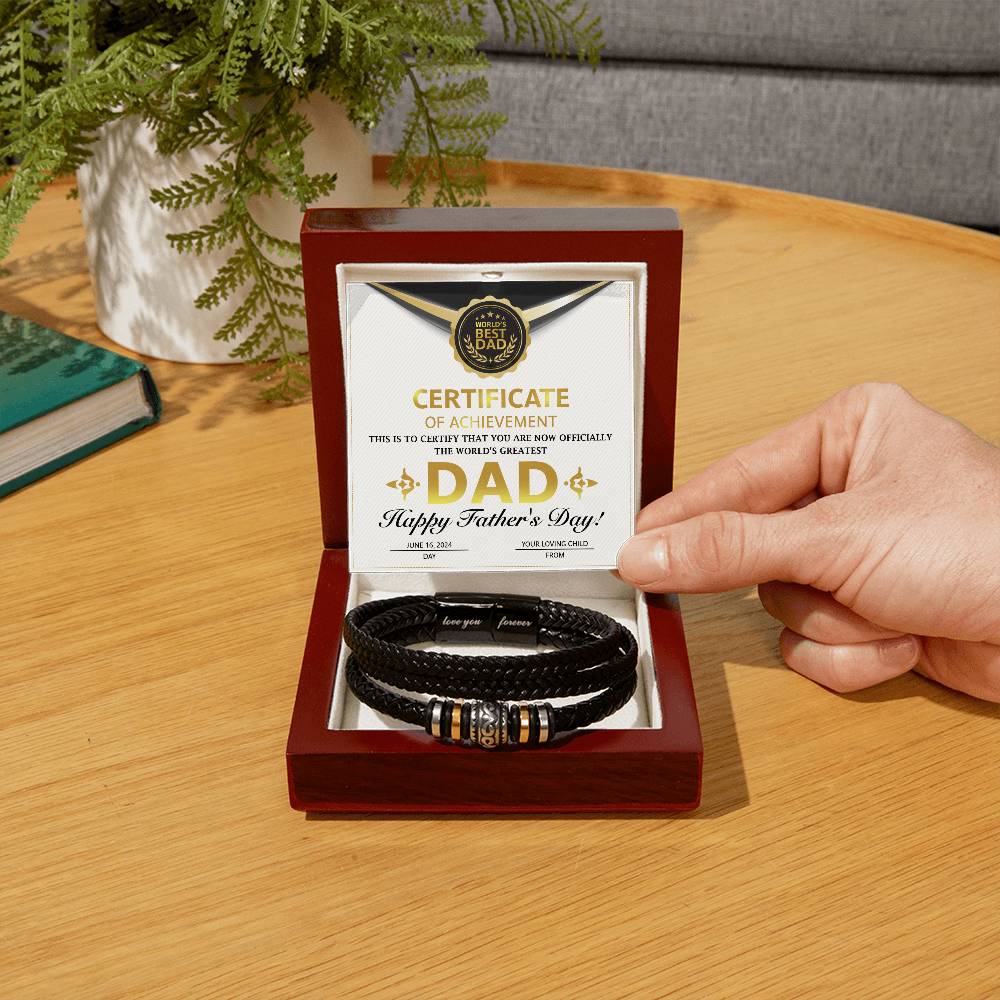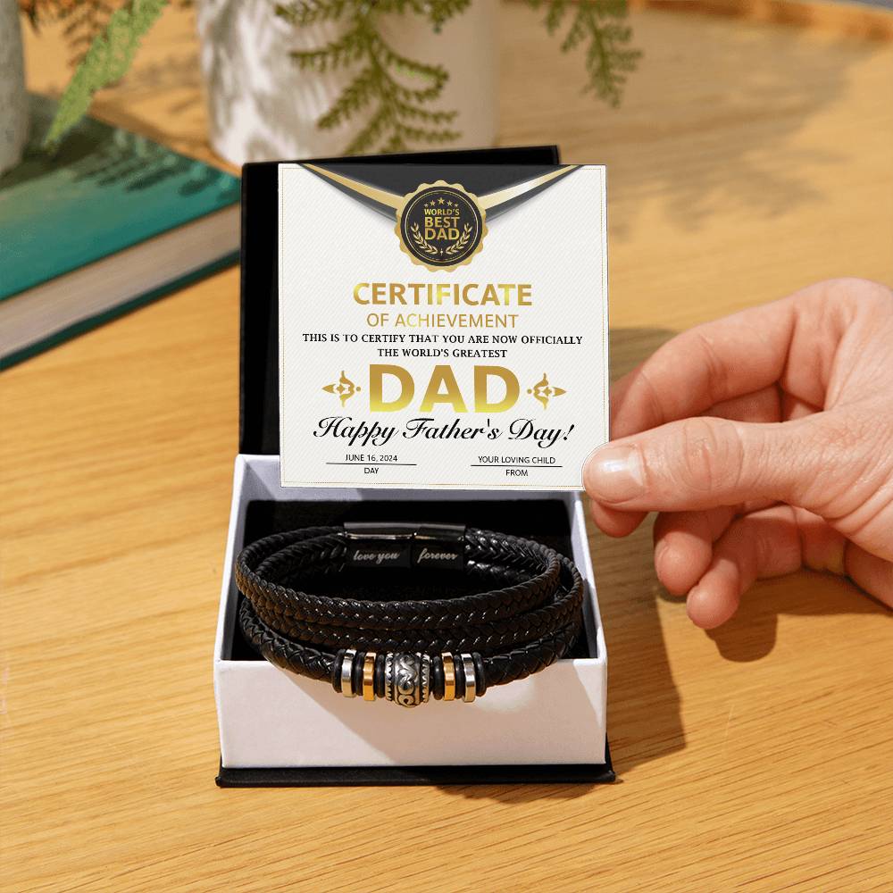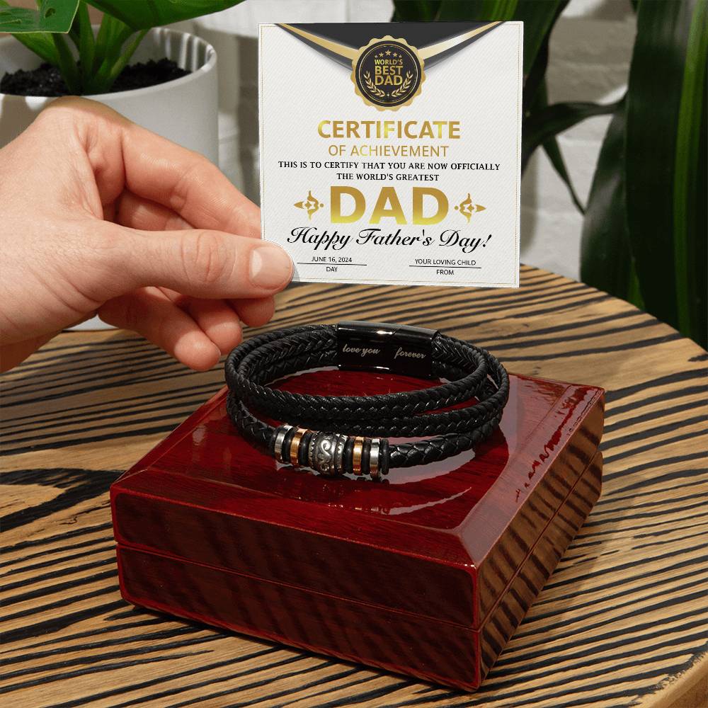 Dad Love You Forever Mens Braided Bracelet Gift - Certificate of Achievement