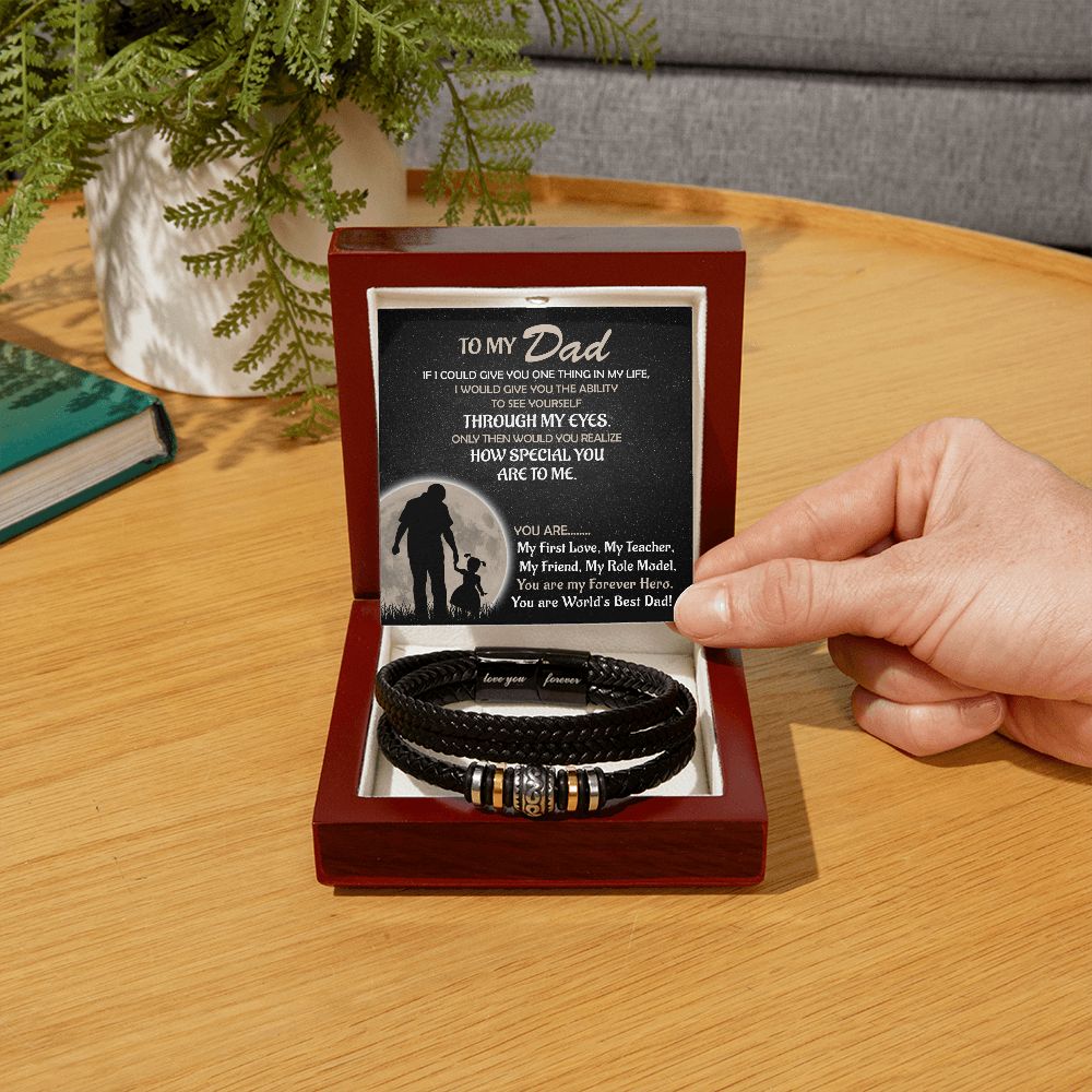 Dad Gifts From Daughter - Love You Forever Leather Bracelet - My Forever Hero