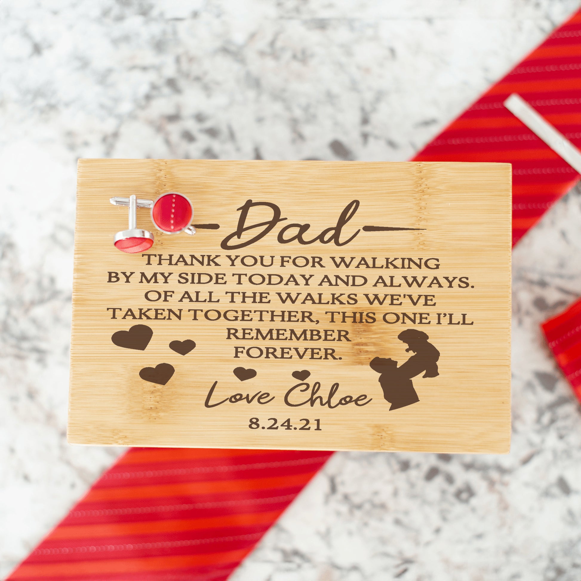Make a lasting impression with the Bamboo Tie Box—a beautifully crafted keepsake that turns any gift into a standout moment. Designed with elegance and functionality in mind, this box is made from real bamboo and finished with a striking laser-engraved design on top. Its hinged lid opens to reveal a perfectly arranged set featuring a tie, matching handkerchief, cufflinks, and a sleek tie clip—ideal for groomsmen, Father’s Day, birthdays, or any special occasion.