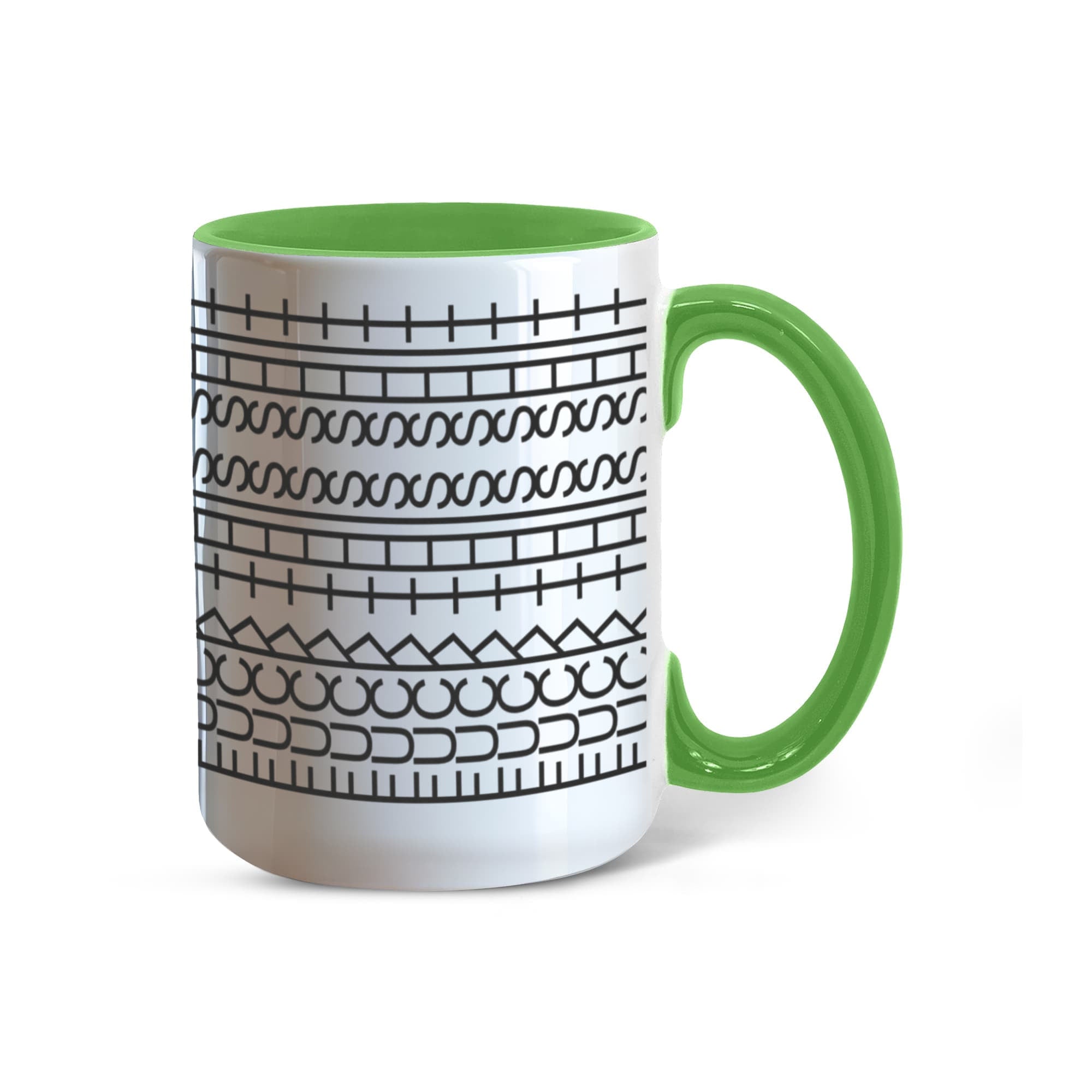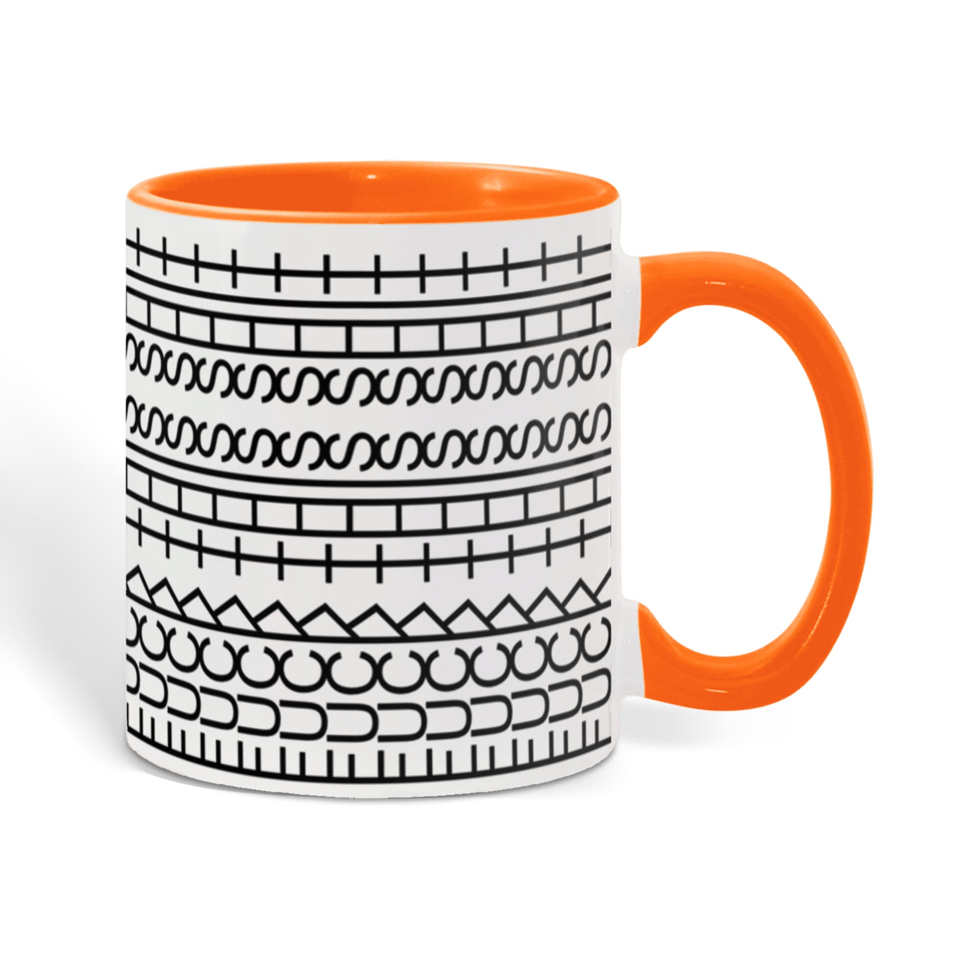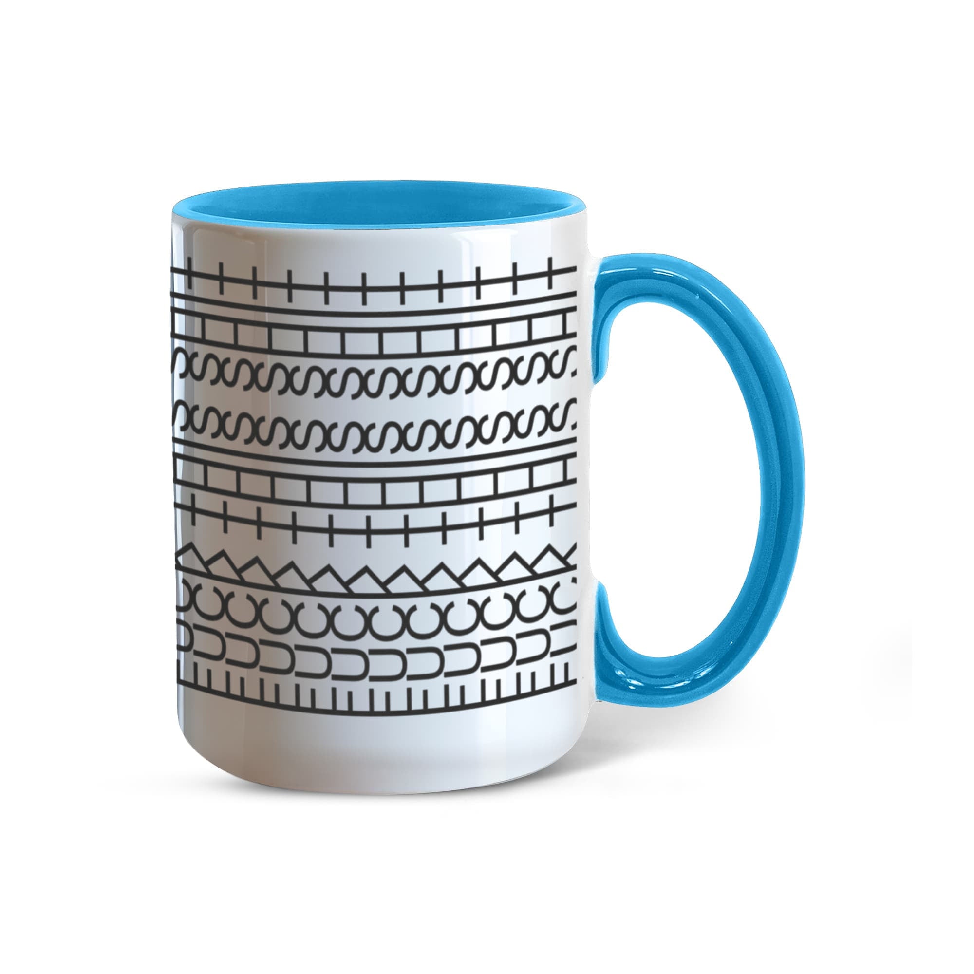 • High quality ceramic mug with two-tone rim, interior, & handle