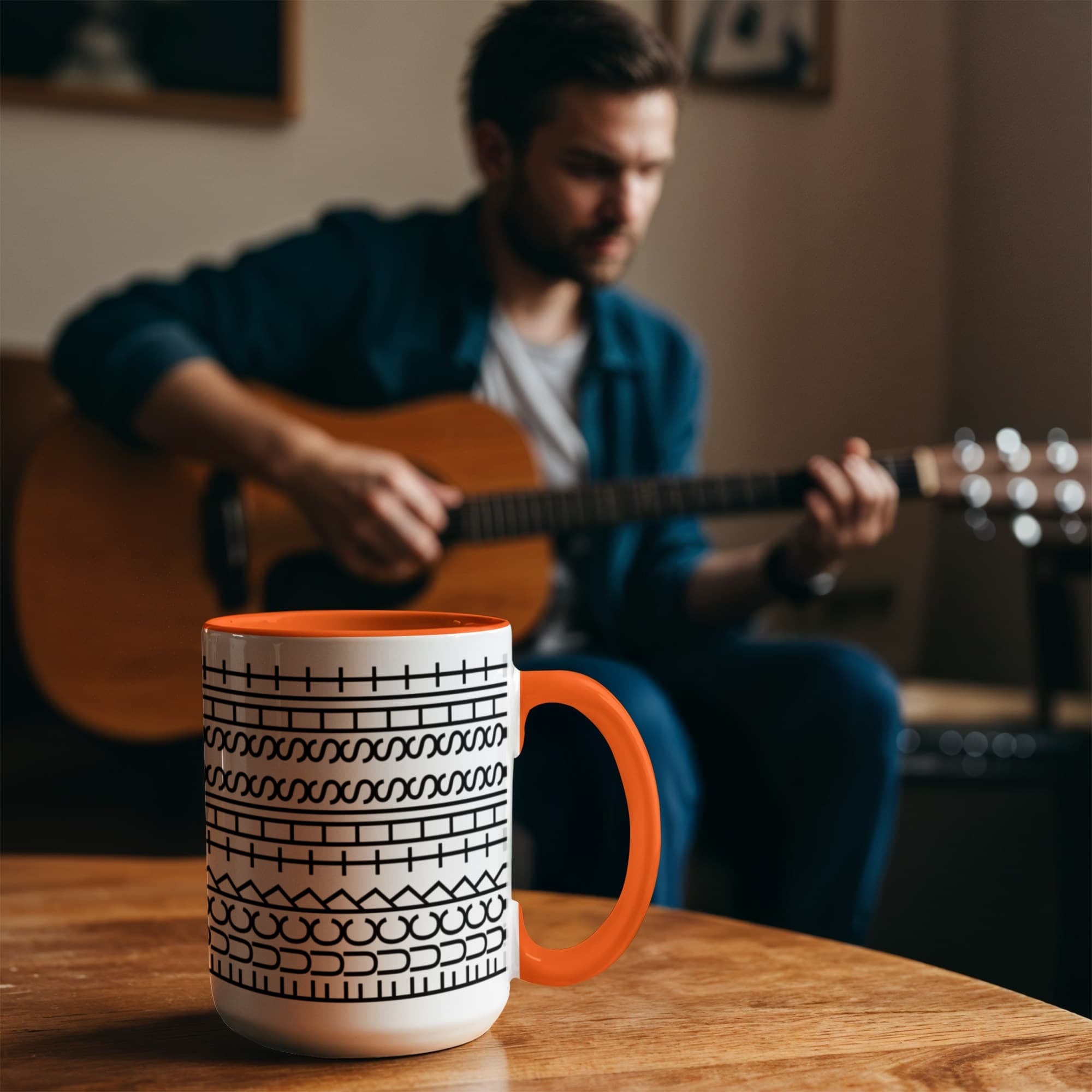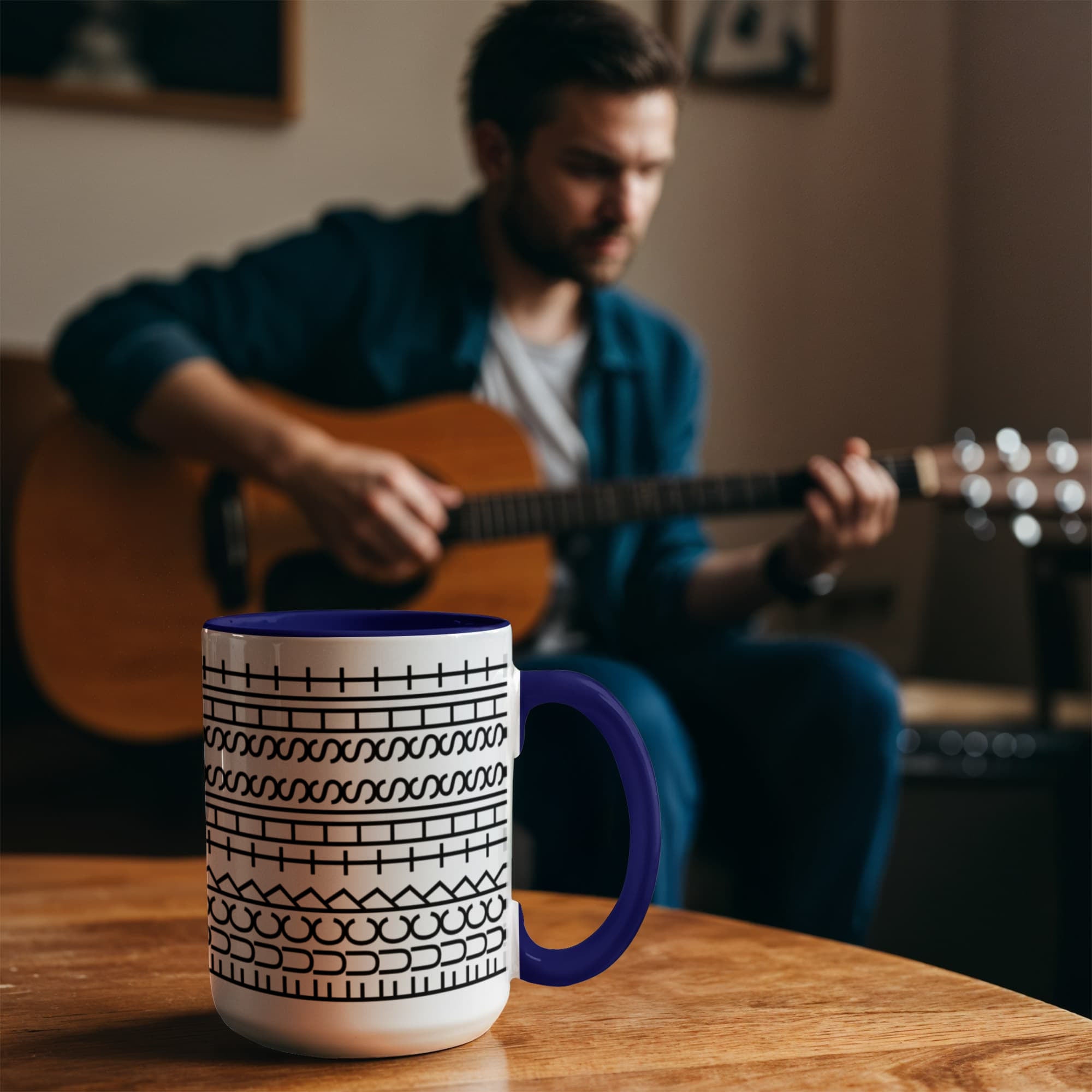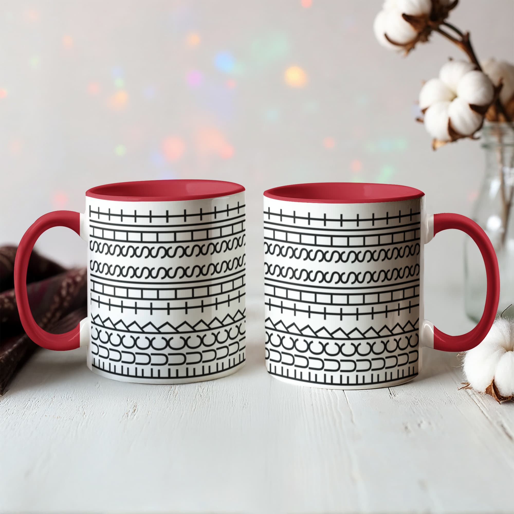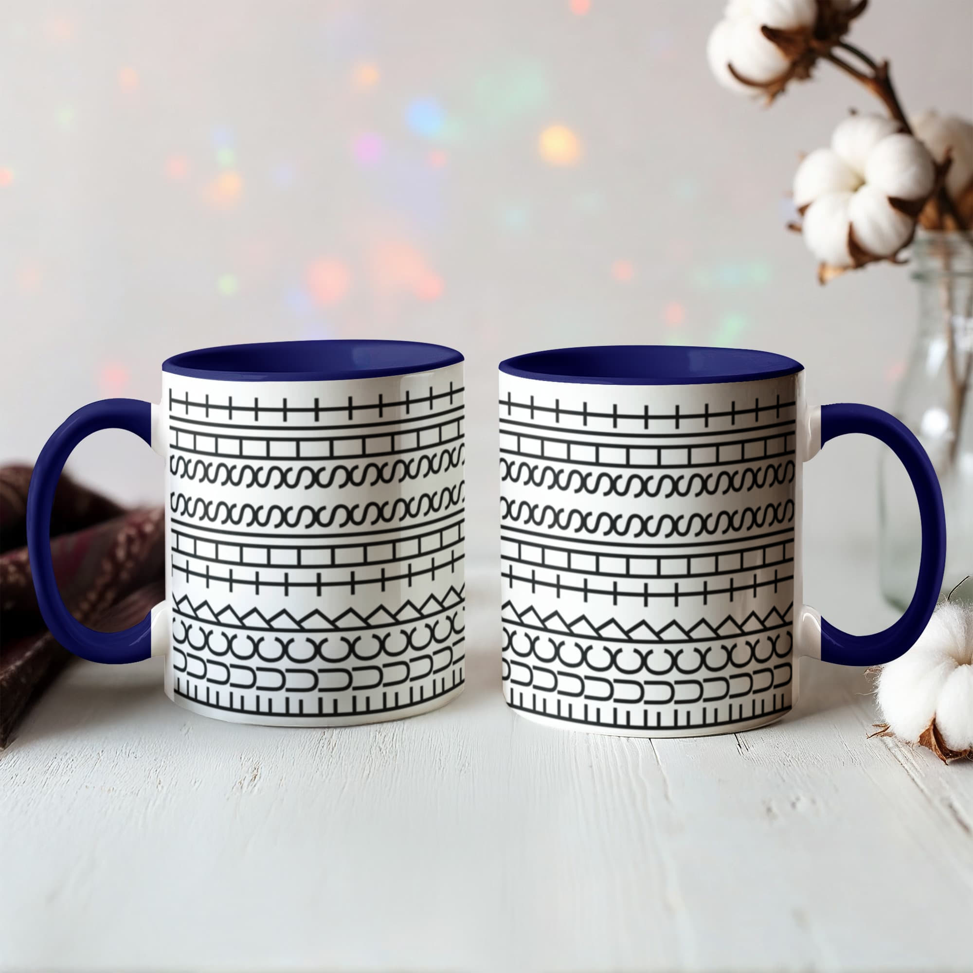 • High quality ceramic mug with two-tone rim, interior, & handle