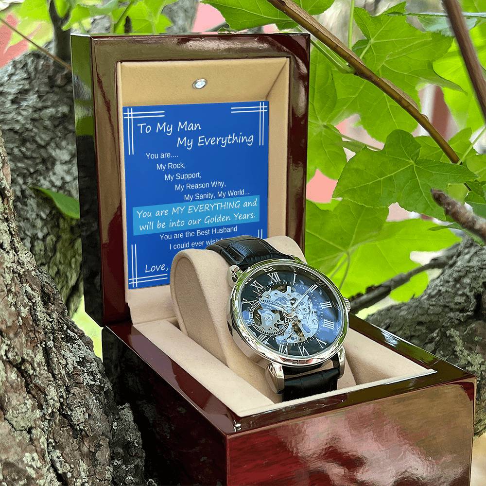 Your Man will be so surprised when he opens your gift and sees this handsome watch along with your meaningful and heartfelt message that reads: