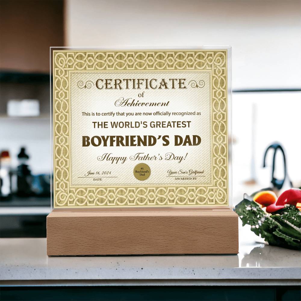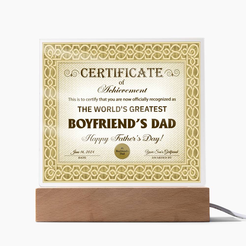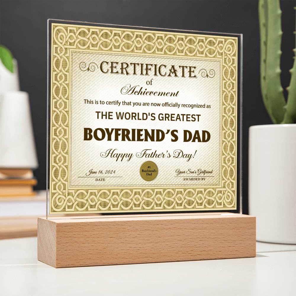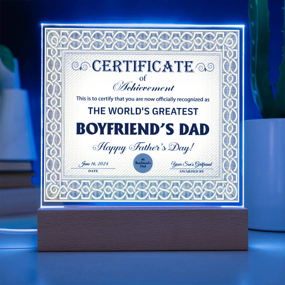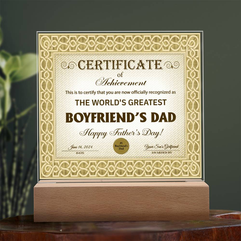 Boyfriends Dad Gift-Certificate Of Achievement-Square Acrylic Plaque
