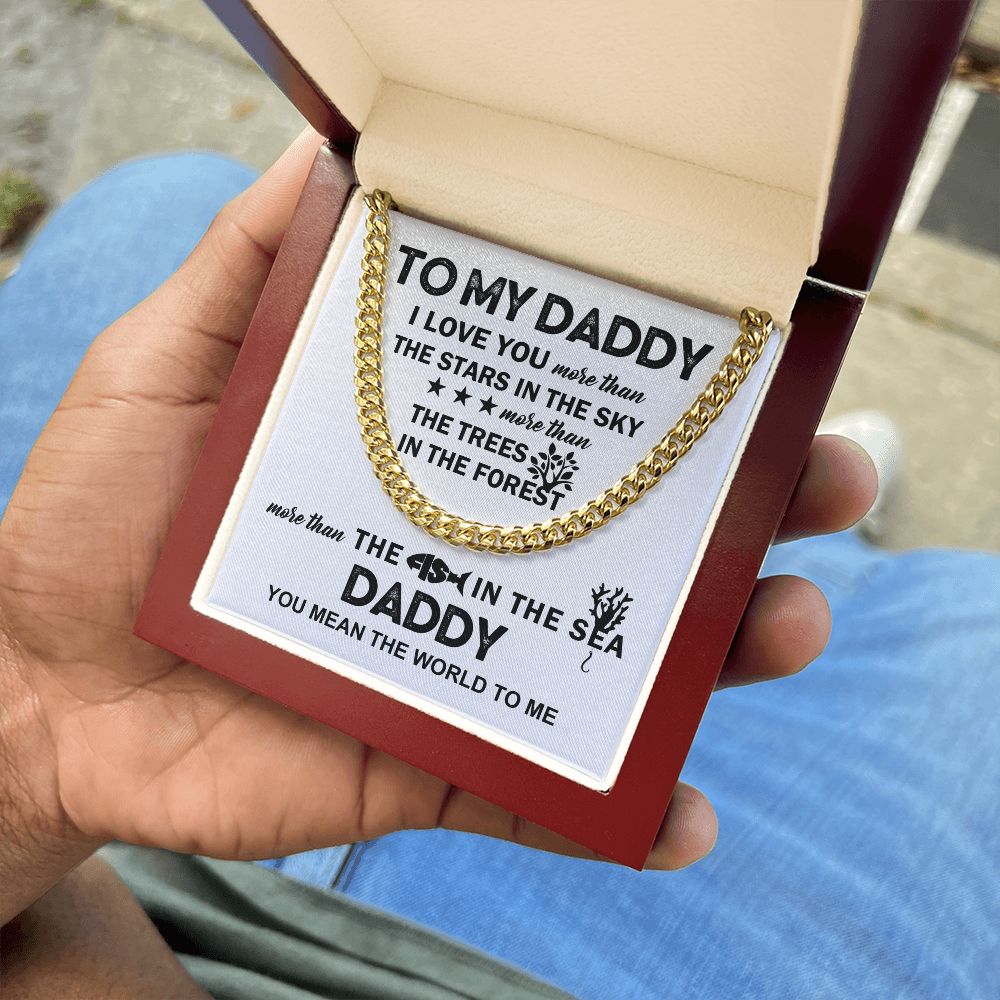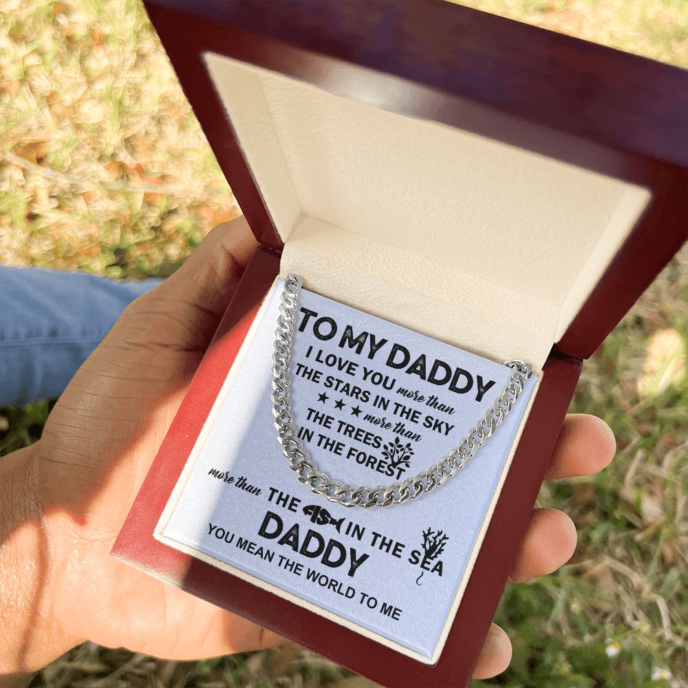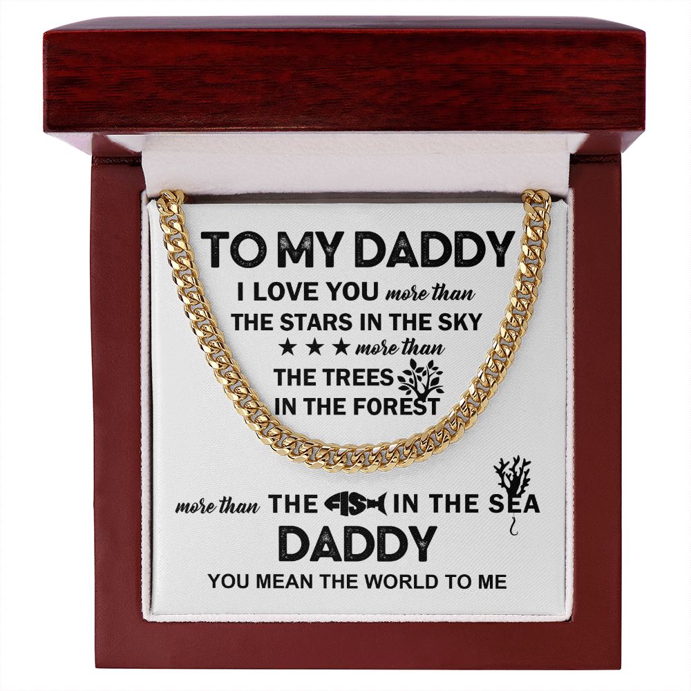 I love you more than the stars in the sky, more than the trees in the forest, more than the fish in the sea. Daddy, you mean the world to me"