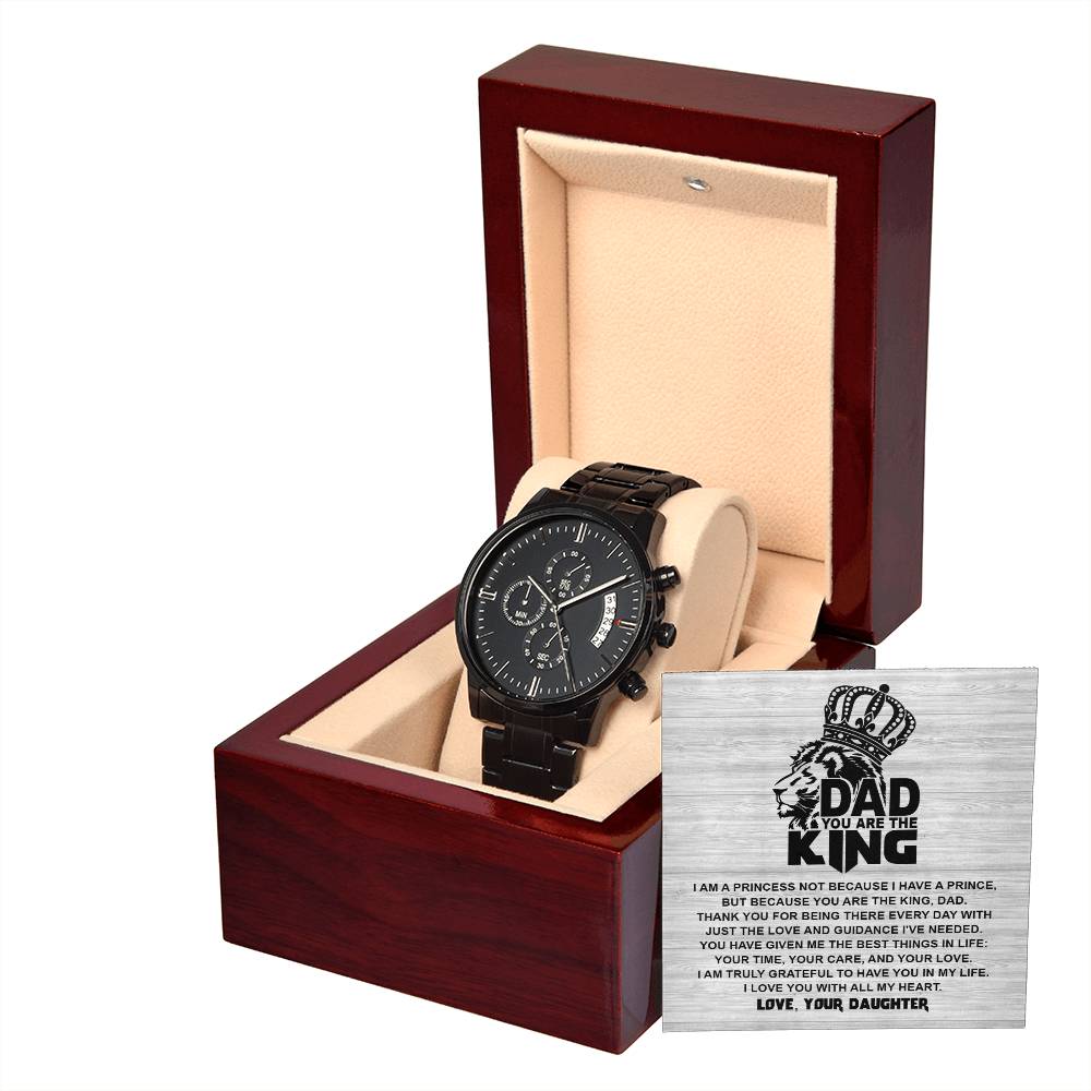 Gift For Dad - Mens Black Wrist Watch with Mahogany Box and Message Card - Not Because
