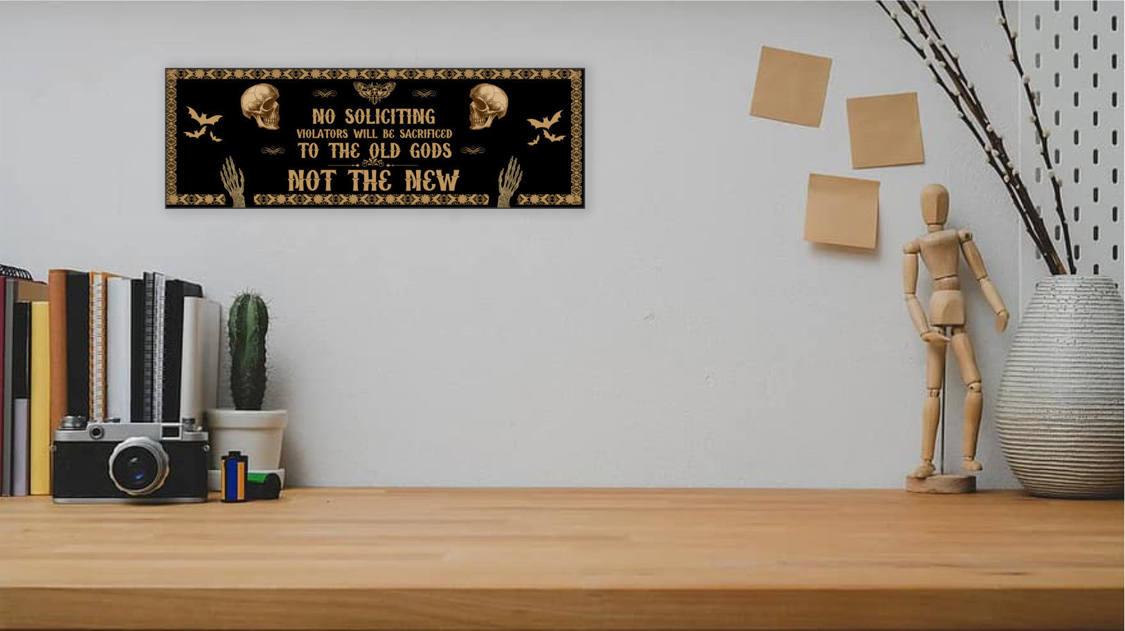 All signs are printed and come with a keyhole slot on the back of the sign for hanging. A stand is not included.