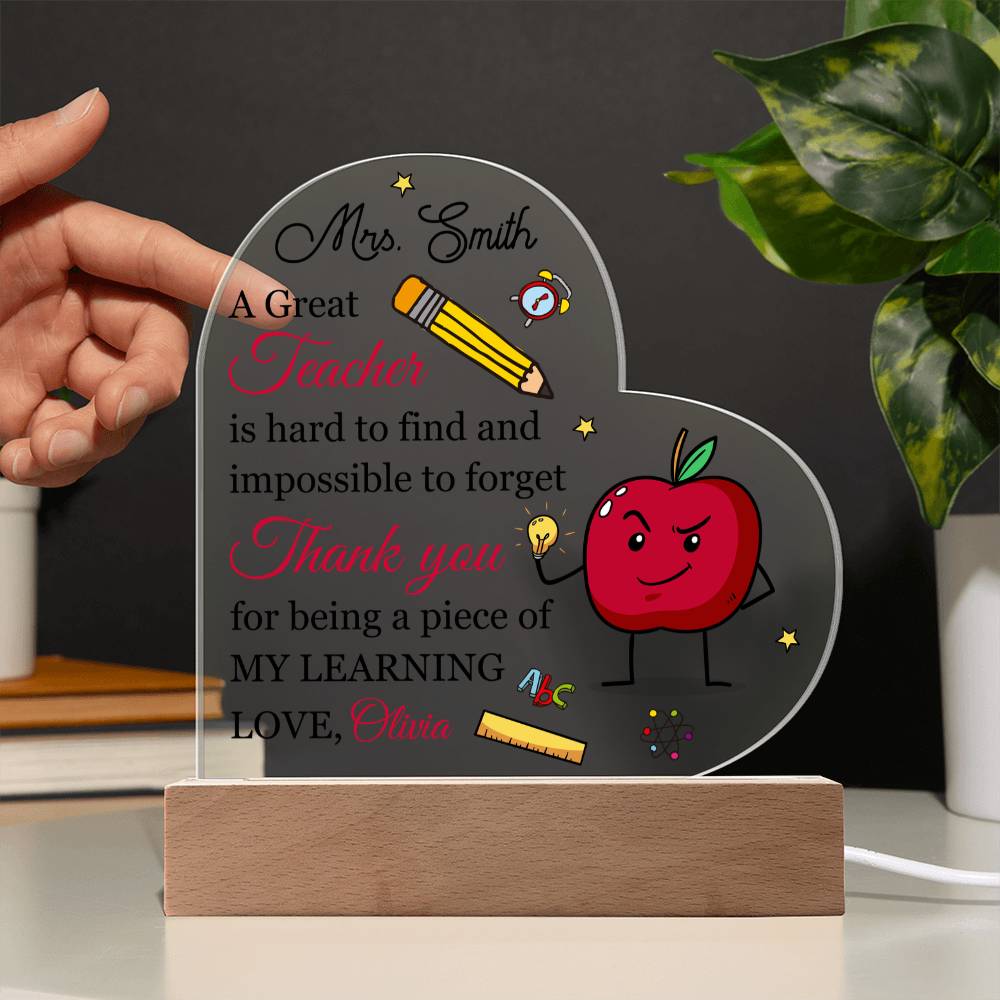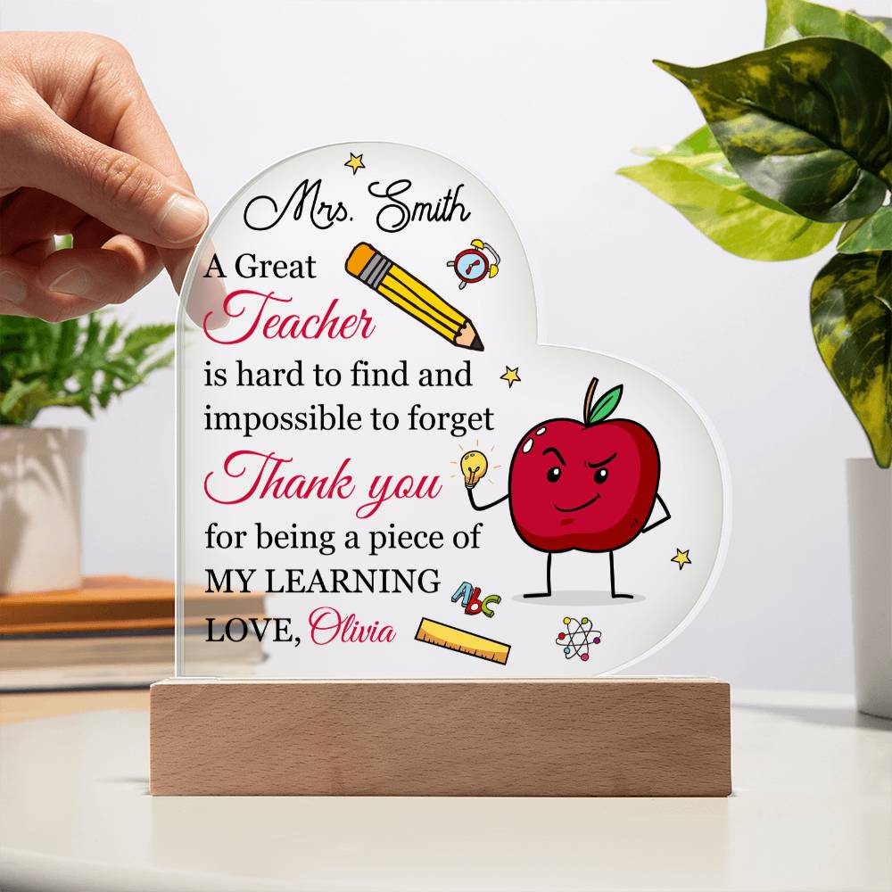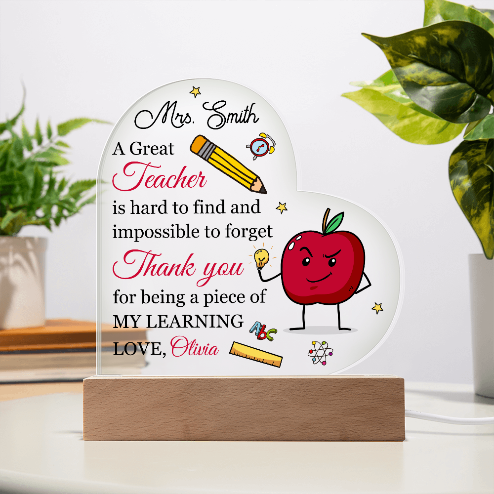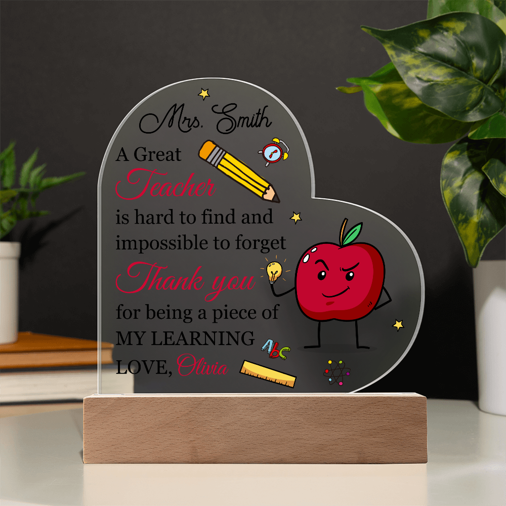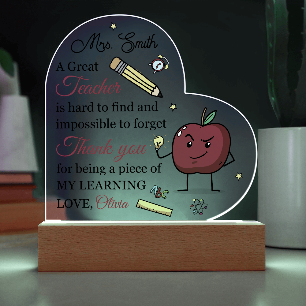 Your plaque will be crafted from premium acrylic with a professionally printed design for a polished look. It comes with a stylish wooden LED base, and you can choose between a USB plug-in option OR a cordless battery-operated option (requires 2 AAA batteries, not included). Both LED bases feature 7 vibrant colors, allowing the user to customize the lighting with various color changes and dynamic cycles.