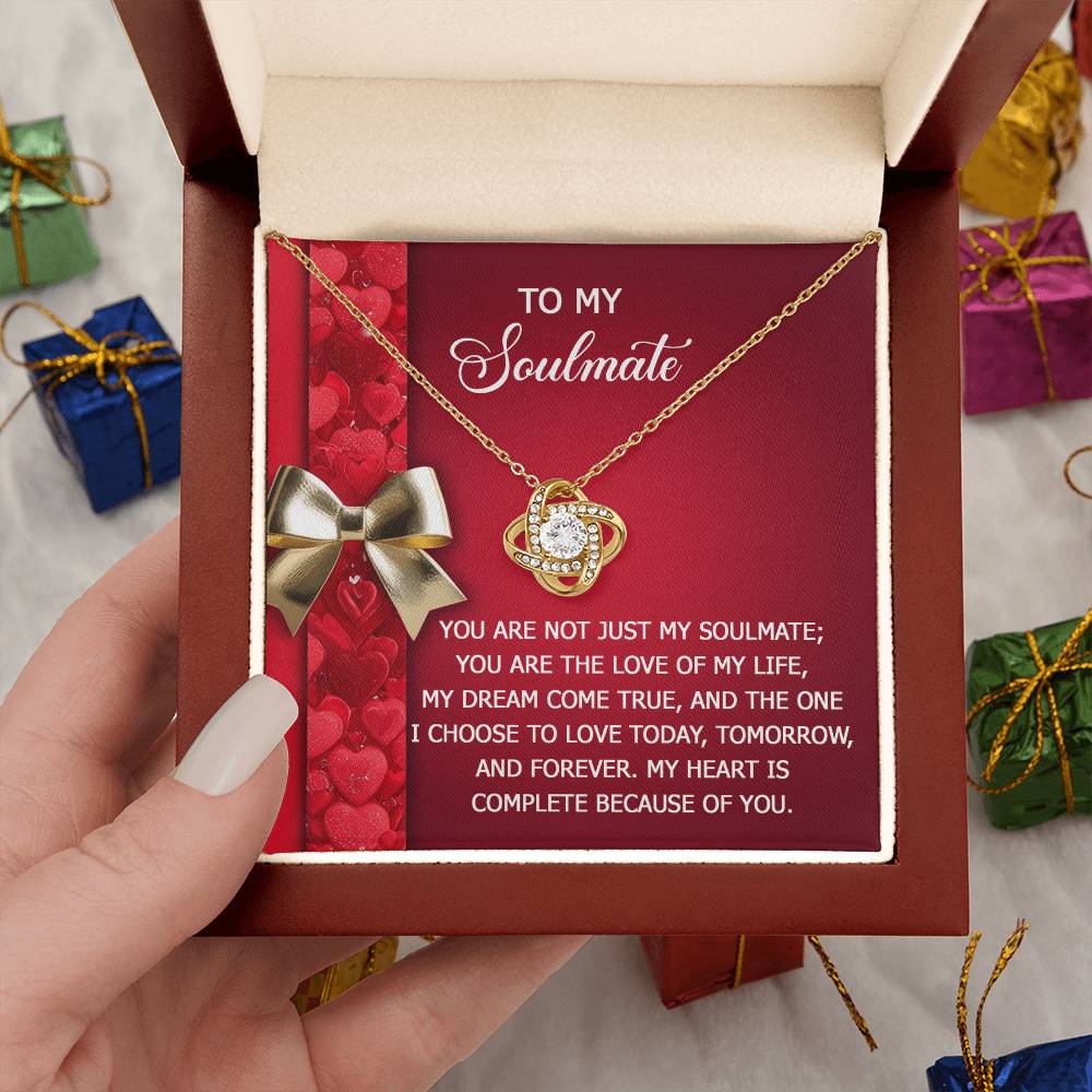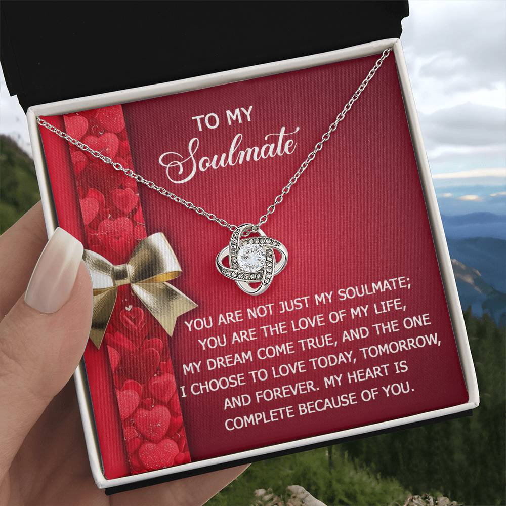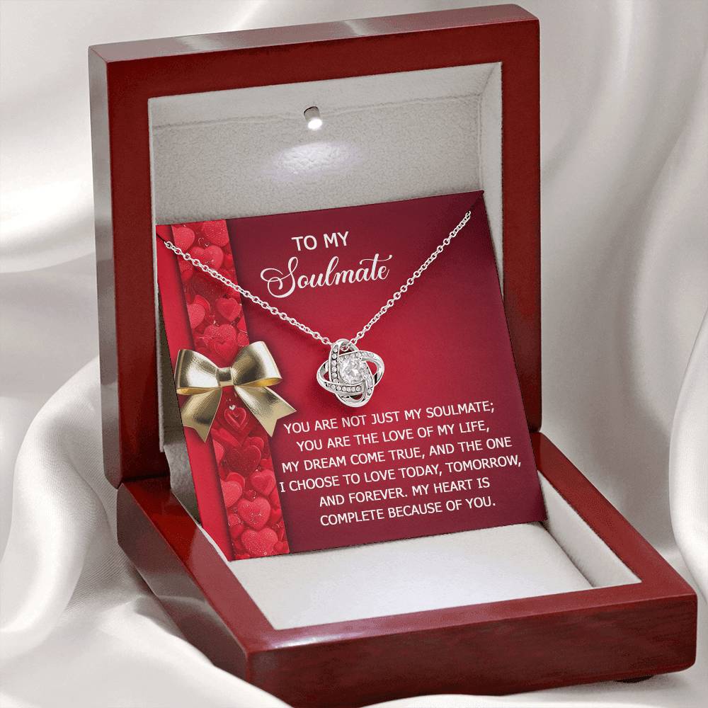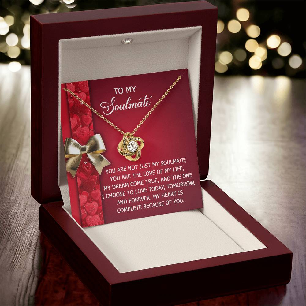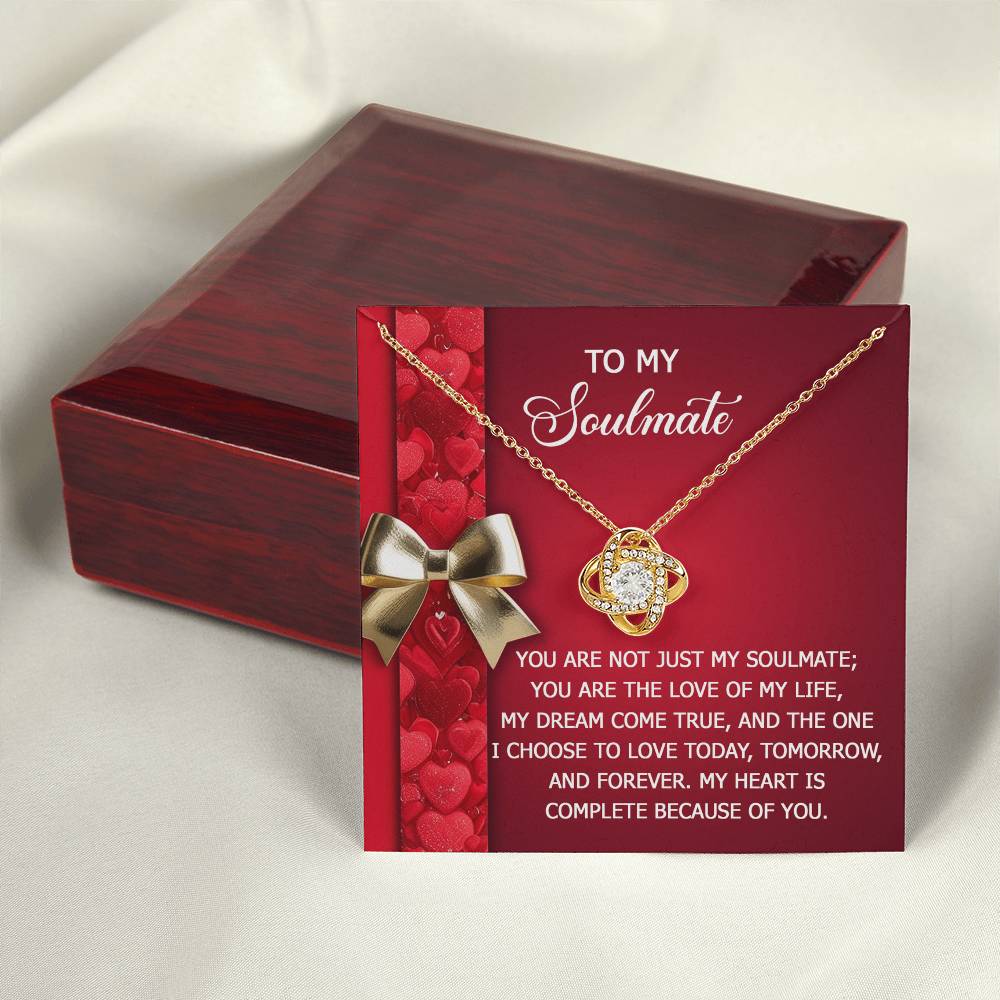 To My Soulmate Jewelry Gift - Love Knot Forever Necklace with Heartfelt Message Card From You - Because Of You