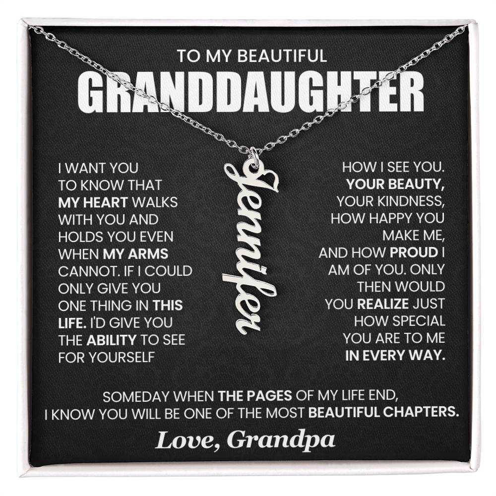 I Want You To Know That My Heart Walks With You And Holds You Even When My Arms Cannot. If I Can Only Give You One Thing In This Life, I'd Give You The Ability To See Yourself How I See You. Your Beauty, Your Kindness, How Happy You Make Me, And How Proud I Am Of You. Only Then Would You Realize Just How Special You Are To Me In Every Way. Someday When The Pages Of My Life End, I Know You Will Be One Of The Most Beautiful Chapters. Love, Grandpa."