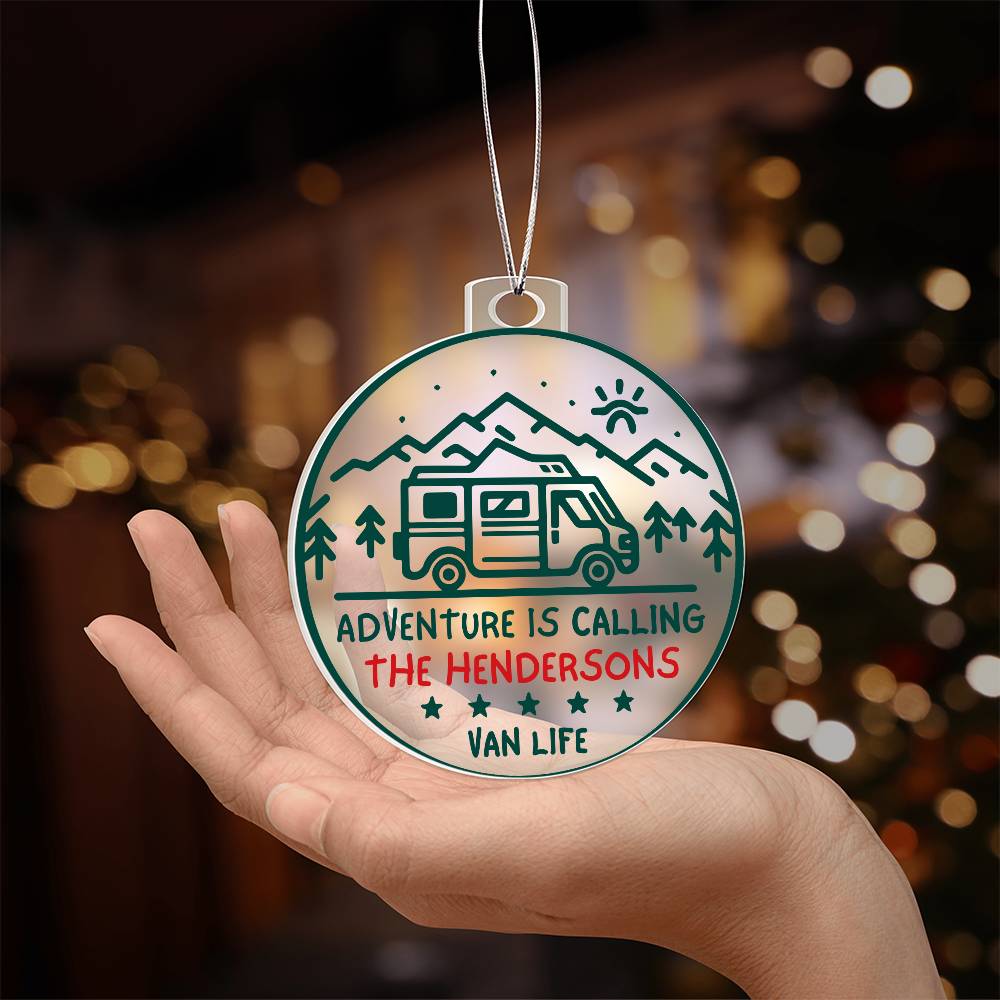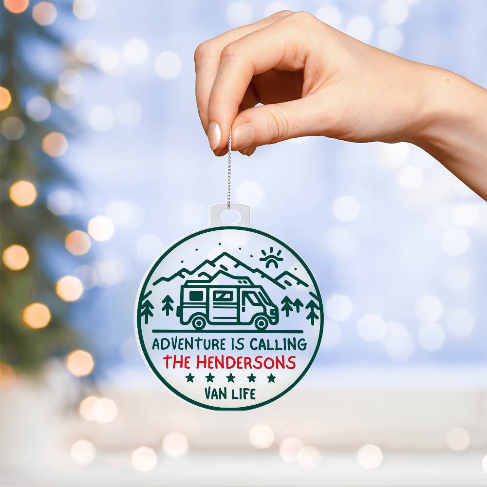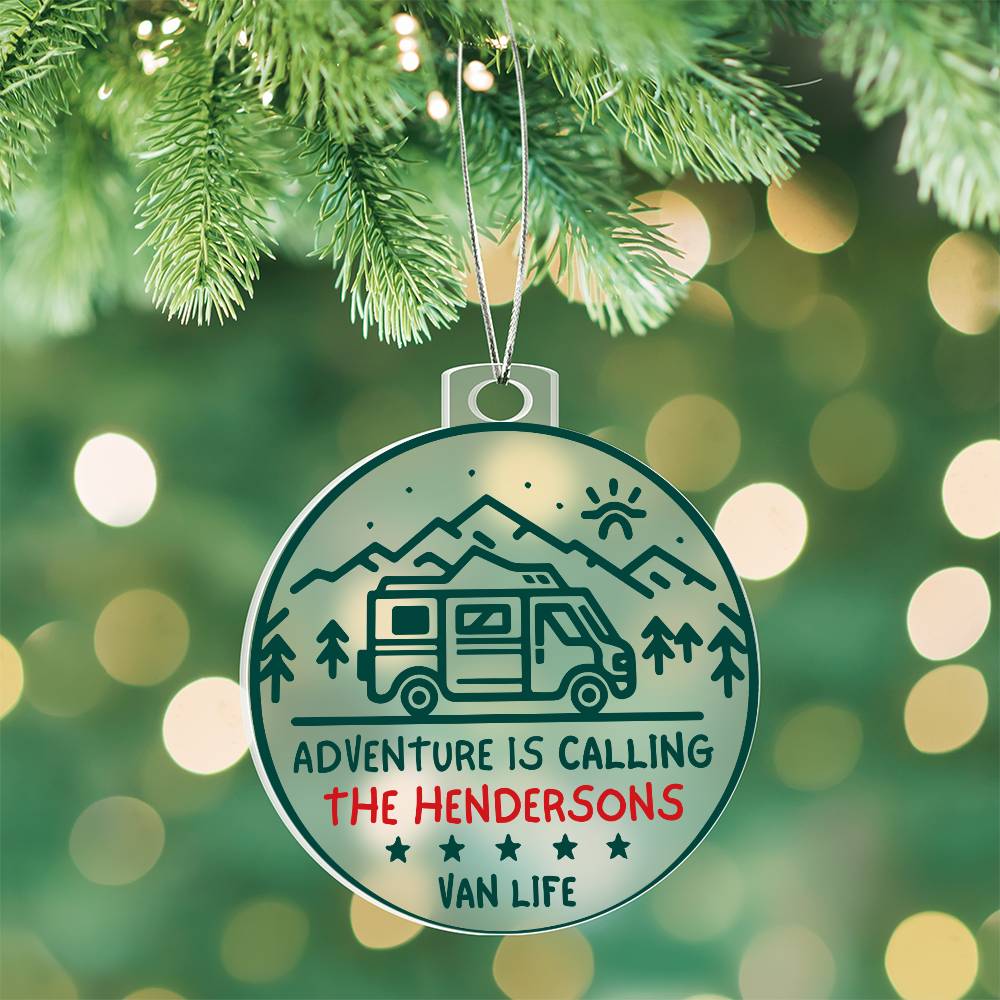 Personalized Van Life Acrylic Ornament - Adventure is Calling - Custom Camper Life Ornament, Camping Ornament - Christmas Travel Gifts