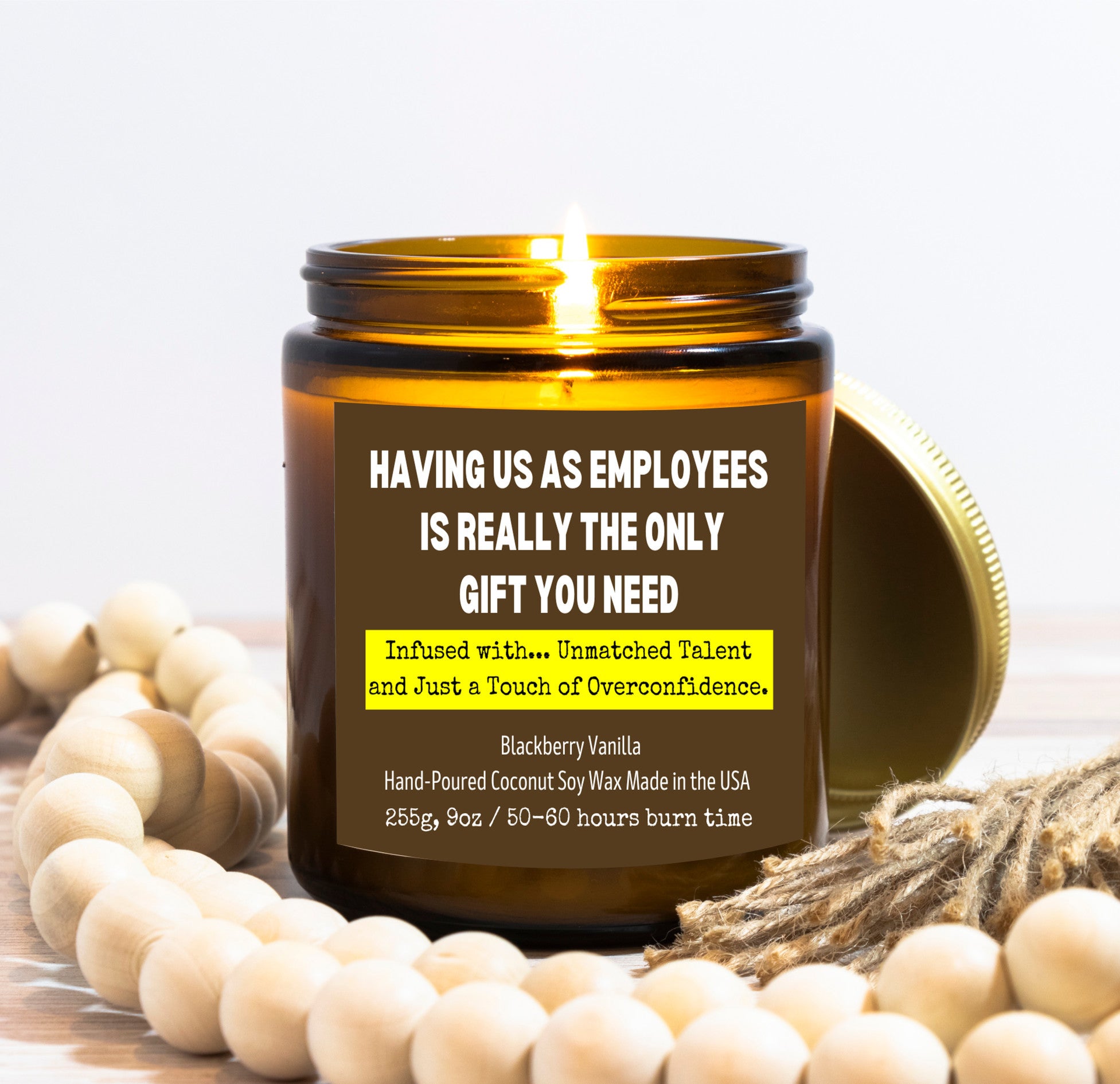 This "Employees Like Us" candle gift for your neighbor is perfect for your boss!